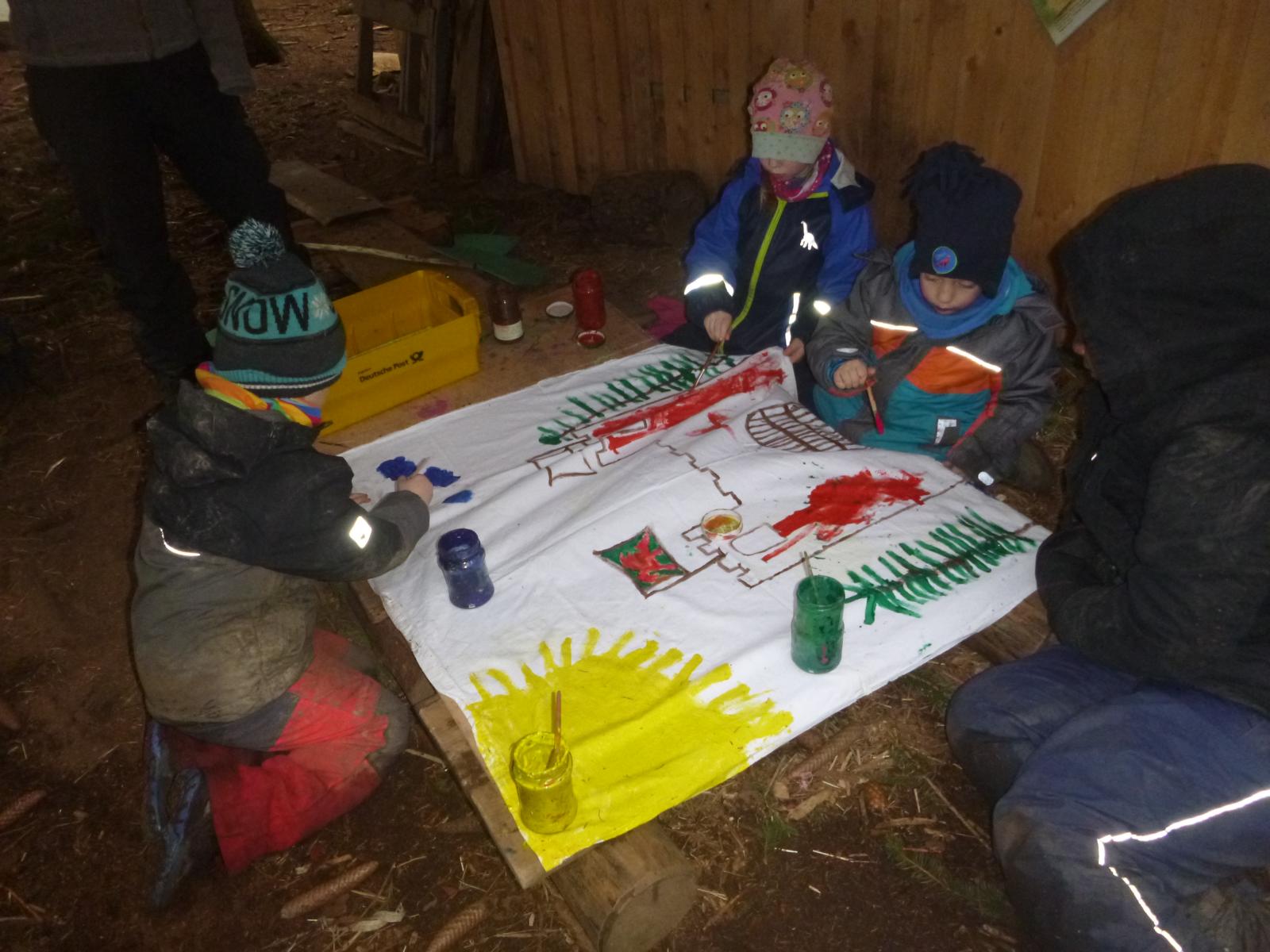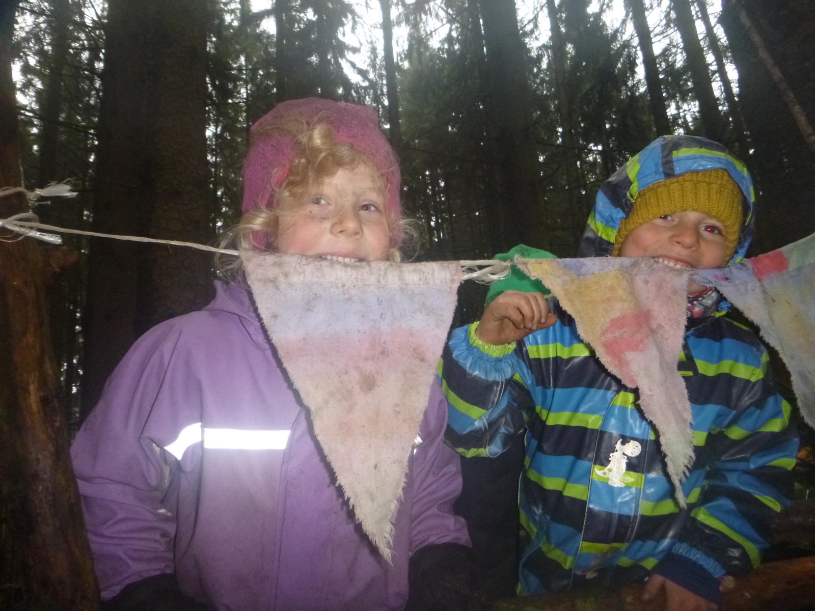 „Ich bin der Ritter Kunibert…..“ schmettern die Kinder mit Begeisterung durch den Wald! Bald mischte sich so mancher tapfere Ritter, Page oder Knappe, anmutige Burgfräuleins und feuerspeiende Drachen ins Spiel der Kinder mit ein und in vielen Geschichten, Fingerspielen und Liedern näherten wir uns dem Thema Mittelalter an.