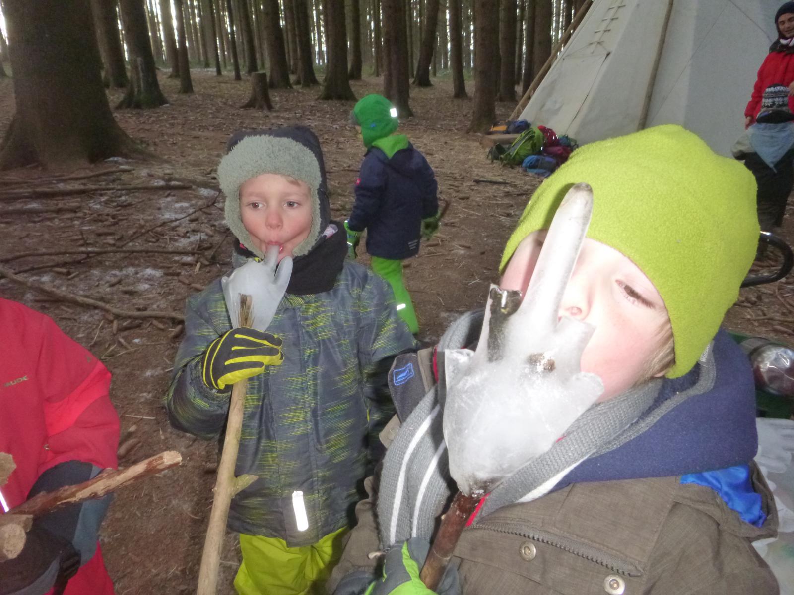 Dick eingemummelt trotzen wir den teils zweistelligen Minusgraden und genießen den Winter in vollen Zügen. Je nach Schneebeschaffenheit wird gebaut, geformt und gegraben. Eiskunstwerke entstehen und in Experimenten befassen wir uns mit den verschiedenen Aggregatzuständen des Wassers. Zum Frieren und Frösteln haben wir gar keine Zeit - hinter der nächsten Schneewehe gibt es schon wieder etwas Neues zu entdecken.