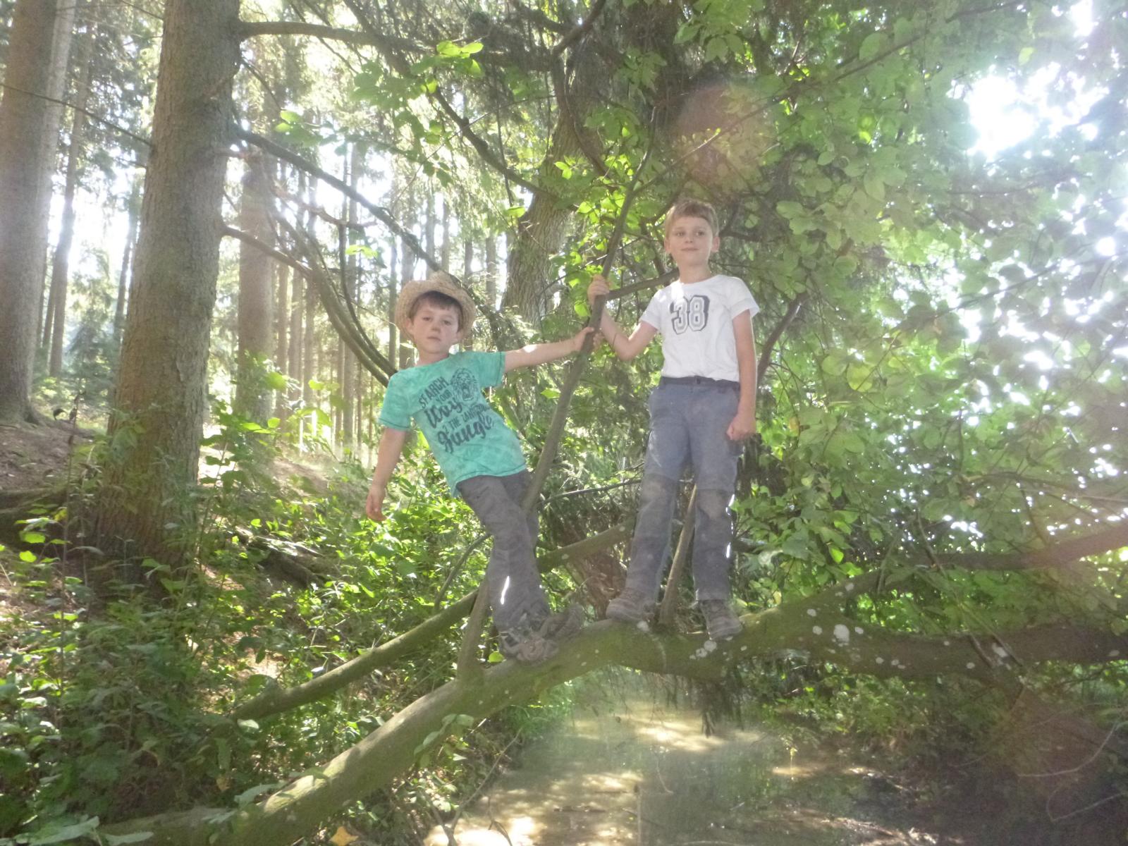 An den heißen Sommertagen lässt es sich im Lausbacher Holz gut aushalten. Während vor den Toren des Waldes eine Gluthitze herrscht, sind die Temperaturen innen recht angenehm und laden zu entspanntem Spielen und Erleben ein.