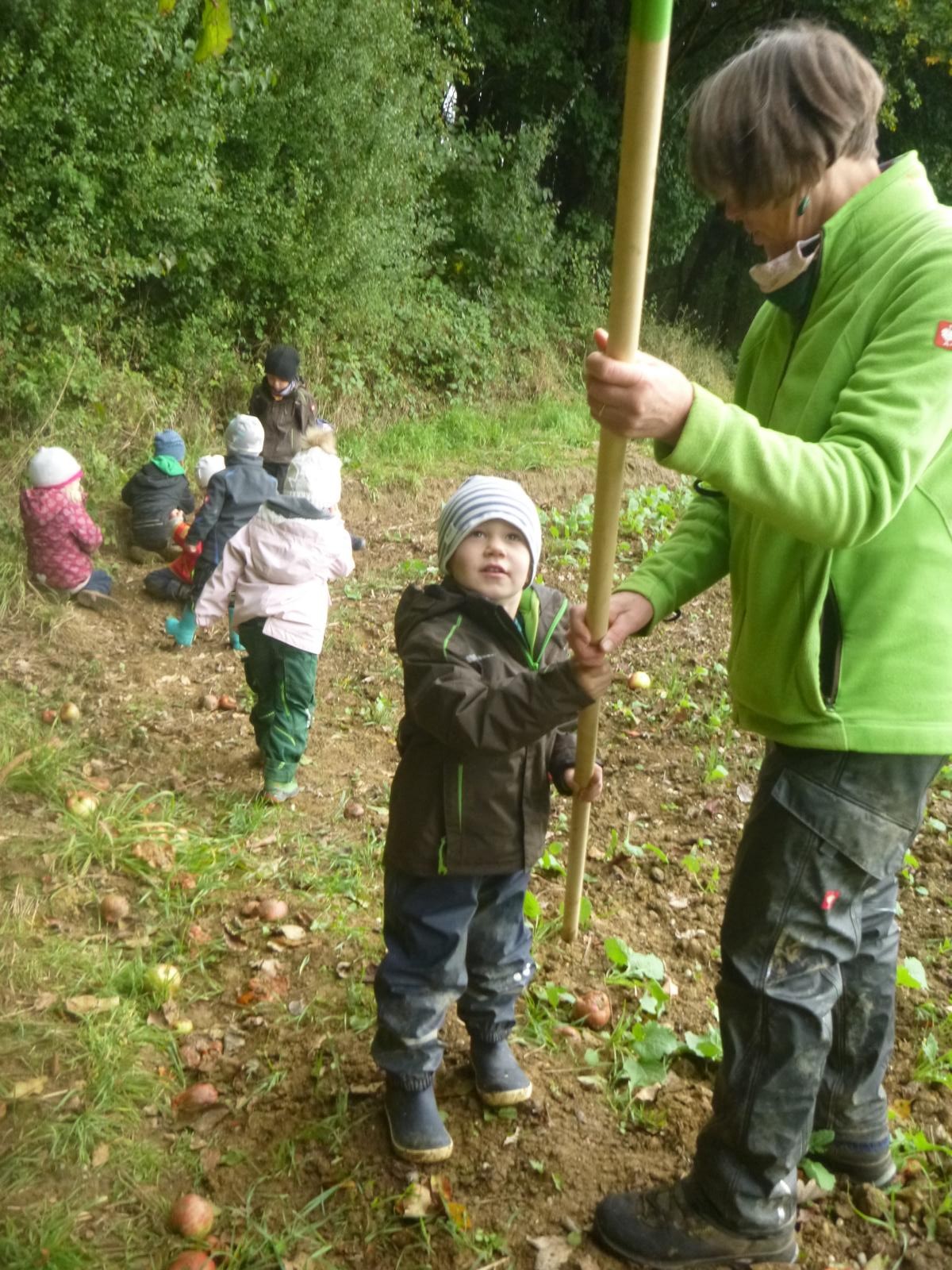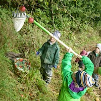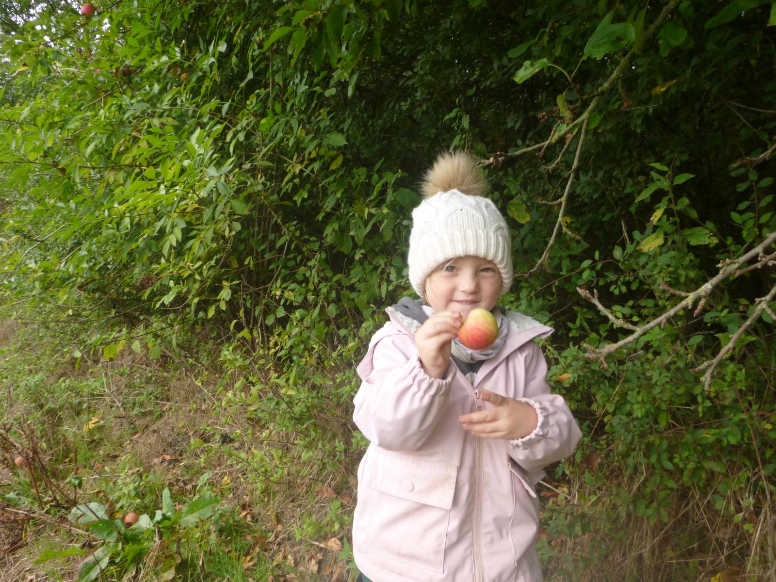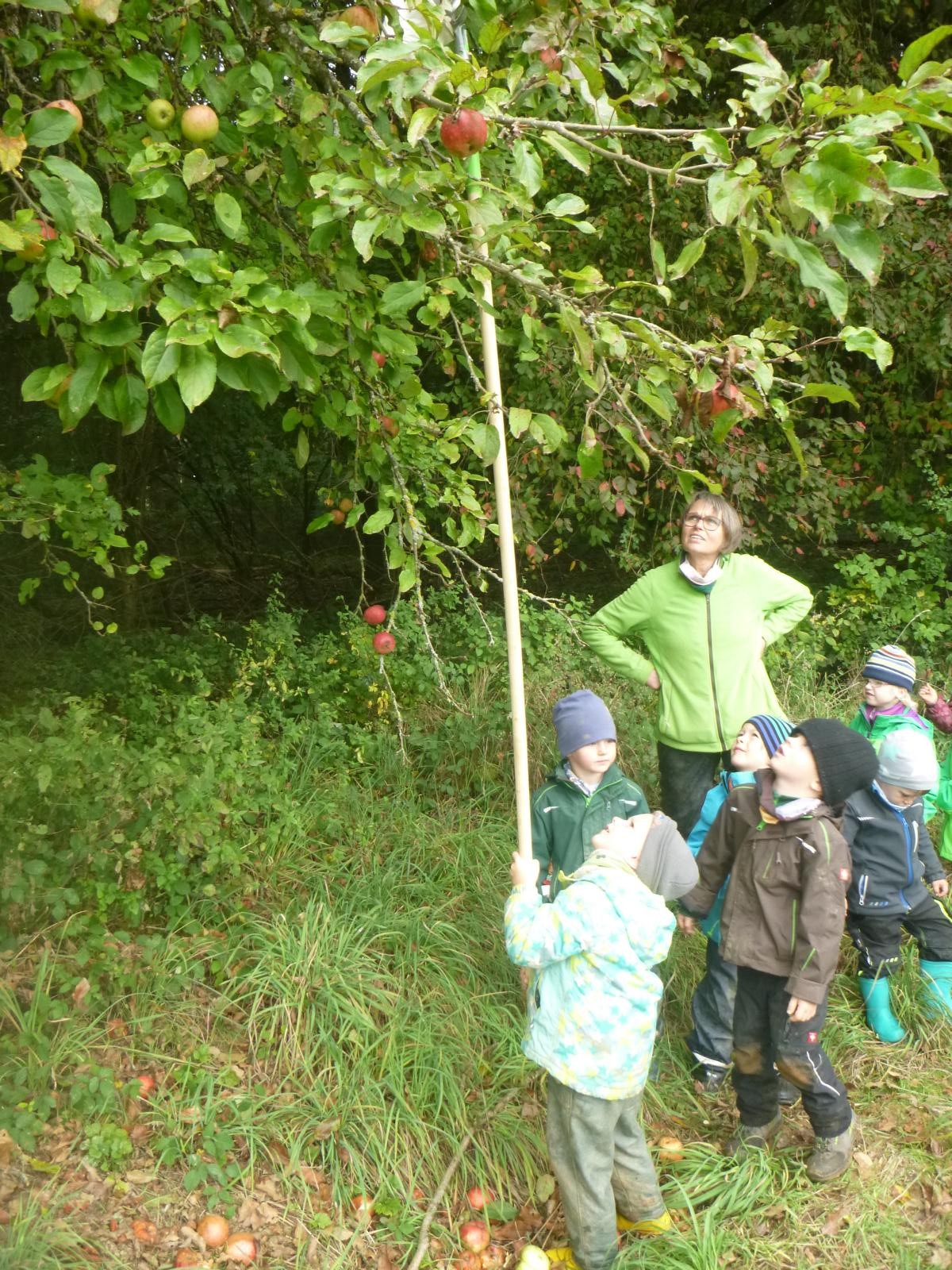 An einem sonnigen Herbsttag machten sich die Waldlauser - ausgestattet mit Korb und Apfelpflücker - auf zum geschützten Waldrand. Mehrere Apfelbäume wachsen dort versteckt und die roten Äpfel leuchten uns schon von weitem entgegen. Nach zwei mageren Jahren hängen heuer die Äste wieder übervoll mit den leckeren Früchten. Die ersten Äpfel wandern natürlich gleich in den Mund, süß und saftig sind sie. Mit vereinten Kräften wird weiter gepflückt und der Korb füllt sich schnell. Was da wohl alles daraus gekocht werden kann? Bratäpfel, Apfelkücherl, Apfelmus – den Kindern fallen viele Leibspeisen ein! Das wird ein leckerer Herbst!
