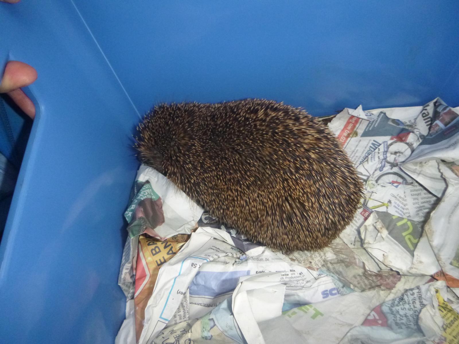 Da packten die Kinder den Entschluss, dass diesem kleinen Igelchen geholfen werden muss! Vorsichtig wurde er in eine Kiste verfrachtet und zur nahen Tierärztin gebracht. Die untersuchte den kleinen Stachelmann, konnte aber keine gesundheitlichen Beeinträchtigungen feststellen. Und so wurde der kleine Igel nach einer Nacht in medizinischer Obhut wieder zurück zu seiner Fundstelle gebracht. Die Kinder konnten ihn noch genau beobachten, suchten am Ackerrand noch nach ein paar saftigen Regenwürmern und Schnecken und entließen ihn dann schließlich wieder in die Freiheit. Alles Gute kleiner Igel!
