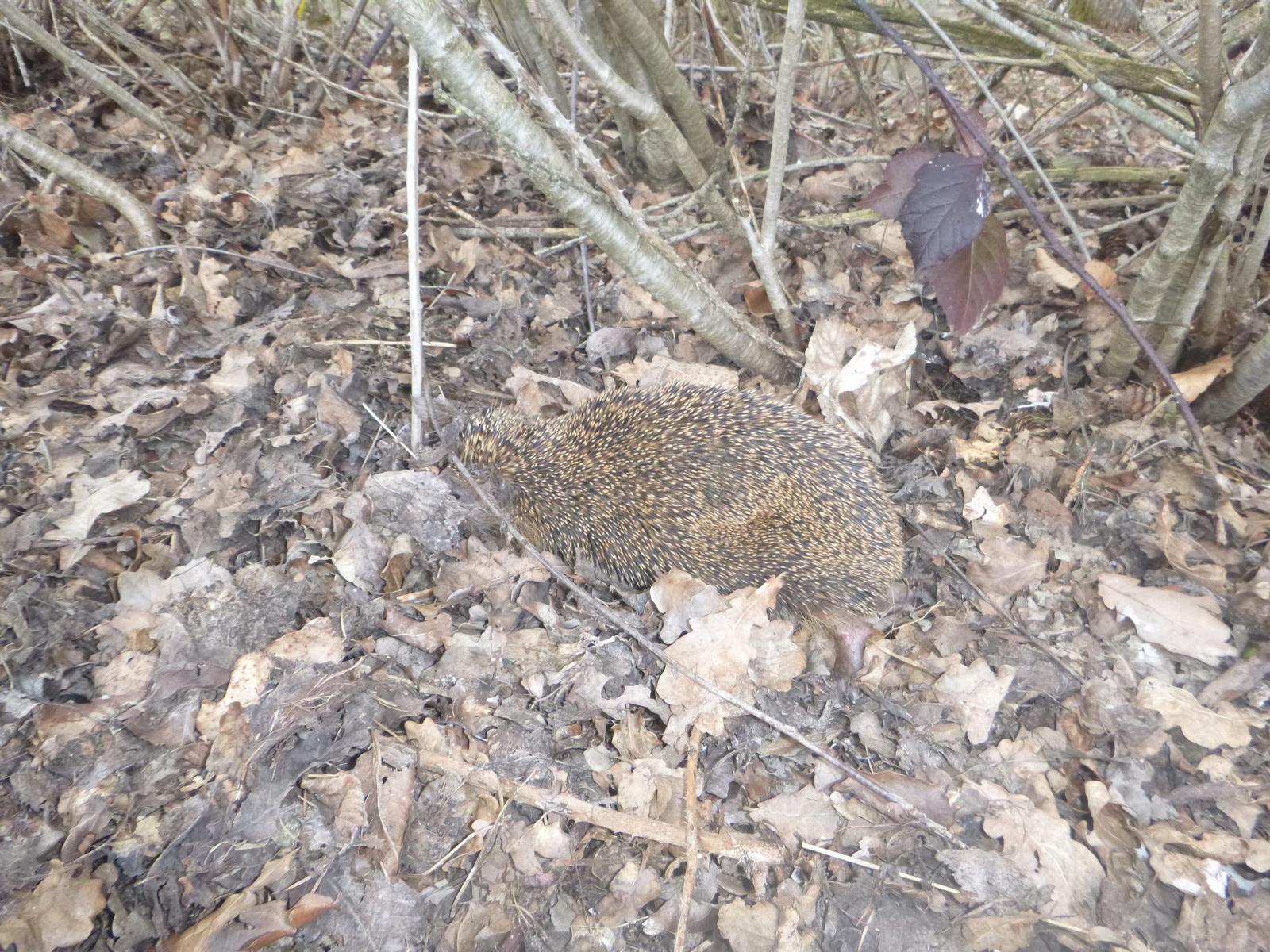 Und tatsächlich - bei näherem Hinschauen raschelte ein Igel im trockenen Laub. Ganz schwach war er und sichtlich abgemagert nach dem langen Winterschlaf. So recht wollte er nicht auf die Beine kommen und auch sein instinktives Zusammenrollen, mit dem sich jeder gesunde Igel bei Gefahr schützt, erfolgte nur sehr schwach.