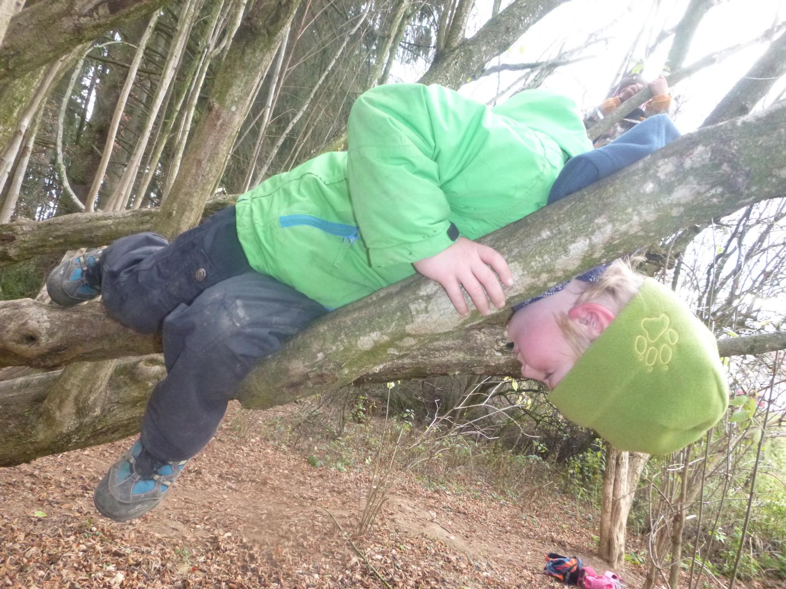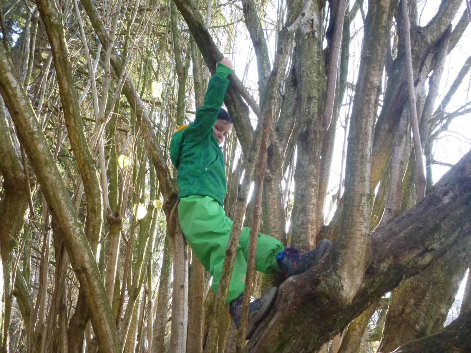 Bäume gibt es viele in unserem Wald - kleine und riesige, knorrige und glatte, alte und junge. Jeder hat seine Eigenarten, jeder fühlt sich anders an. Manche sind richtige markante Persönlichkeiten mit Wiedererkennungswert. Die einen laden zum Anlehnen ein, andere zum Forschen oder Verstecken und wieder andere haben eine unwiederstehliche Anziehungskraft: man kann auf ihnen klettern!
