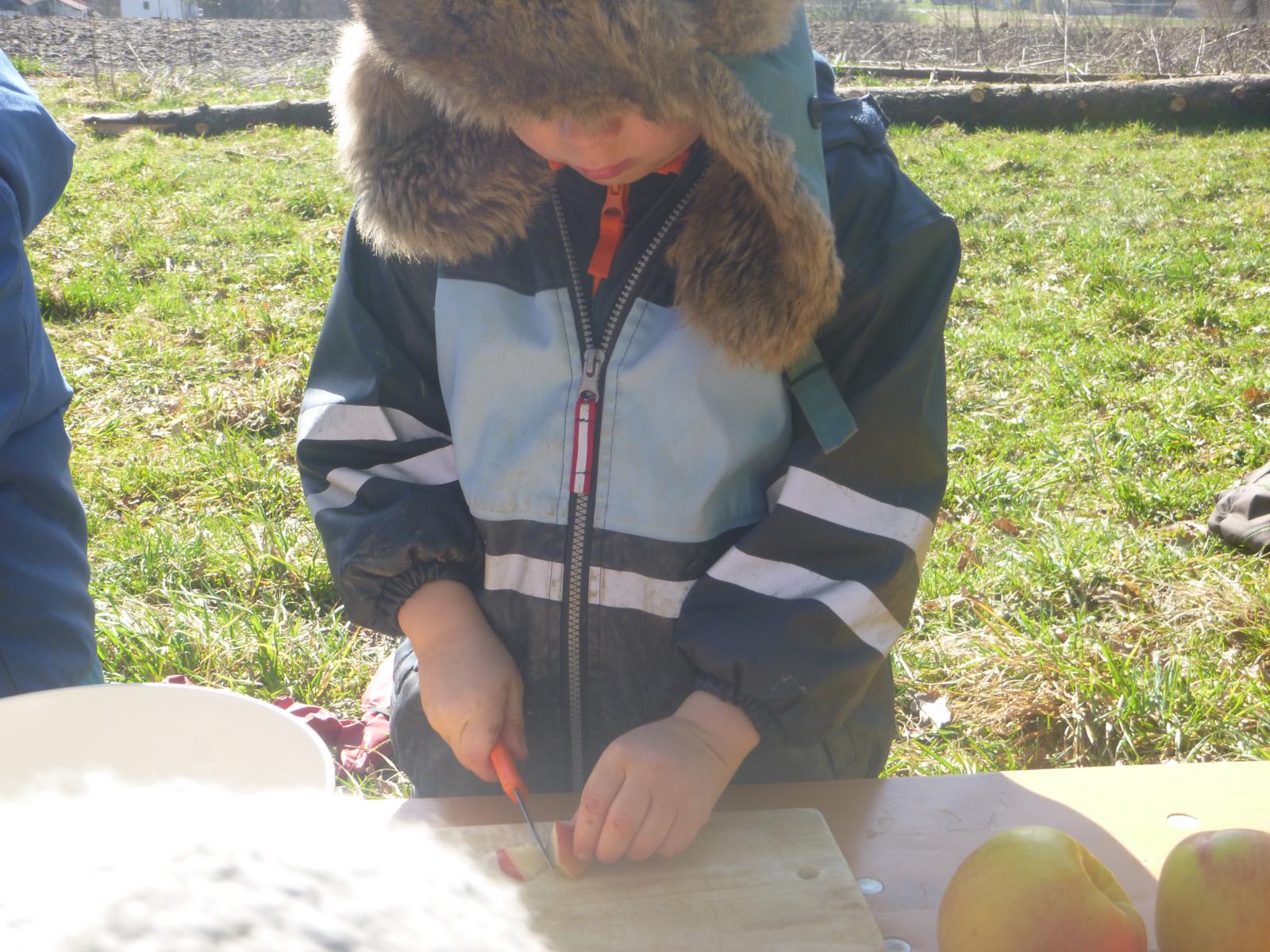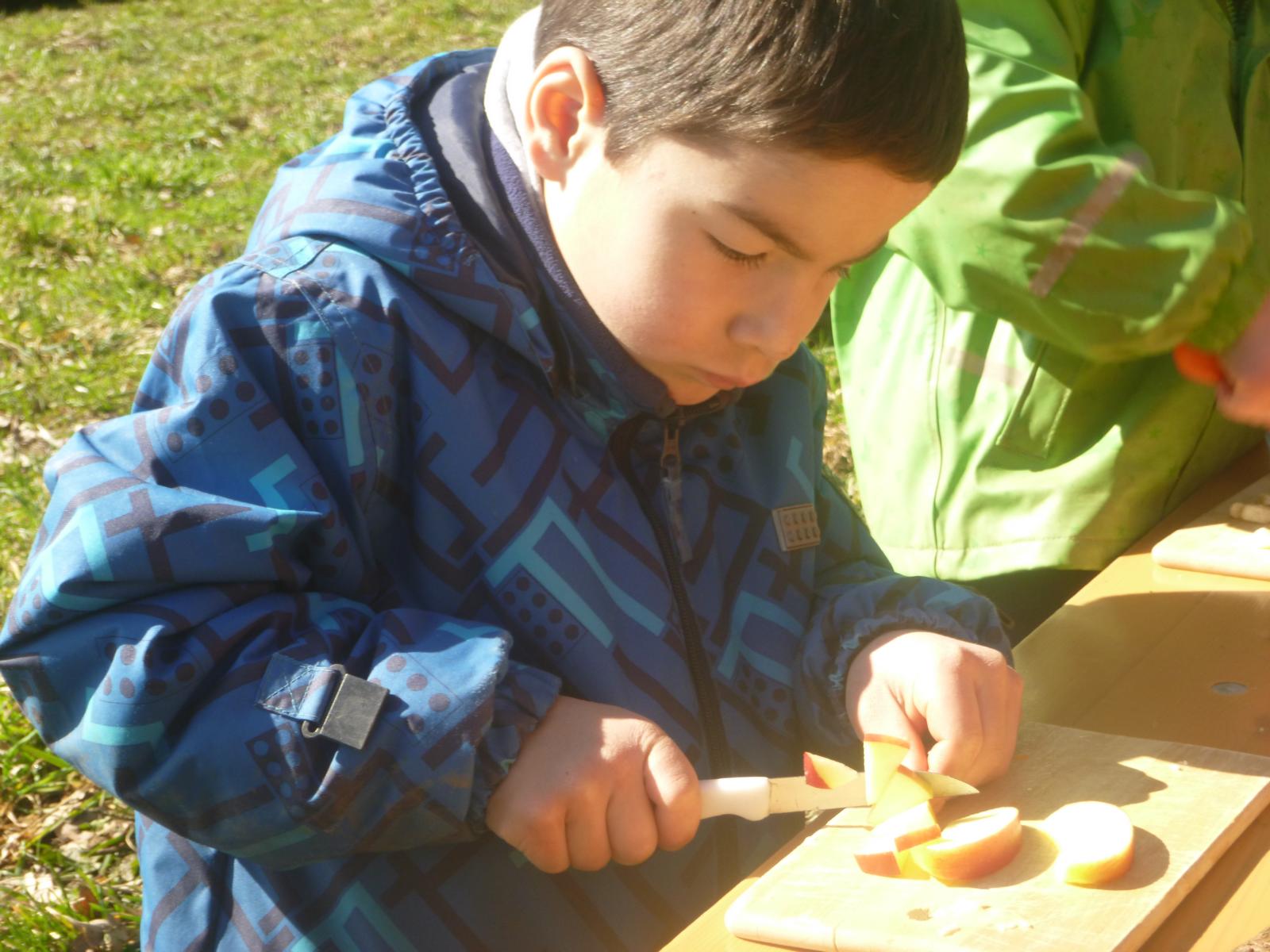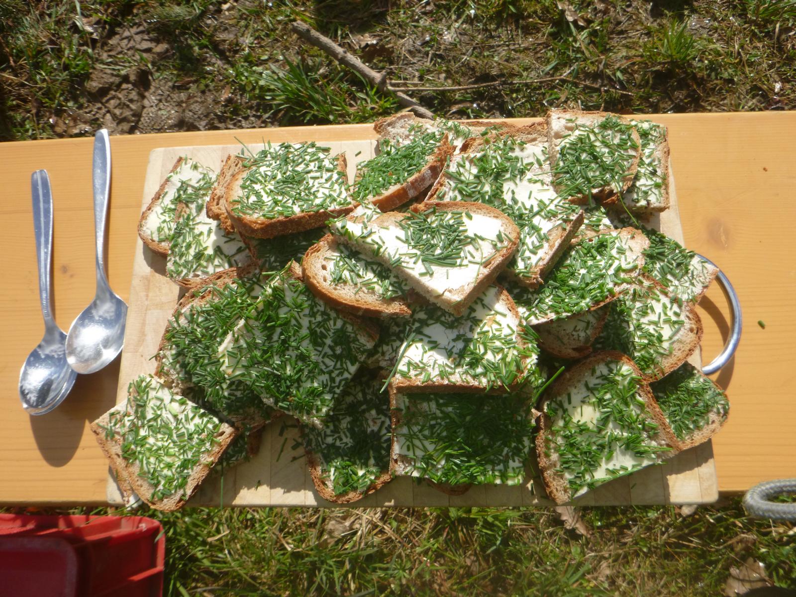 Den letzten Tag haben wir noch genutzt, um gemeinsam Obstsalat zu schnippeln und der leckere Weinbergslauch aus unserem Wald krönte noch unsere Butterbrote. So gab es zum Abschluss noch eine gemütliche, gemeinsame "Henkersmahlzeit" in der Sonne.