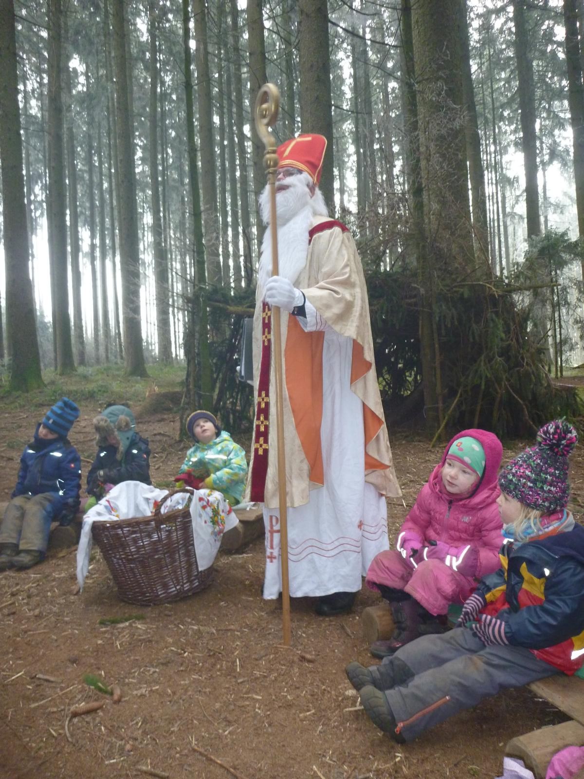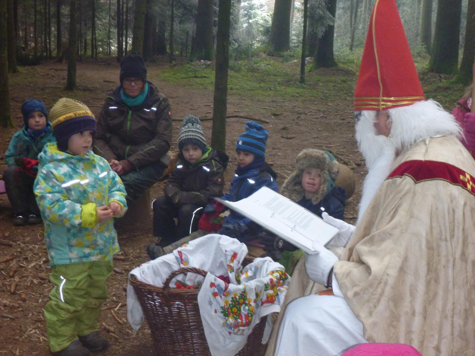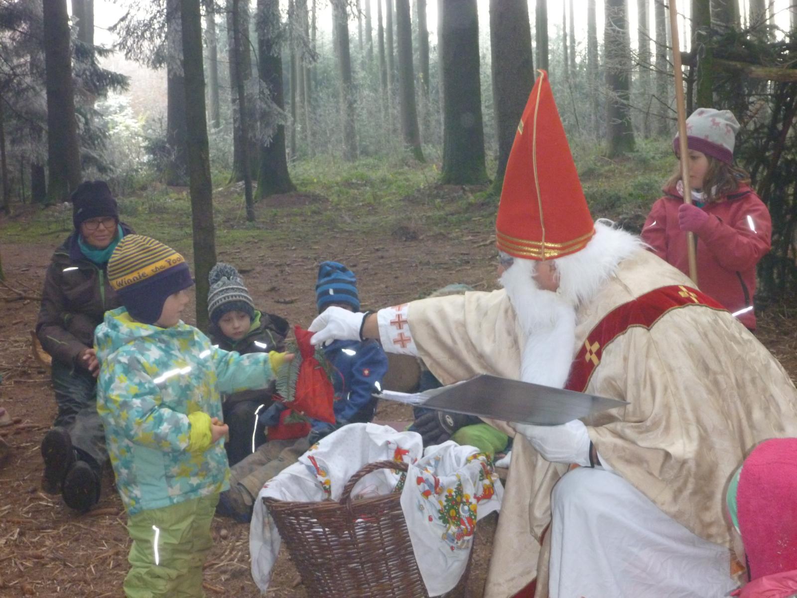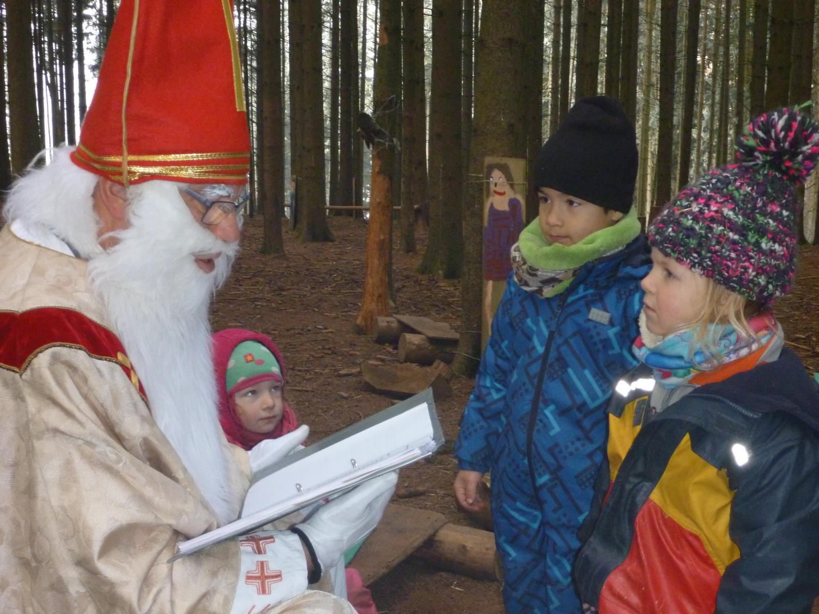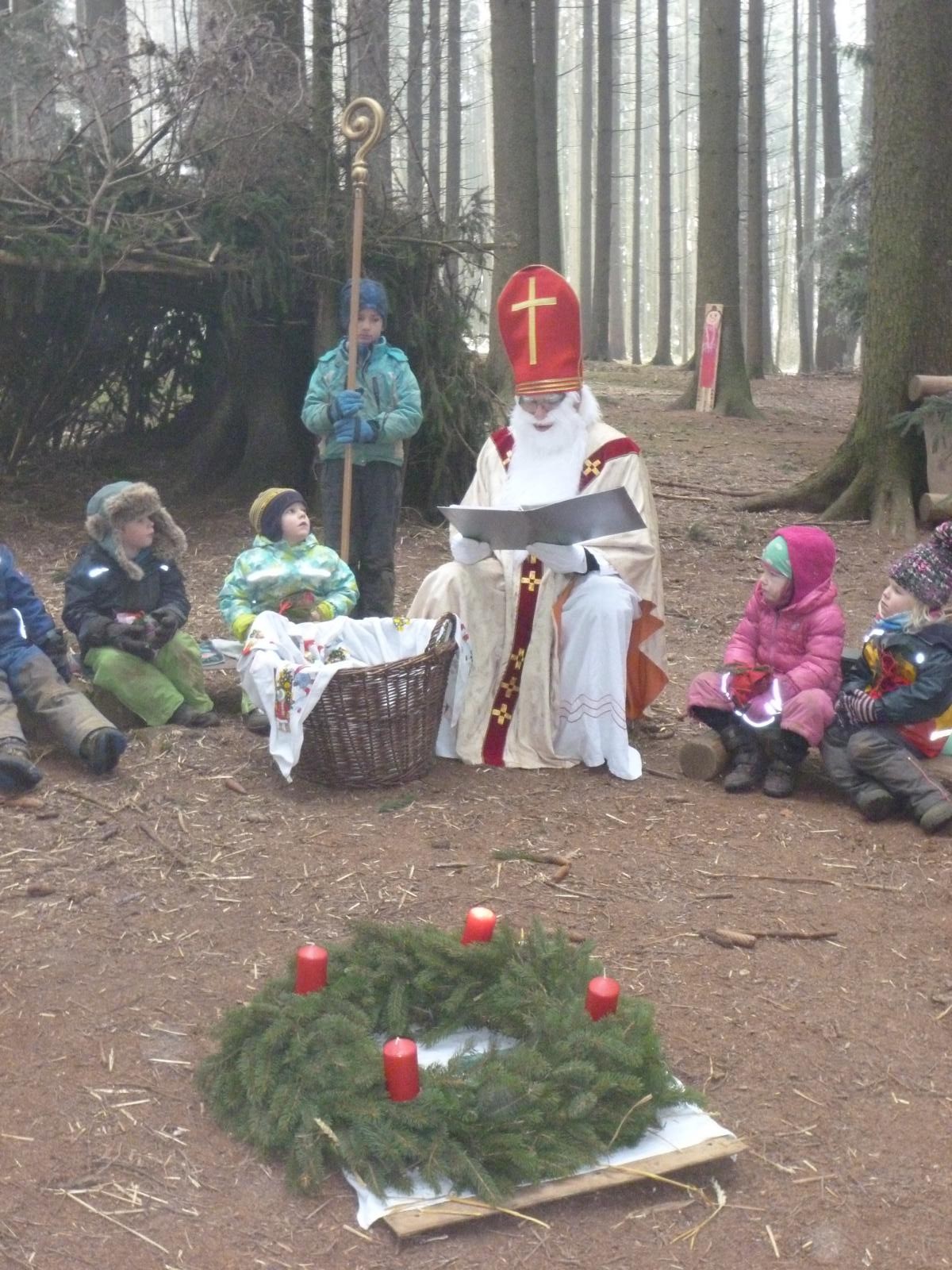 Zapfennikoläuse schmücken die Zweige am Unterstand, Nikolauslieder klingen durch den Wald und gespannt lauschen die Waldlauser den Geschichten vom Heiligen Mann, der vor vielen hundert Jahren in der heutigen Türkei lebte und viel Gutes tat.