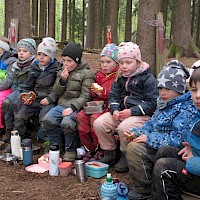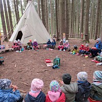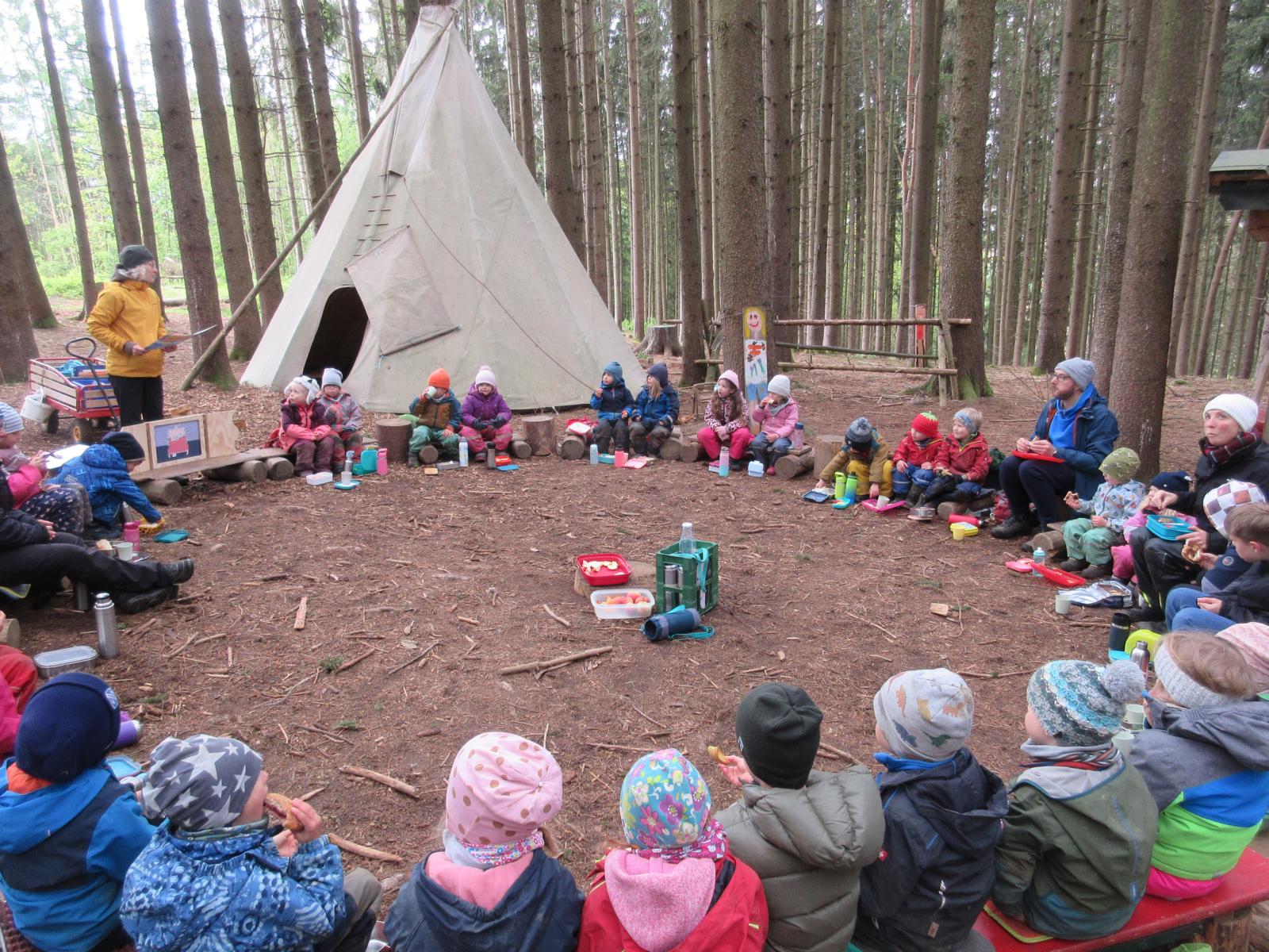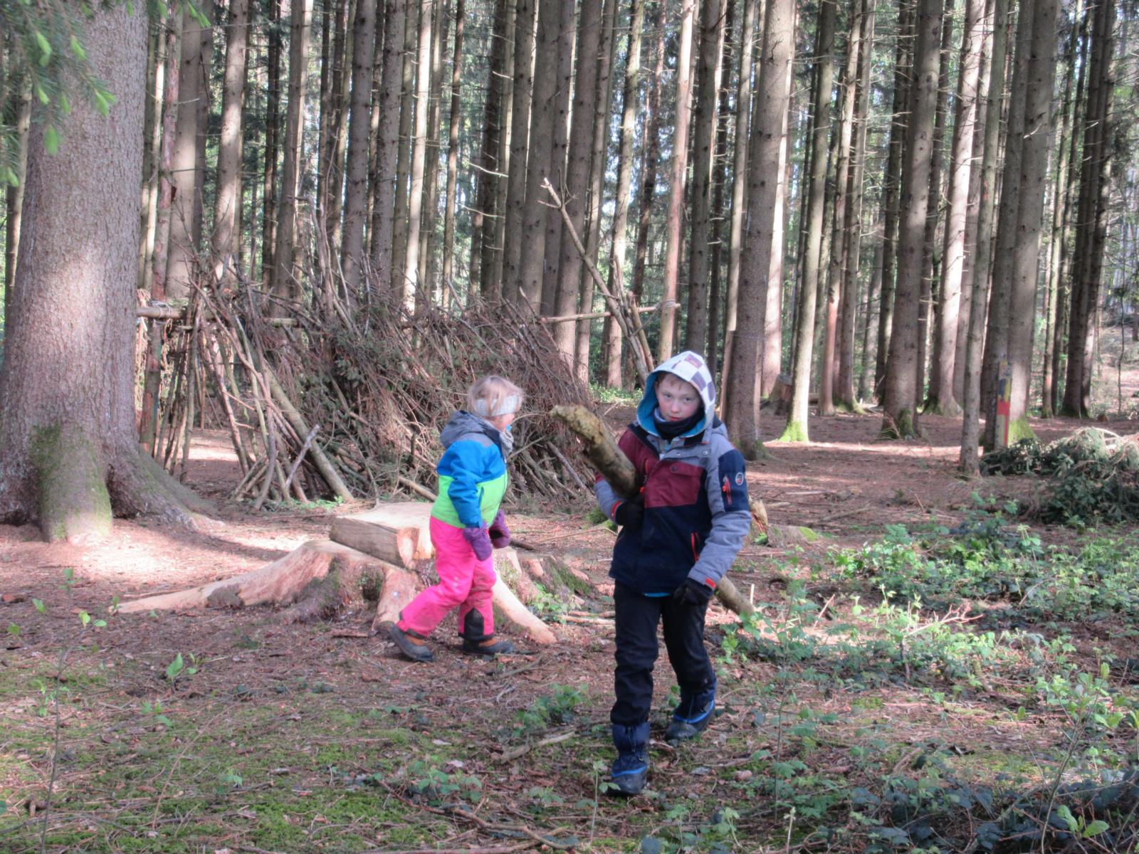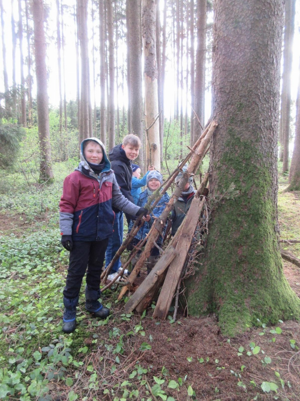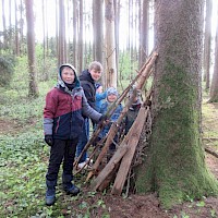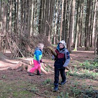 Am 25.April 2024 kamen gleich 2 Boy`s mit in den Kindergarten. Max und Gerrit, beide in der 7. Klasse wollten mal einen ganzen Vormittag im Wald schnuppern. Nach anfänglichen Unsicherheiten von "Groß" und "Klein" wurde gemeinsam der Moosplatz erobert. Es gab viel zu sehen, zu entdecken und natürlich auch zu bauen. So wurde gesägt und geschnitzt und zum Schluss entstand ein recht ansehnliches Tipi und kleine Freundschaften. Alle hatten viel Spaß und berichteten mit glänzenden Augen und roten Gesichtern von ihrem Vormittag. Danke, dass Ihr da wart!