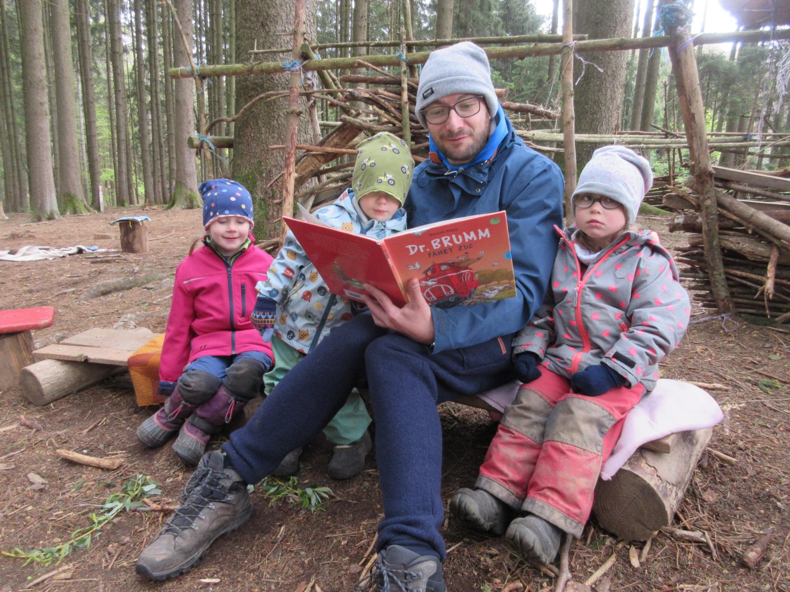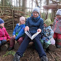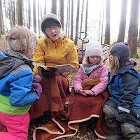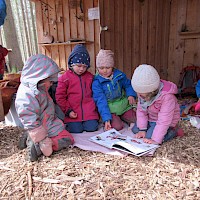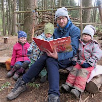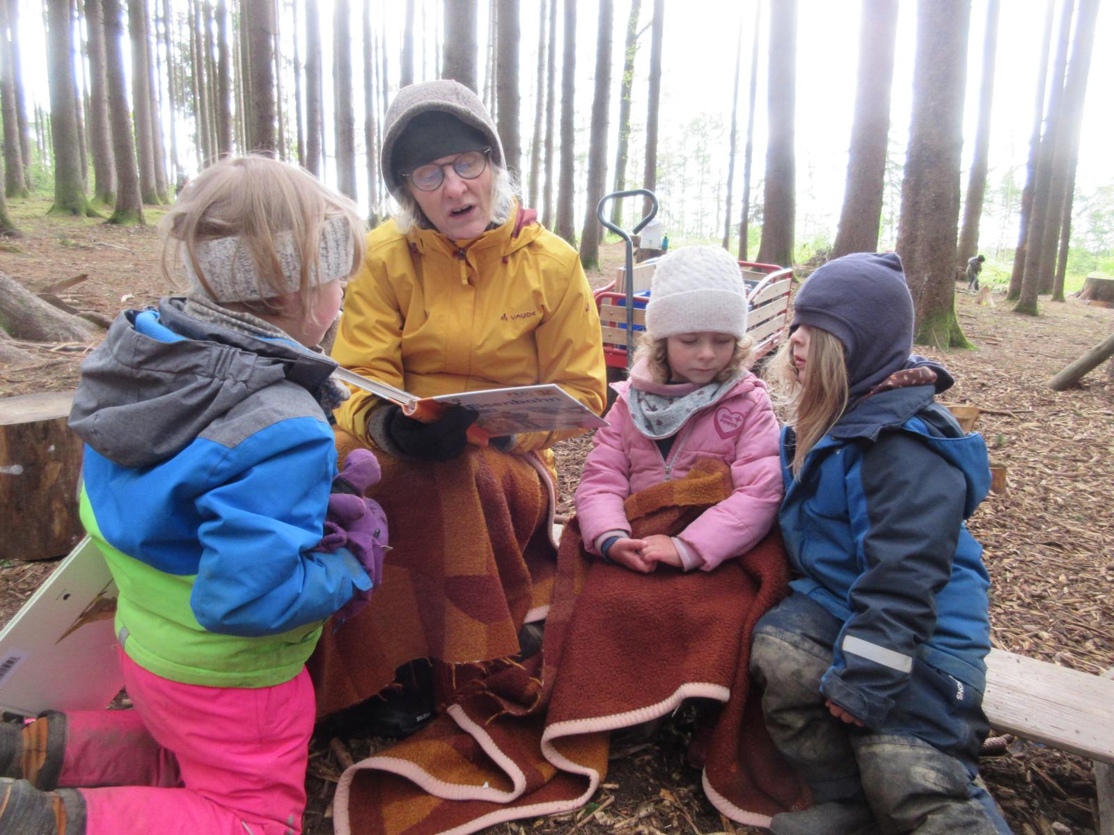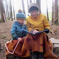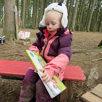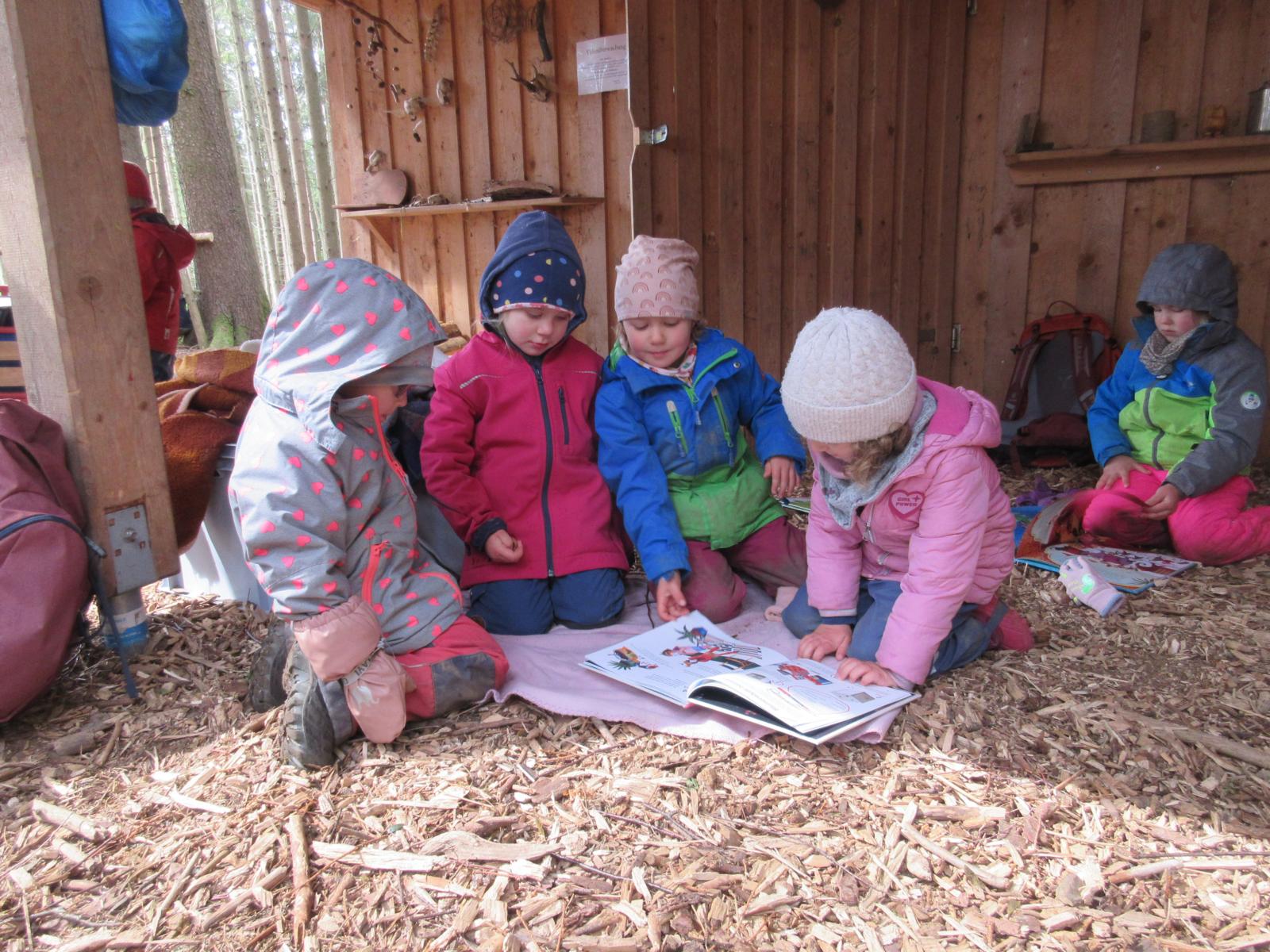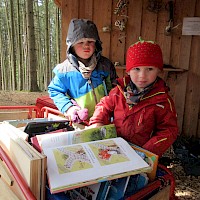 Nach der Brotzeit, wurde in Decken gekuschelt, viele Bücher gelesen und angeschaut. Denn der April zeigte an diesem Tage, was er alles so will und so schien mal die Sonne, es graupelte und der Wind pfiff uns um die Ohren. Aber alle waren sich am Schluss einig und fragten gleich: " Christl, wann kommst du uns wieder besuchen?"