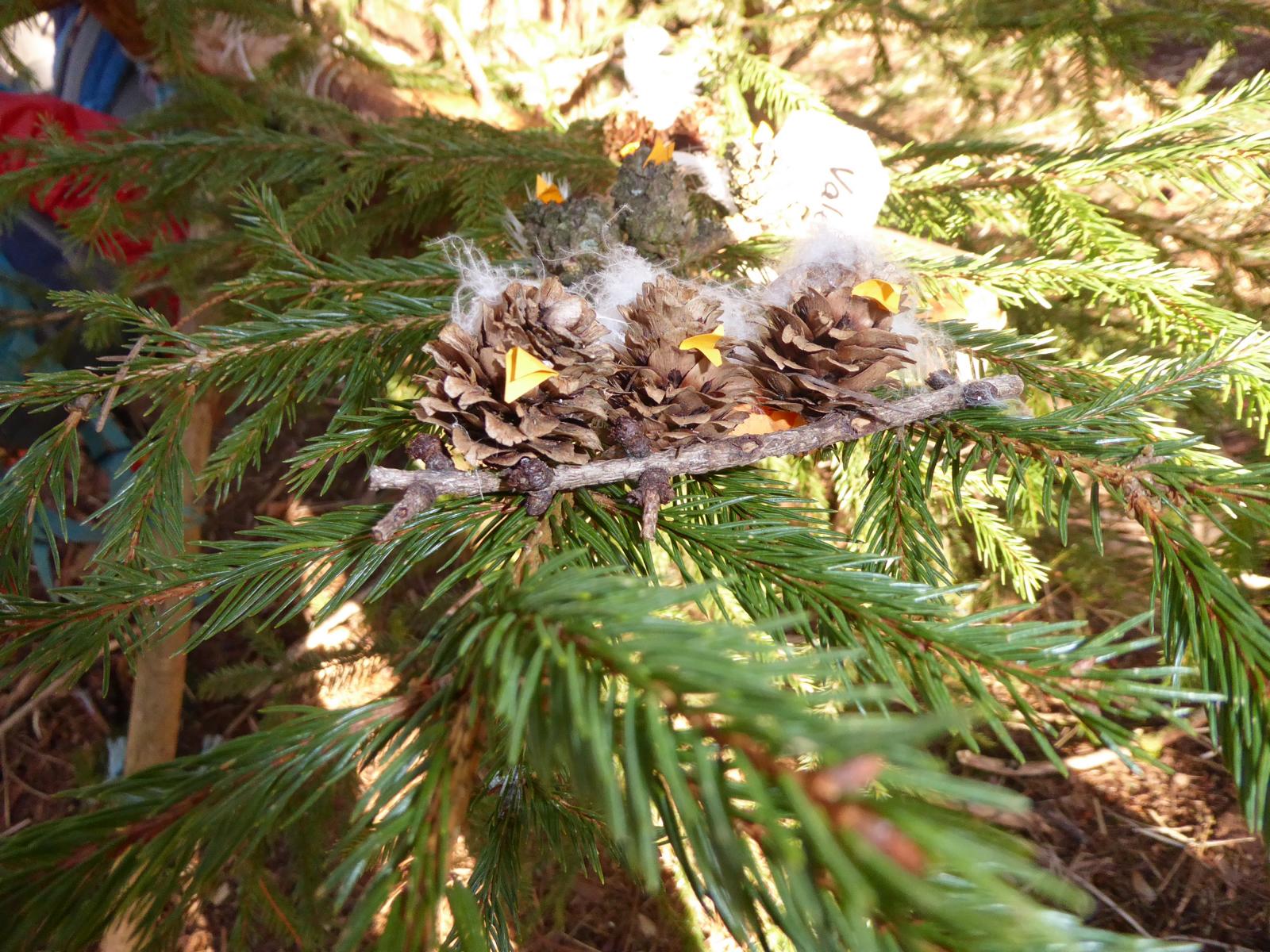 Auf der Skala der Lieblingsgedichte rangiert das altbekannte Gedicht von Christian Morgenstern bei den Waldlausern ziemlich weit oben. Immer wieder mögen sie es sich bei der Brotzeit anhören und kuscheln sich selber dicht zusammen, wie Erich, Franz und Hans. Aus kleinen Lärchenzapfen lassen sich die drei Spatzen schnell nachbasteln. Im Nu waren die kleinen Lärchenzapfen mit ein paar Federn versehen worden und da sitzen sie nun - dicht an dicht.