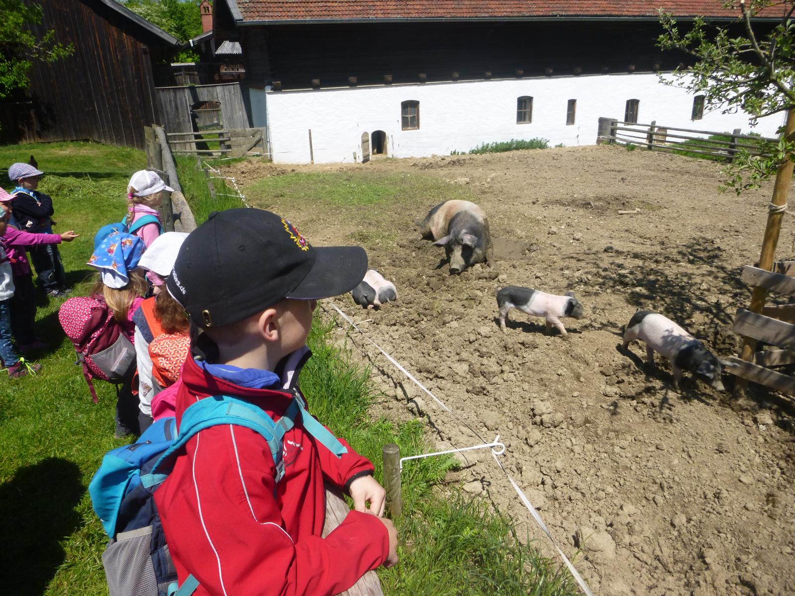 Wir hatten nun noch genügend Zeit, uns die verschiedenen Tiere anzusehen, in die eine oder andere gute Stube zu blicken und fanden uns dann schließlich am Spielplatz ein. Mit Eis im Bauch und fertiggebackenem Brot im Rucksack ging’s zum Bahnhof zurück und mit dem Zug wieder nach Neumarkt-St.-Veit. Dort probte im benachbarten Saal des Kulturbahnhofs gerade ein Orchester für den Auftritt am Abend und wir durften die Vielzahl der Instrumente beim Einstimmen bewundern. Leider konnten wir den Proben nicht länger lauschen – der Zug hätte sicher nicht gewartet. Müde, aber mit vielen schönen Eindrücken im Gepäck, kletterten die Waldlauser dann in Geisenhausen wieder aus dem Zug und hatten den wartenden Eltern sicherlich viel zu erzählen.