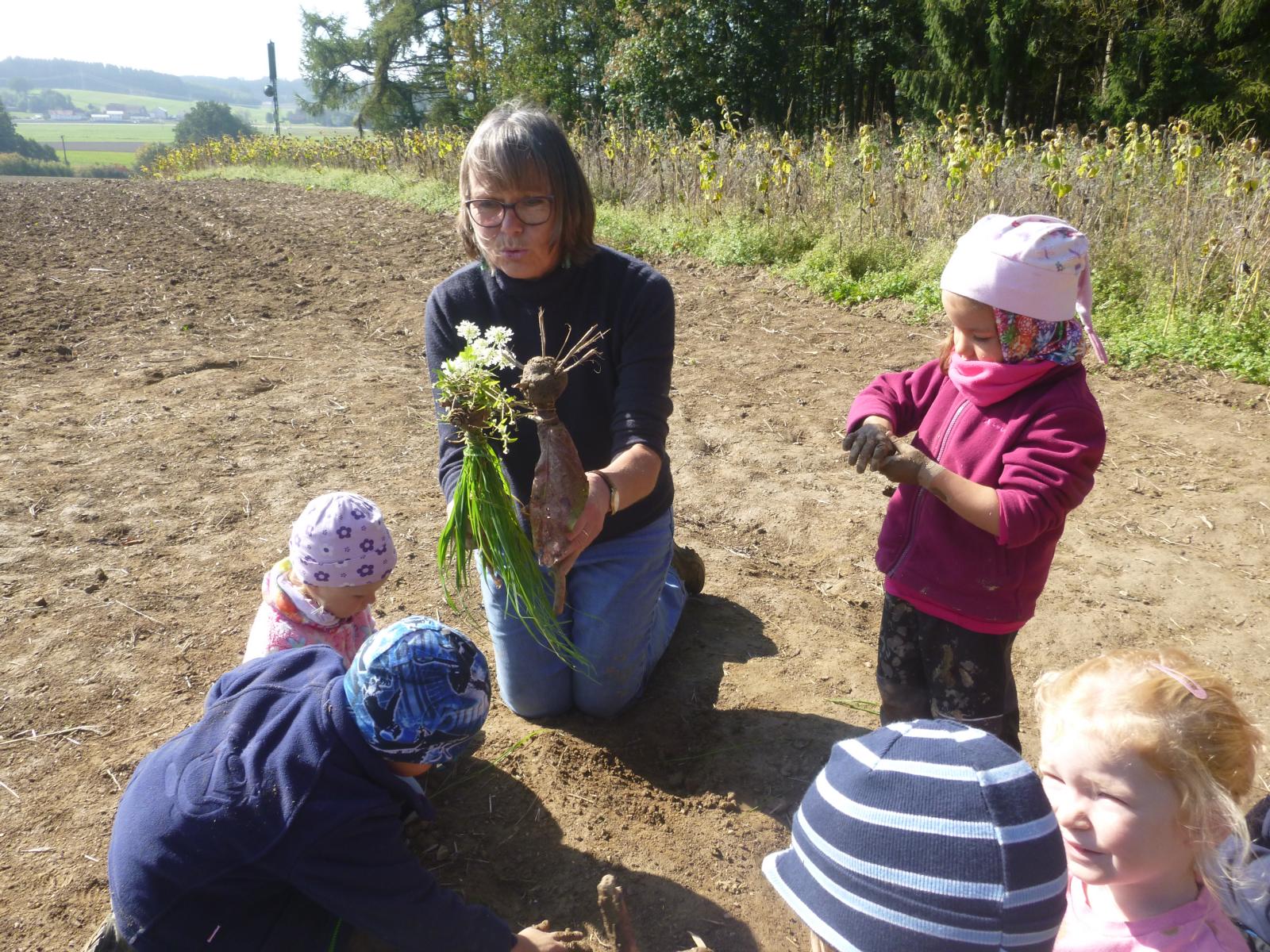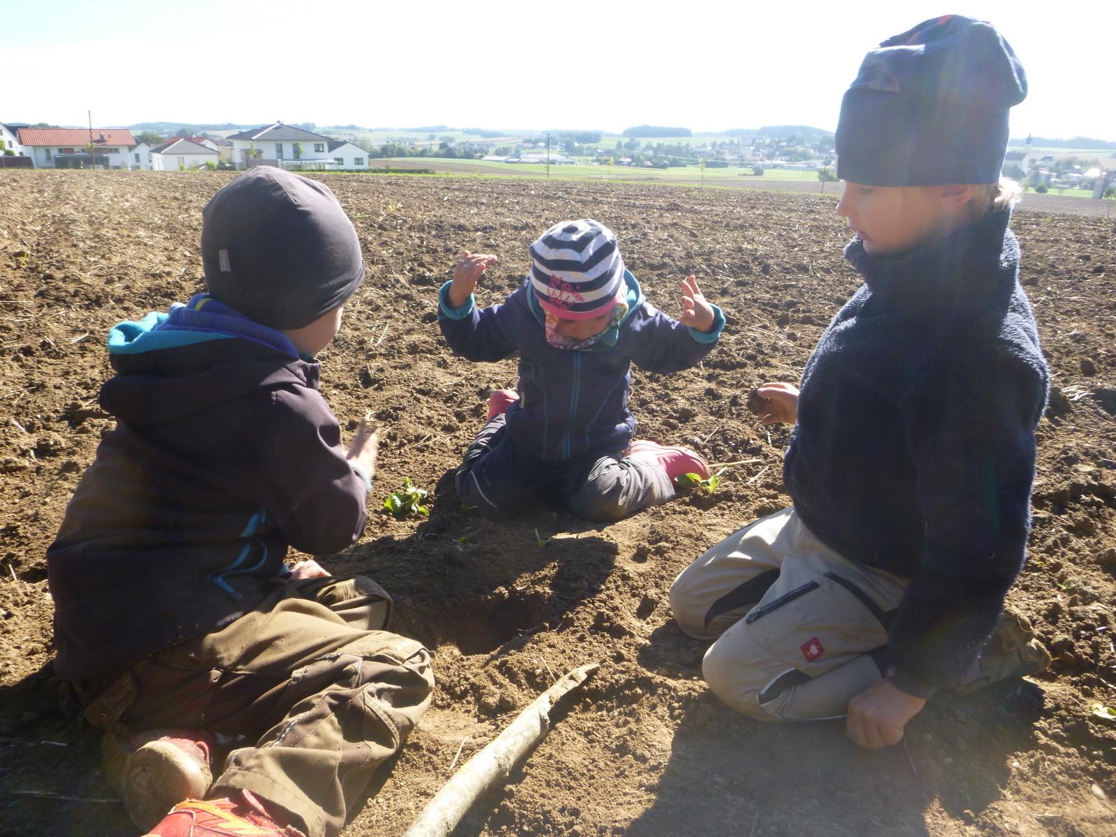 Der abgeerntete Acker am Waldrand lädt uns wieder einmal zum Spielen und Forschen ein. Gute Augen sind notwendig, um die vielen kleinen Lebewesen zu entdecken, die noch die wärmenden Strahlen der Herbstsonne nutzen. Unzählige kleine Spinnen, Laufkäfer und Asseln gibt es da beispielsweise zu beobachten, Marienkäfer sonnen sich und im angrenzenden Blühstreifen finden eine Vielzahl von Insekten ideale Bedingungen. Der beste Platz für unsere Waldlauser, um auf Entdeckungstour zu gehen.