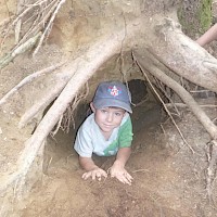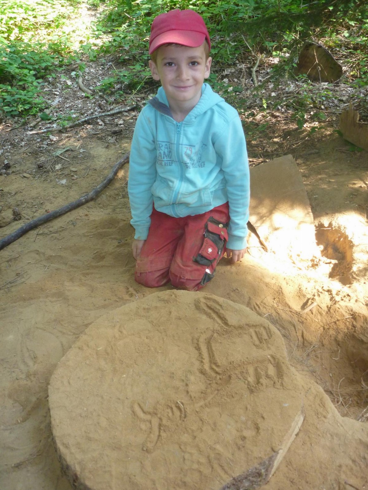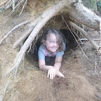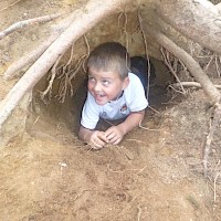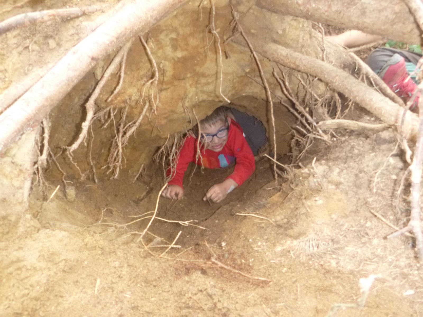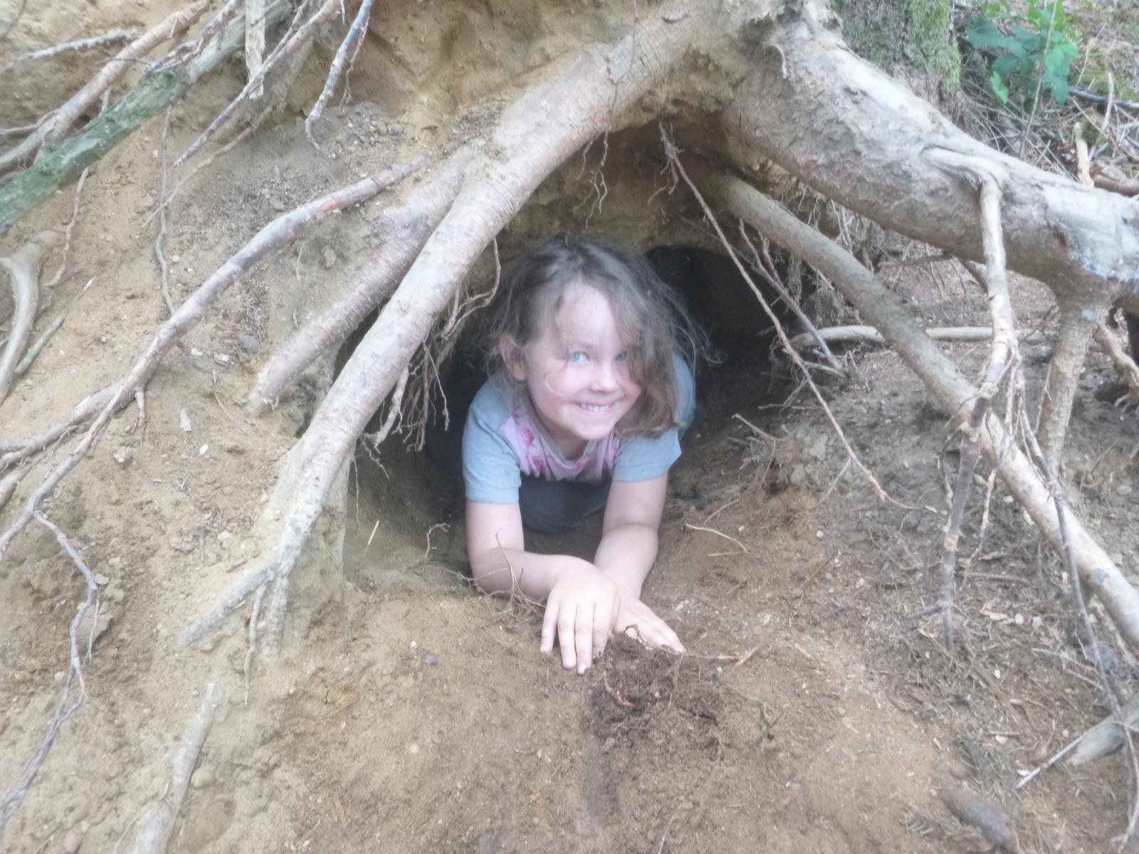 Der Erde ganz nah sind die Waldlauser bei ihrem Spiel. Durch die Trockenheit verwandelt sich der Waldboden an manchen Stellen zu einem großen Sandkasten und die Kinder nutzen den Sand in unterschiedlichen Farbtönen für ihre Spiele. Kuchenbäcker gibt es da, große Erdbohrer kommen zum Einsatz und manche Sandladung wird auf großen Rindenstücken abtransportiert, um anderswo wieder zum Einsatz zu kommen. In gemeinschaftlicher Arbeit graben die Kinder eine tiefe Höhle unter den alten Baumstumpf eines umgestürzten Baumes und fühlen sich dort ein wenig wie Fuchs und Dachs.