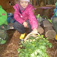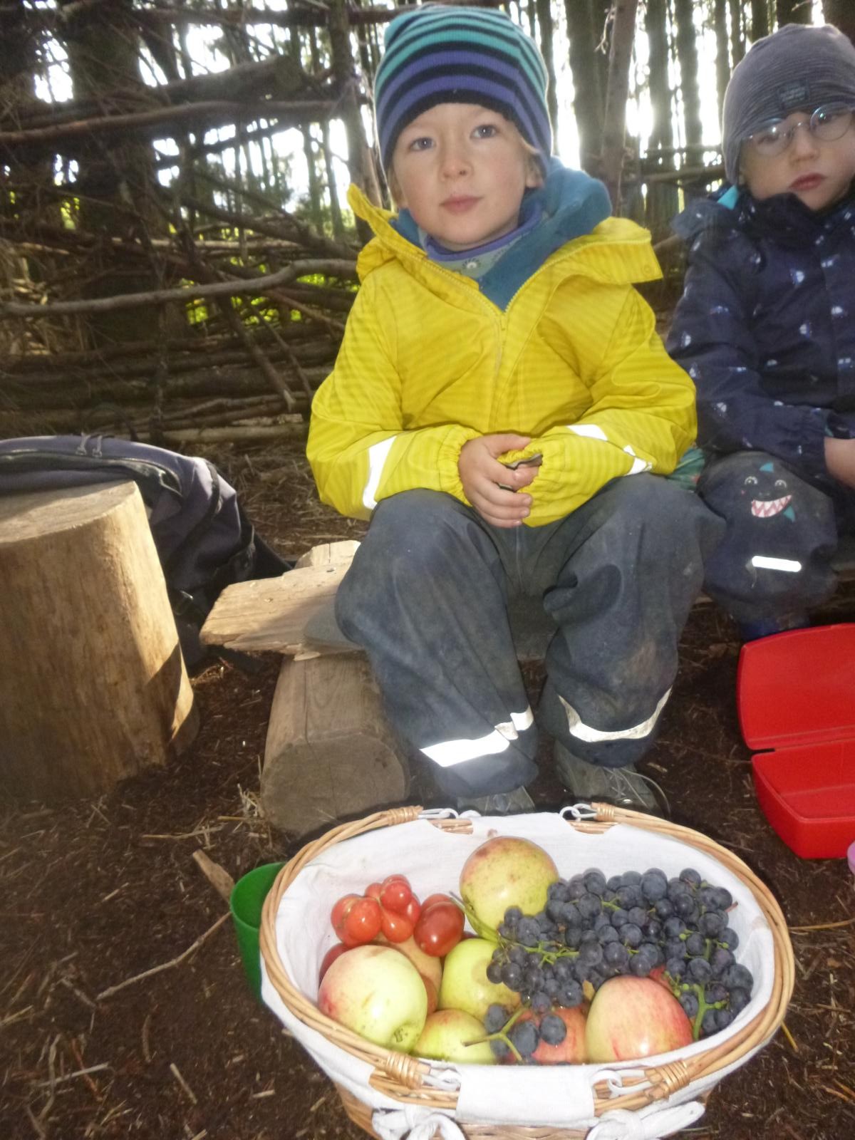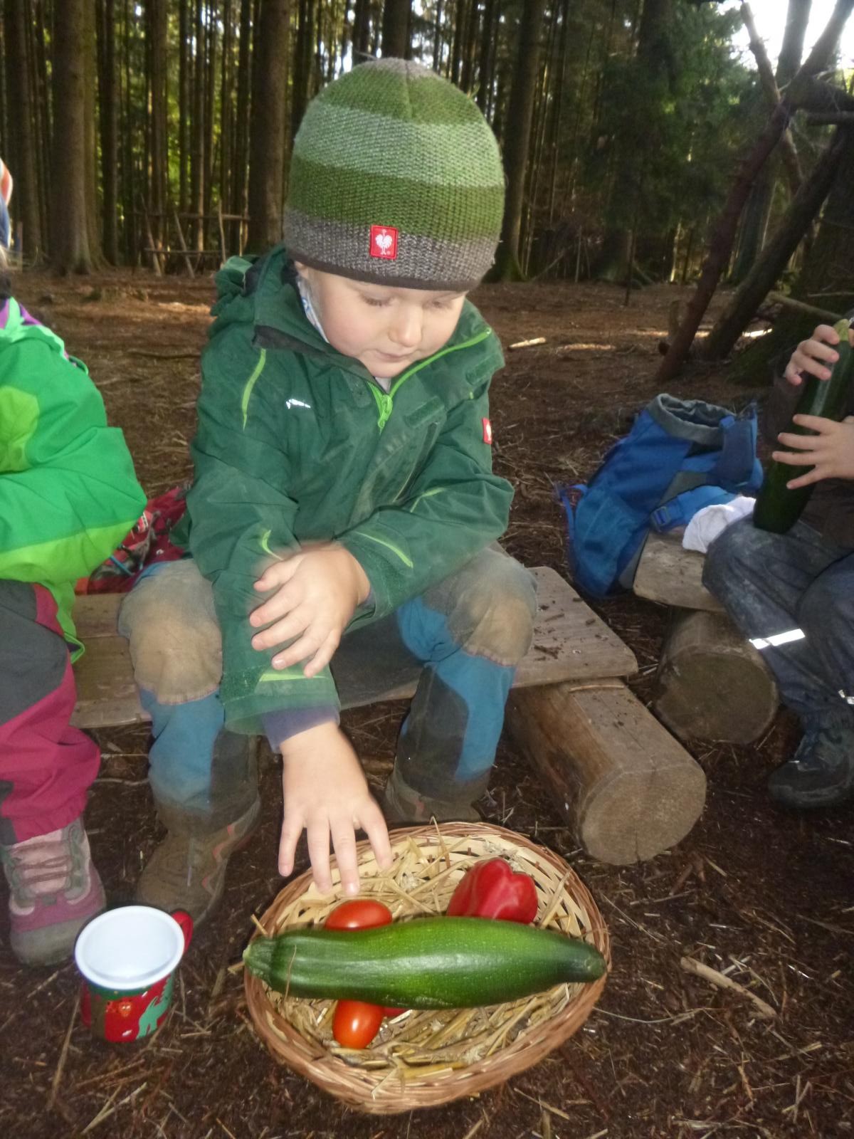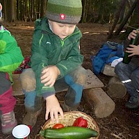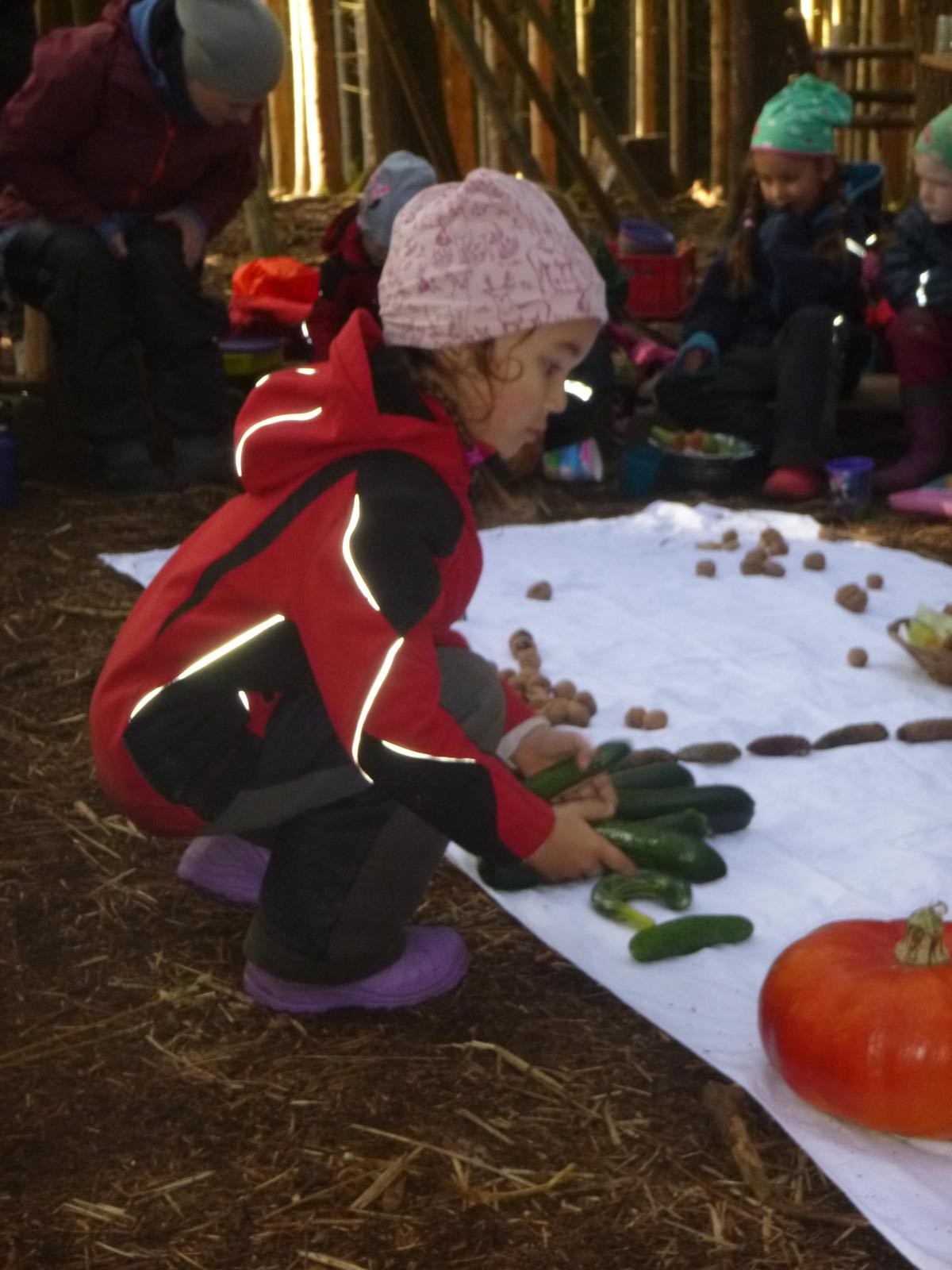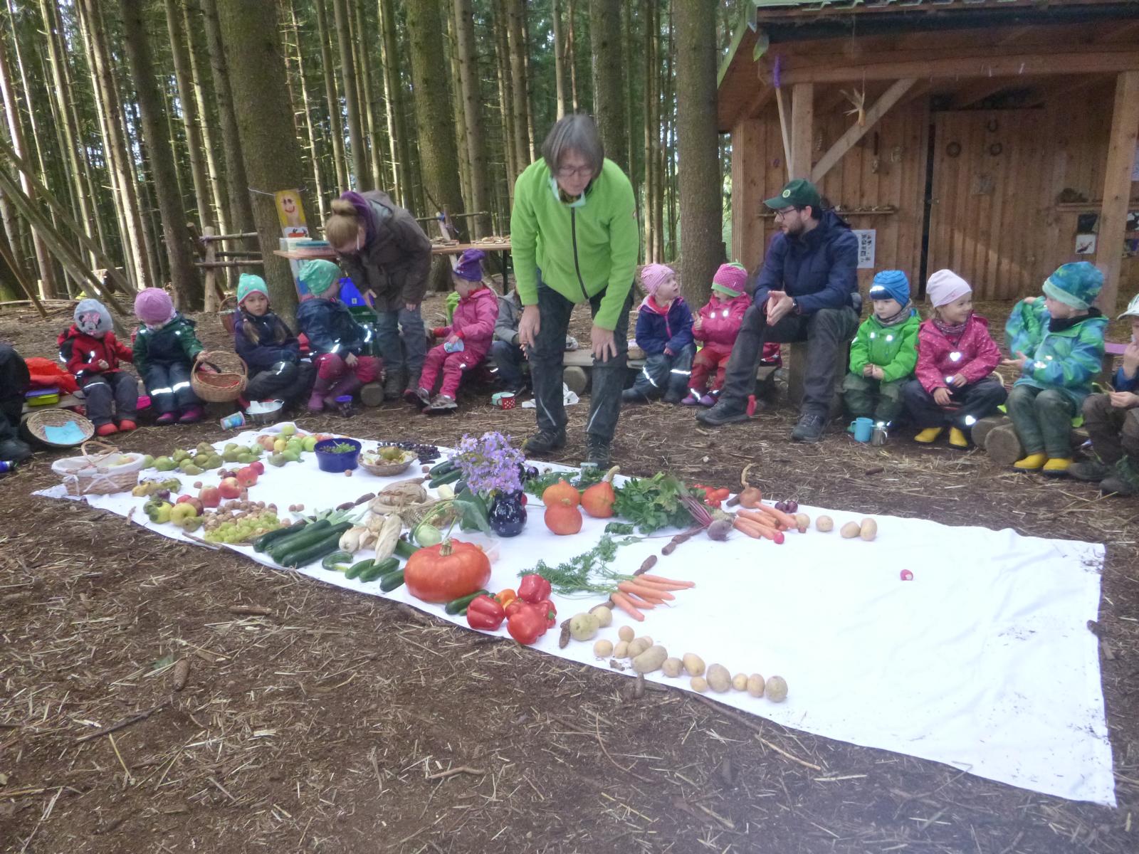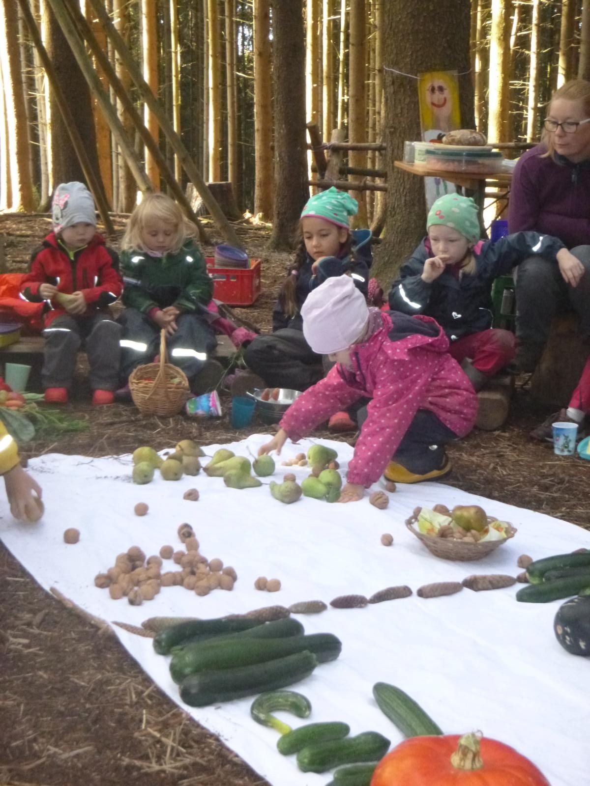 Ein Fest für alle Sinne ist jedes Mal unser kleines Erntedankfest. Die mitgebrachten Erntegaben landen nach und nach auf unserem Tuch. Die Kinder staunen über die Vielfalt an Früchten und Gemüse, die unterschiedlichen Apfelsorten, über blaue und rote Kartoffeln oder essbare Blüten. Doch bevor wir uns diese Gaben zusammen mit frischen Butterbroten schmecken lassen, sagen die Waldlauser „Dankeschön“ für diesen Reichtum! Sie bedanken sich bei Gott und der Natur, denn Ernten und Danken gehört zusammen!