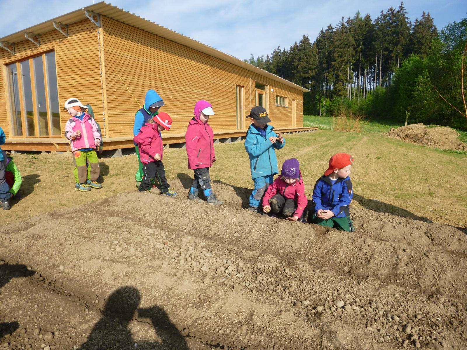 Im Gemüsegartl stecken schon die Kartoffeln in der Erde und Radieserl und Salat müssen jetzt nur noch wachsen. Die Kinder haben ein wachsames Auge darauf, ob sich auf den Beeten schon etwas regt.