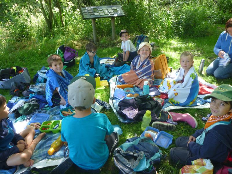 Das nasse Element noch genauer untersuchten die künftigen Vorschulkinder bei einem Tagesausflug an den Naturerlebnispfad am Vilsbiburger Rettenbach. Unter der fachkundigen Anleitung von Martina Meßner erkundeten die Waldlauser mit Keschern, Lupen und Bestimmungsbüchern die kleinen Wasserbewohner des Rettenbachs. Bachflohkrebse, verschiedene Egel und Schnecken gab es da zu bestaunen und sogar ein kleiner Stichling verirrte sich ins Netz. Neugierig wurde geforscht und beobachtet und bei ihrem Einsatz tauchten die kleinen Forscher wortwörtlich ins kühle Nass ein. Auf dem naturbelassenen Gelände verging der Tag bei Spielen und Aktionen wie im Flug.