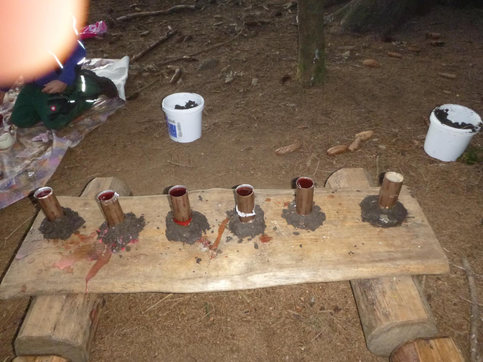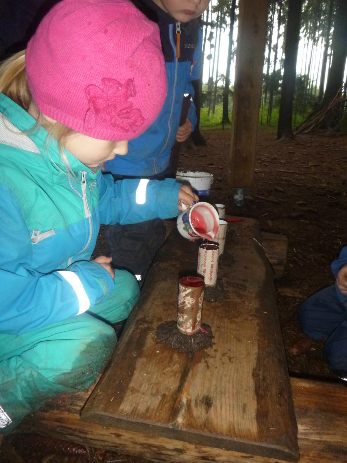 Die gesammelten Wachsreste wurden eingeschmolzen und durch ein Sieb in vorbereitete Formen gegossen. Nach dem Aushärten ging es ans Auswickeln und dann konnte die schöne Kerze noch mit buntem Wachs nach Lust und Laune verziert werden.
