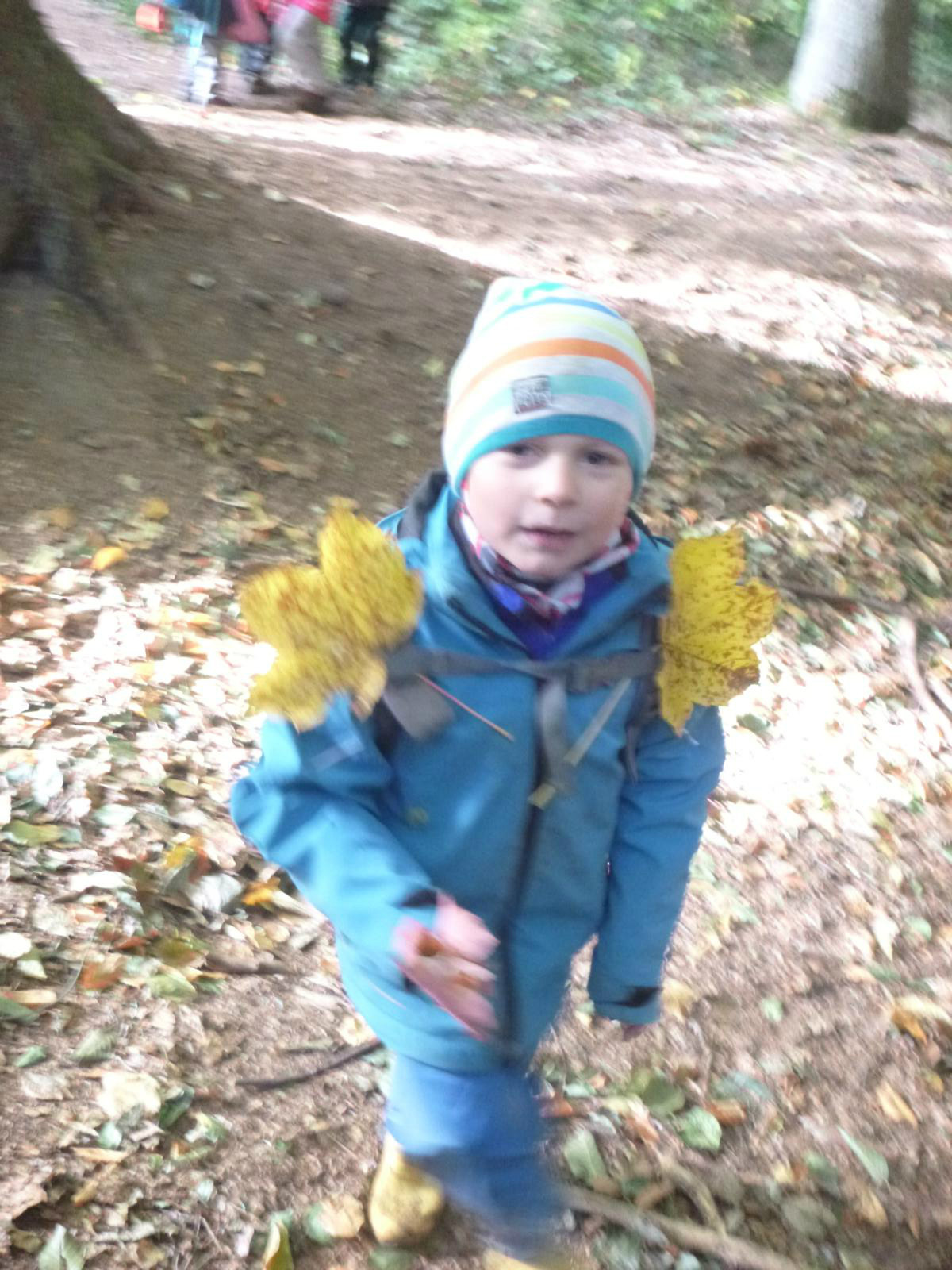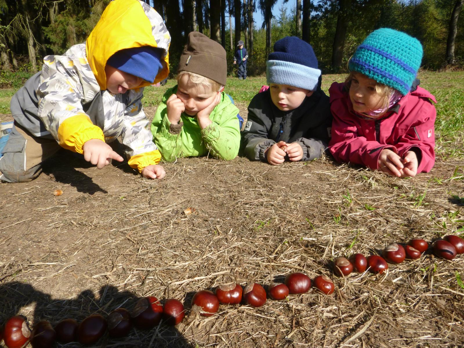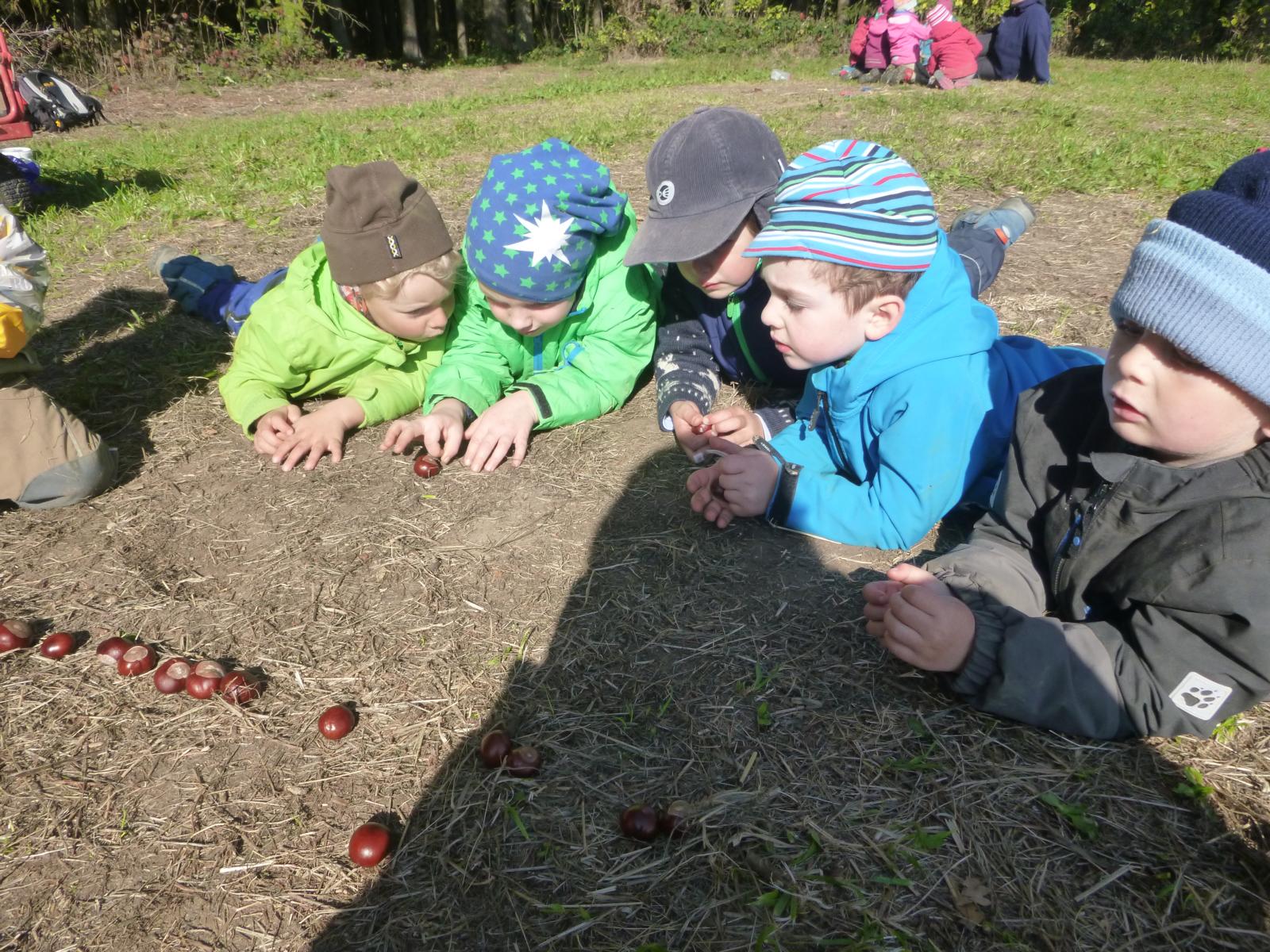 Die Kinder stopfen sich nun die Taschen voll mit Waldfrüchten - Eicheln, Kastanien, Samenstände und viele bunte Blätter werden gesammelt und prägen das Spiel.