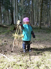 Alle hatten mitgeholfen und ein paar Stöcke geschnitzt und nun ist das Geschenk für Frau Rottenwallner fertig!