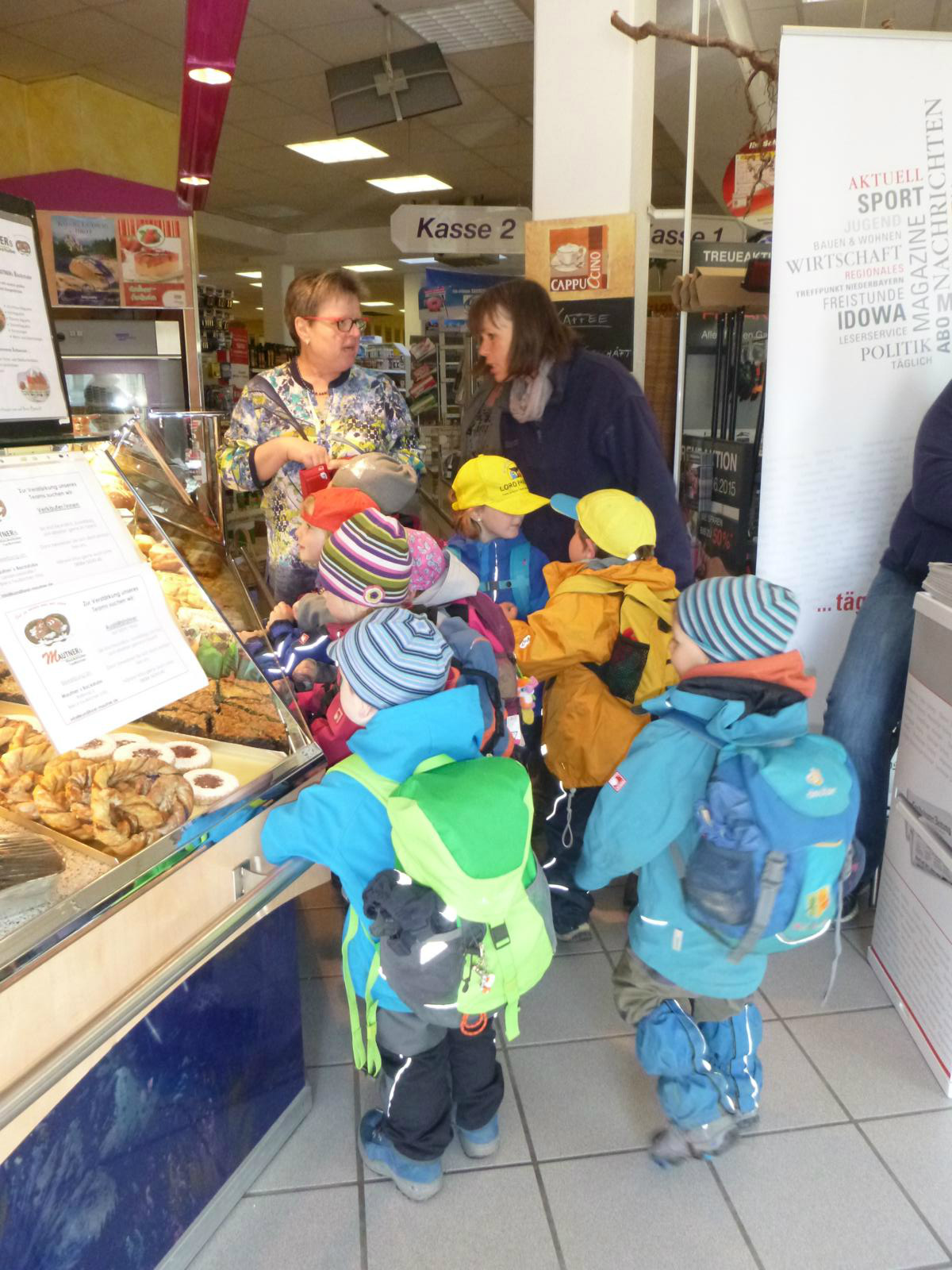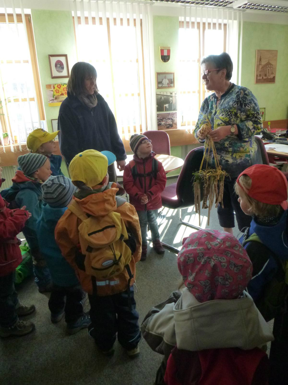 Ganz leise schlichen wir uns in den 1. Stock und warteten geduldig, bis Frau Rottenwallner ihr Telefonat erledigt hatte und wir sie mit einem Geburtstagsständchen überraschen konnten. Die Kinder schmetterten fröhlich das Lied vom Eichhörnchen und den anderen Waldtieren und überreichten unser selbstgebautes Windspiel.
