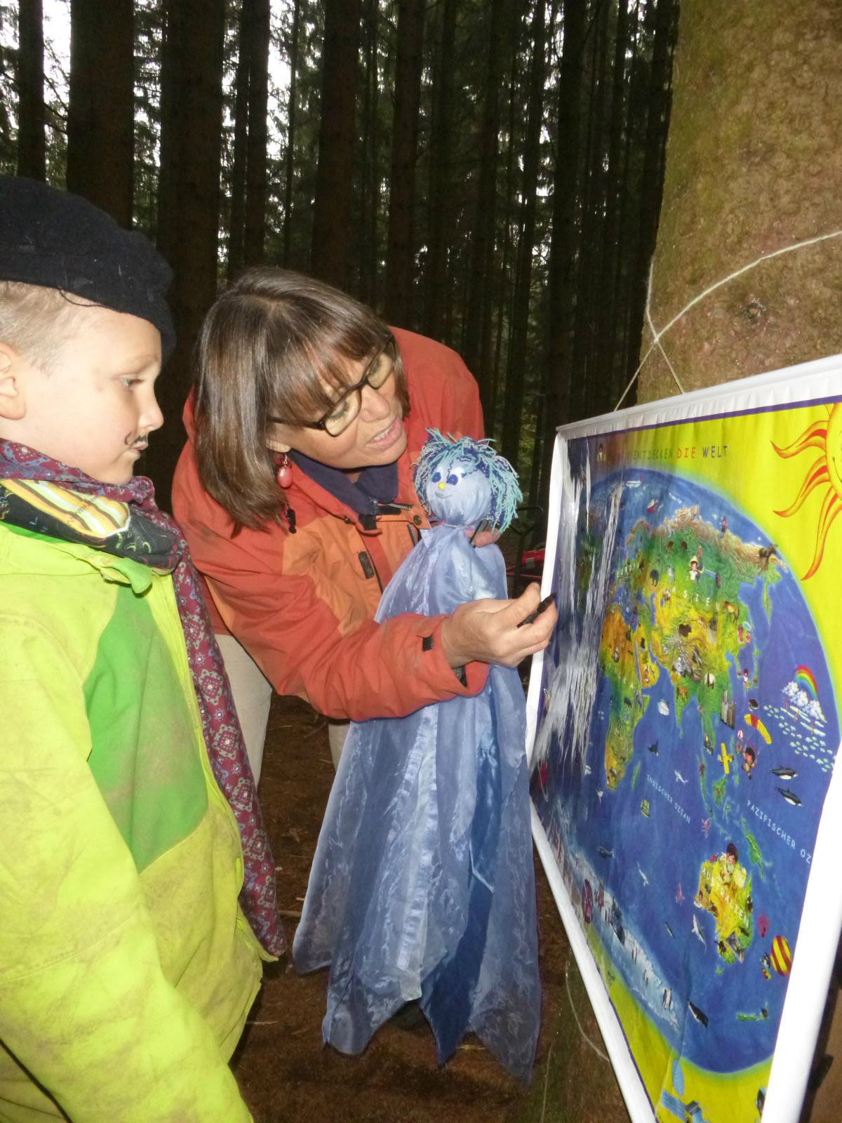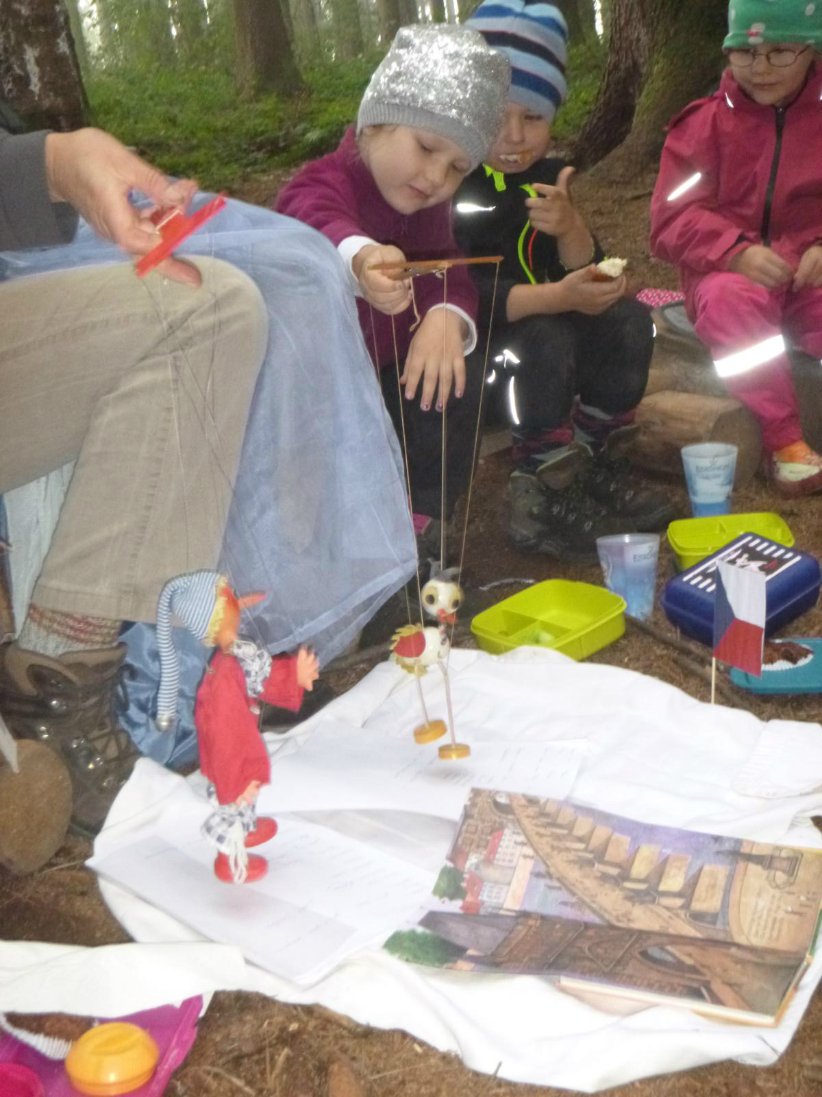 Der kleine Zauberer Furifazius hatte uns im vergangenen Kindergartenjahr an jedem Geburtstag einen besonderen Zaubertrick präsentiert. Doch nun ist er mitsamt seinem Koffer in die Zaubererschule entschwunden und treibt wohl dort seine Späße. Doch zum Glück kam rechtzeitig der kleine Windgeist Cumbolino zwischen den Bäumen herangeschwebt. Er erzählt uns seitdem bei jedem Geburtstag von einem anderen Land: wie dort die Kinder leben, wie sie sprechen, aussehen, welche Spiele sie spielen und was es dort besonderes zu sehen und zu erleben gibt. In seinem Reisekoffer bringt allerlei Landestypisches mit und so manche kulinarische Köstlichkeit. Für das Geburtstagskind hat er natürlich die entsprechende Landesfahne im Gepäck - und einen Kompass, damit das Land auch sicher erreicht werden kann…..