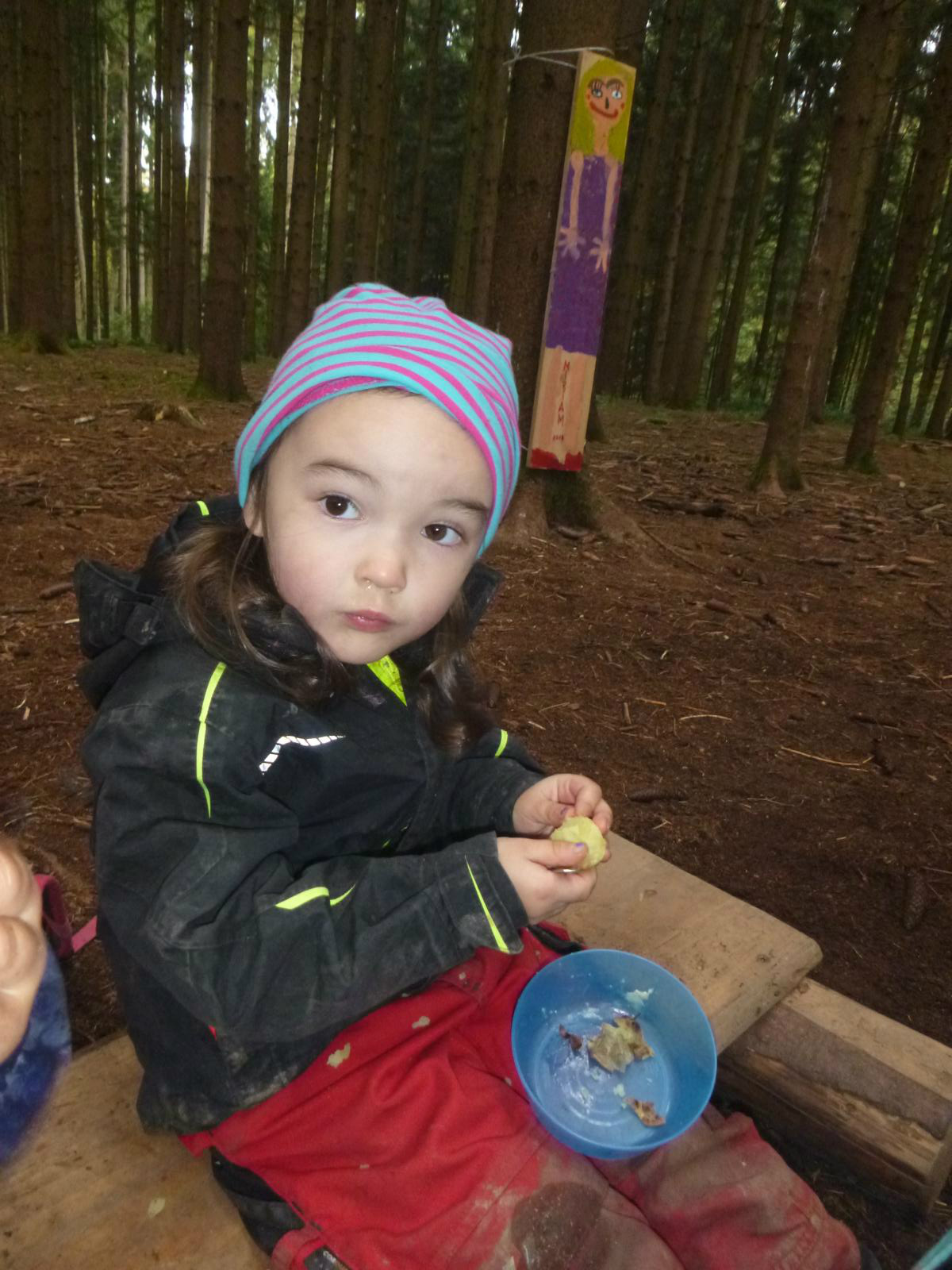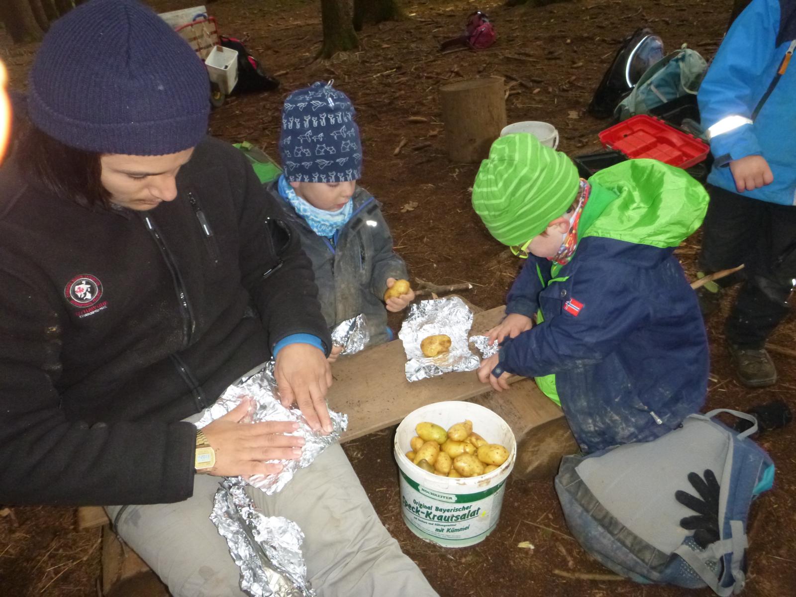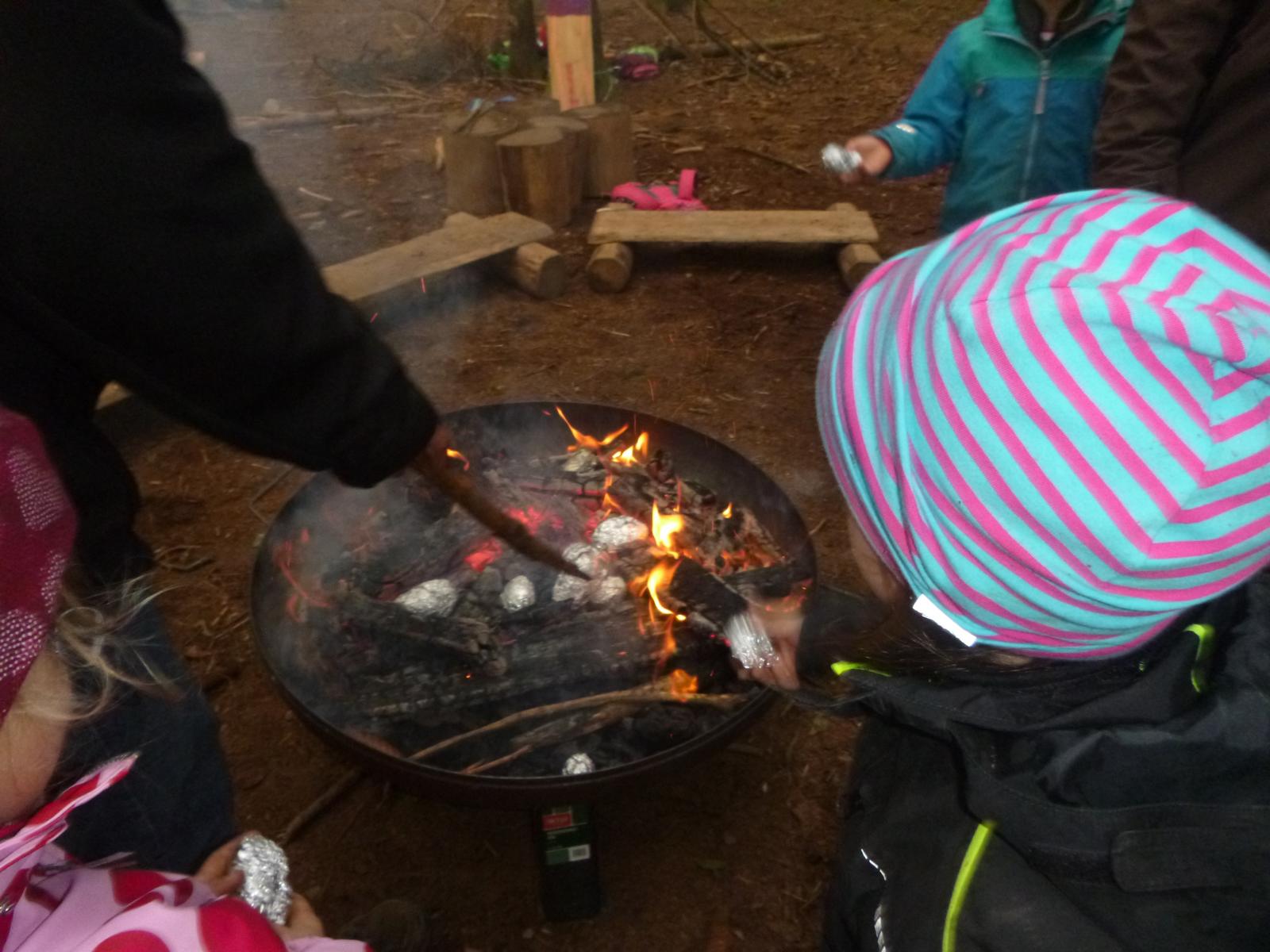 Im anschließenden Kartoffelfeuer durfte sich jeder der fleißigen Gärtner ein paar der geernteten Kartoffeln braten und schließlich – mit ein bisschen Butter verfeinert – verspeisen. Lecker!