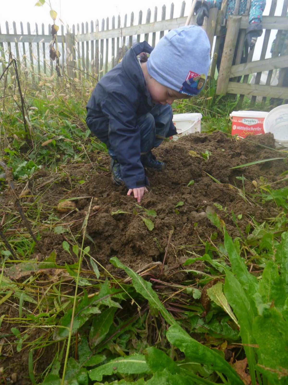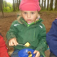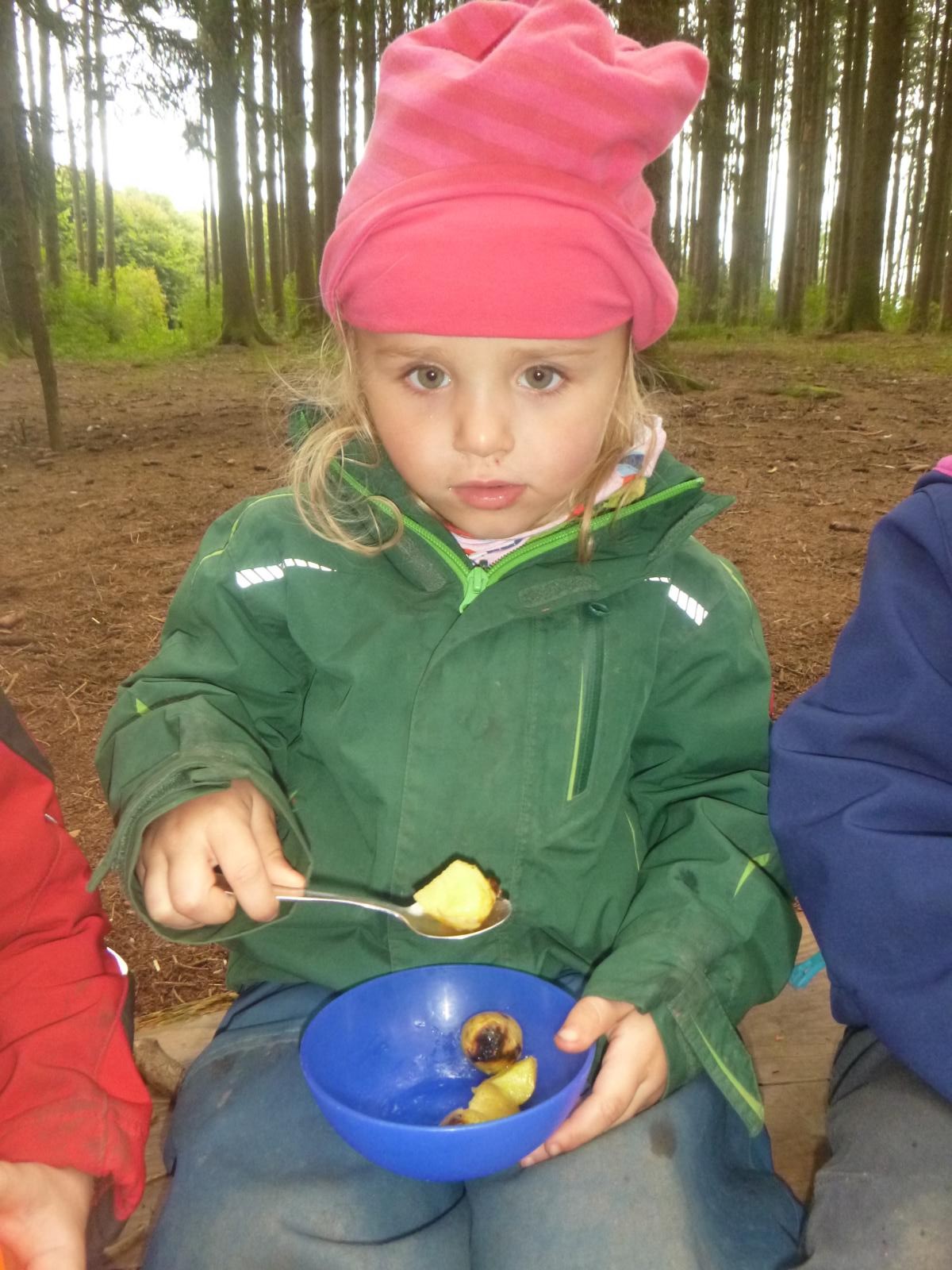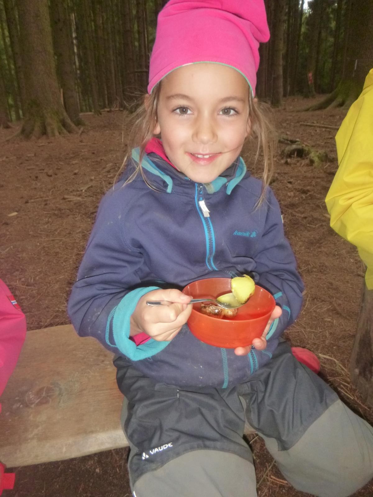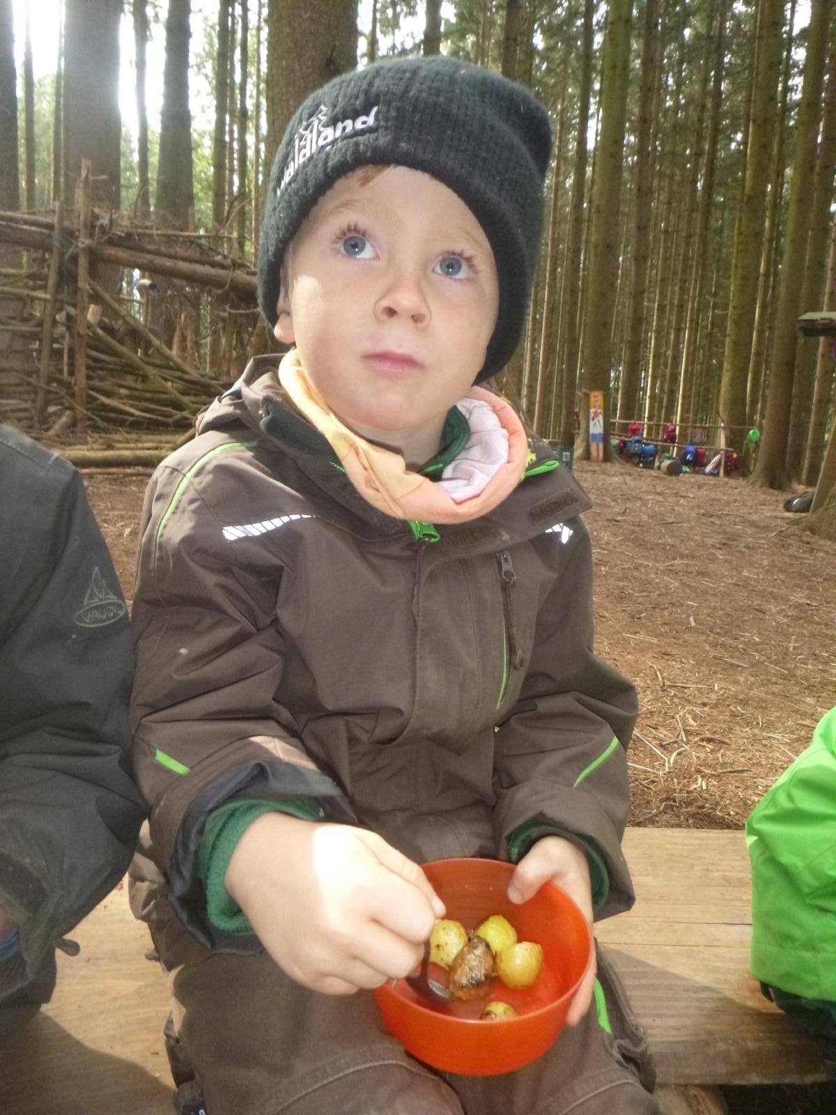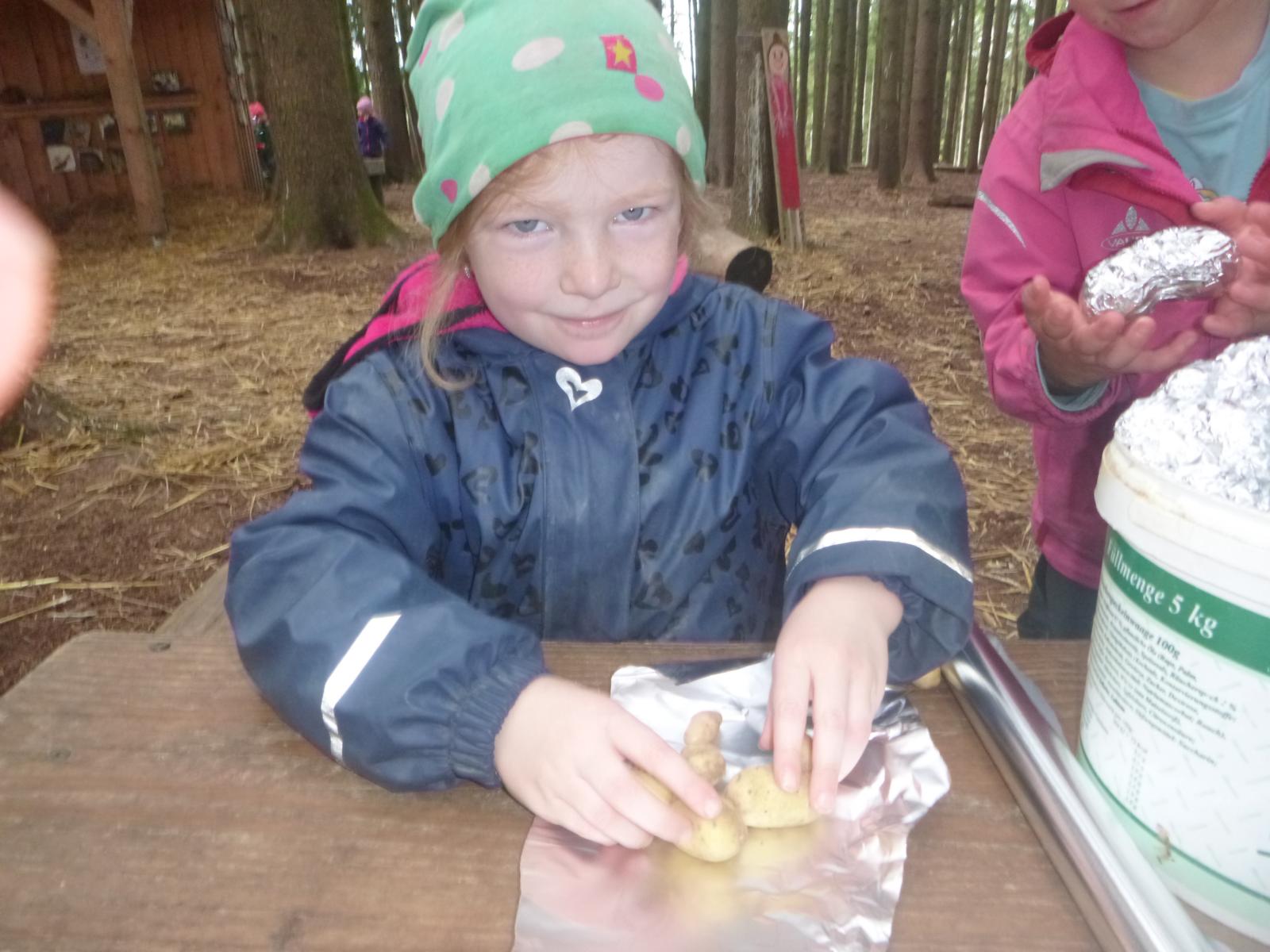 Im kleinen Garten des Waldkindergartens wartete der Kartoffelschatz auf seine Entdeckung. Mit vereinten Kräften wurde er gehoben und die kleinen, gewaschenen Kartoffeln im Anschluss im Kartoffelfeuer gebraten. Ein sehr feiner Herbstgenuss!
