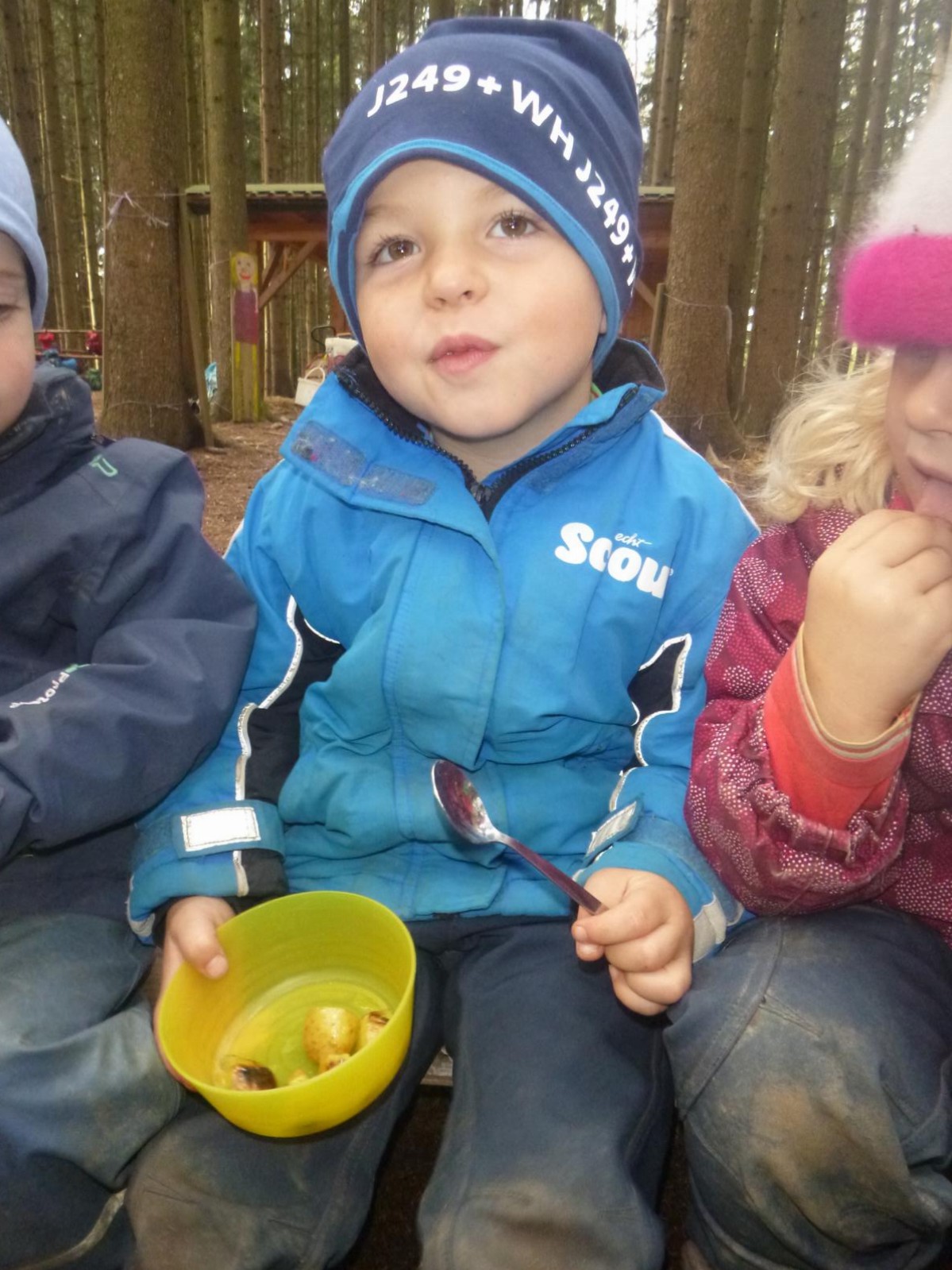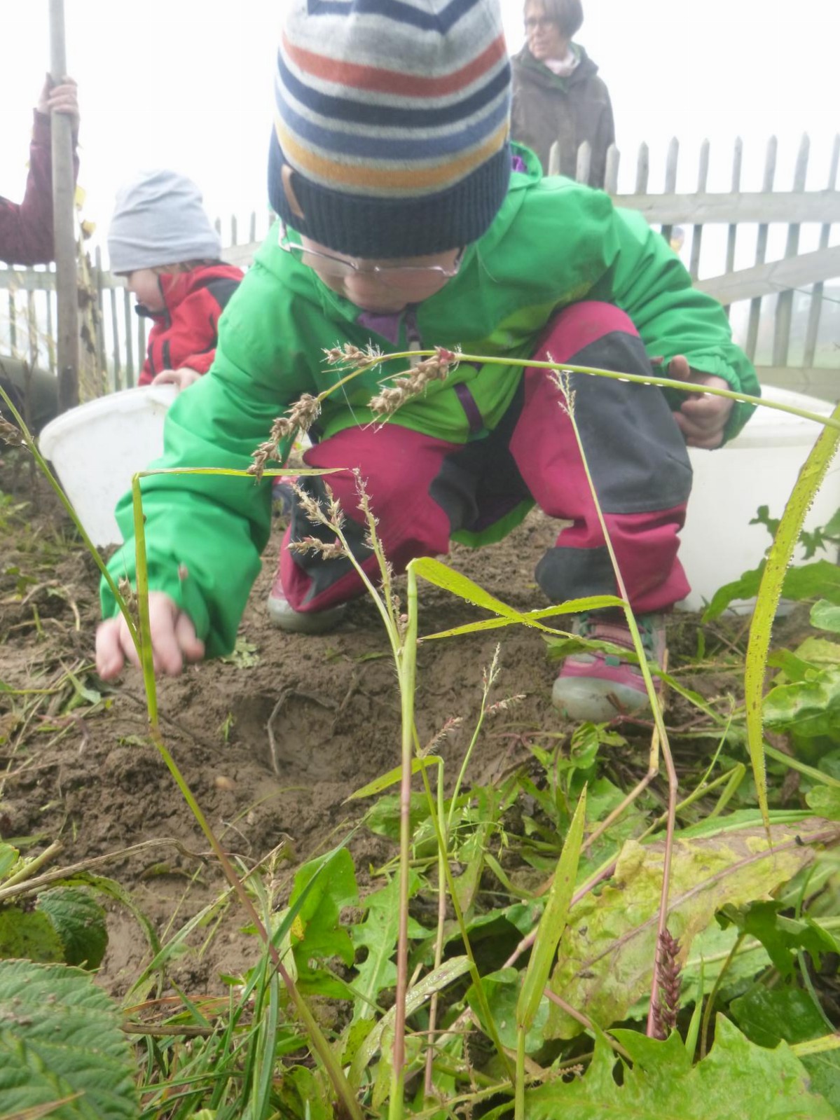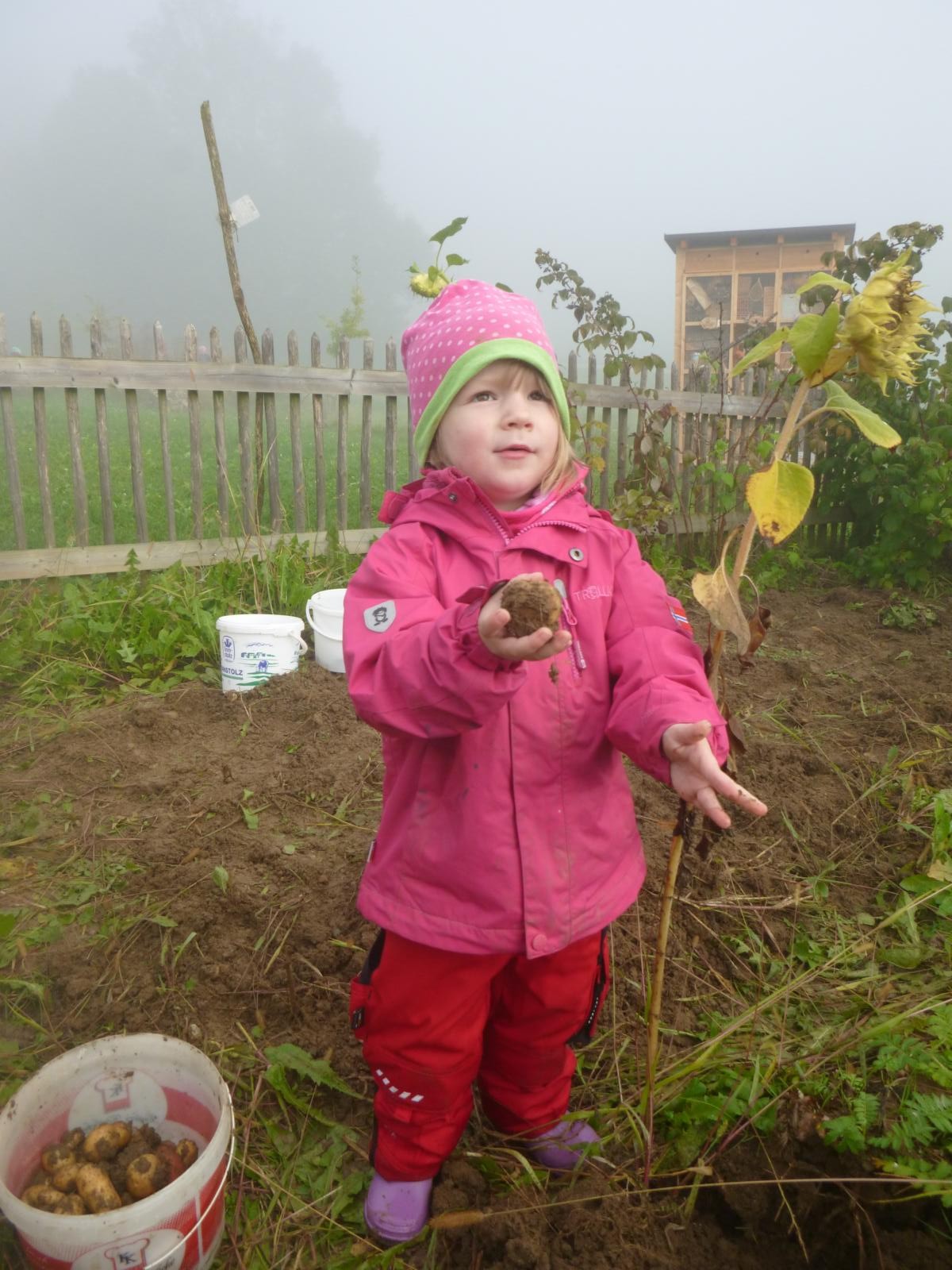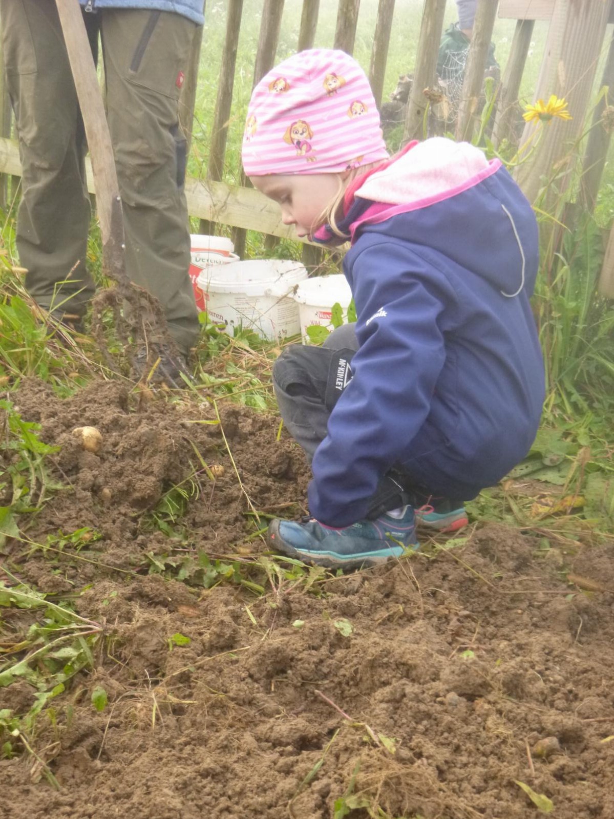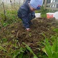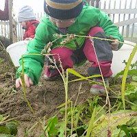 Im kleinen Garten des Waldkindergartens wartete der Kartoffelschatz auf seine Entdeckung. Mit vereinten Kräften wurde er gehoben und die kleinen, gewaschenen Kartoffeln im Anschluss im Kartoffelfeuer gebraten. Ein sehr feiner Herbstgenuss!