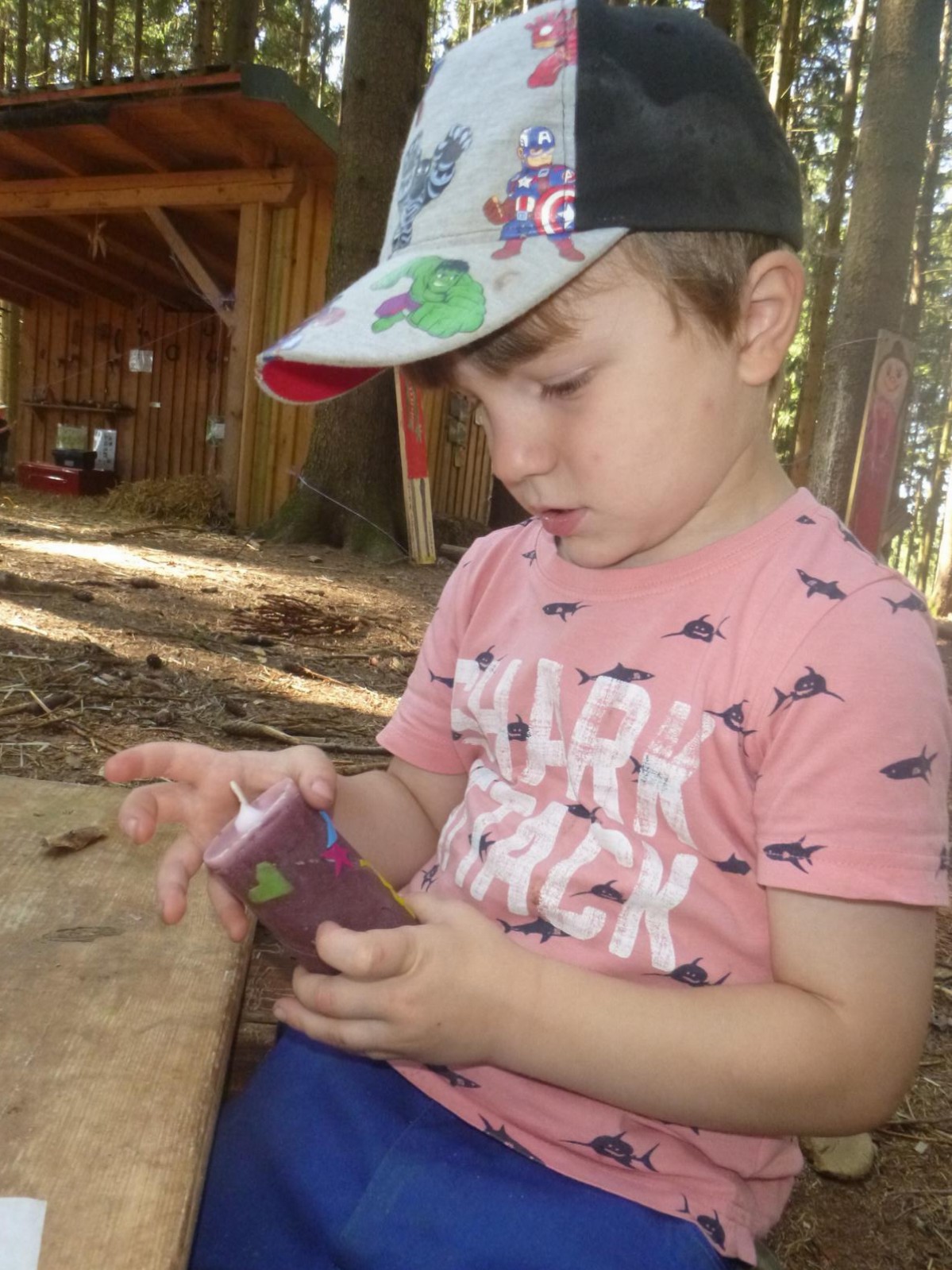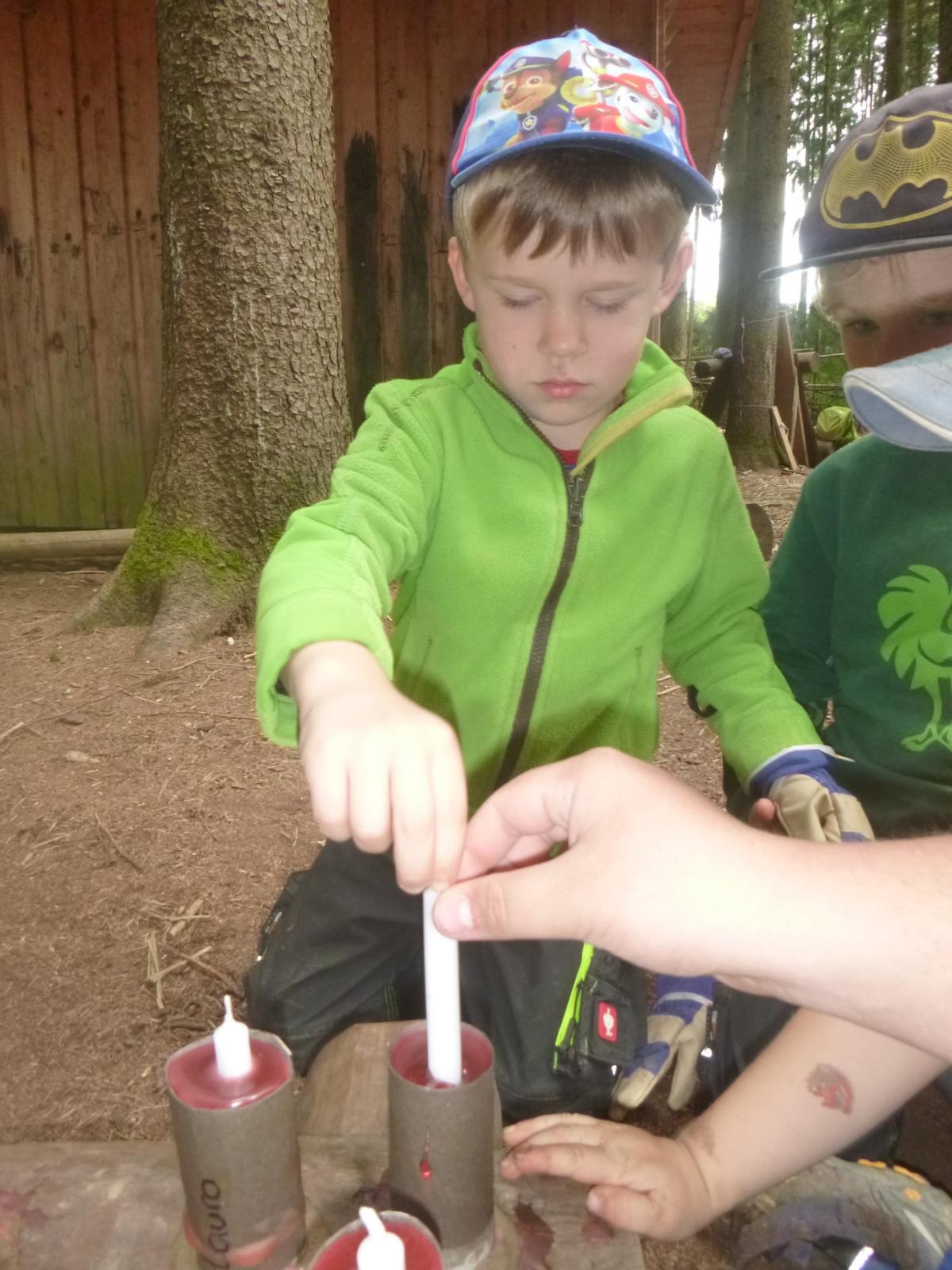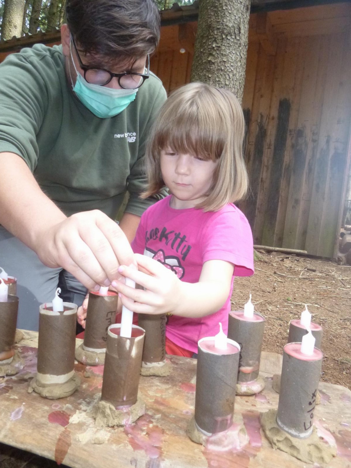 Zu den ersten Aktionen im neuen Kindergartenjahr gehört schon traditionell das Gießen unserer Geburtstagskerzen. Schließlich möchte ja jedes Kind an seinem großen Tag ein eigenes Geburtstagslicht entzünden. Die dafür benötigten Materialien sind schnell zur Hand – Klorollen, Lehm und Wachsreste. Unter dem Motto „Aus alt mach neu“ werden die Kerzenreste eingeschmolzen, das flüssige Wachs sorgsam in die mit Lehm abgedichteten Rollen befüllt und mit einem Kerzendocht versehen. Nach dem Abkühlen und Aushärten „schälen“ die Waldlauser ihre Kerze aus der Umhüllung und verzieren sie mit Wachsplättchen und viel Liebe für’s Detail. Und dann kann der große Tag auch schon kommen und die einzigartige Kerze kann entzündet werden und ins neue Lebensjahr hineinleuchten.