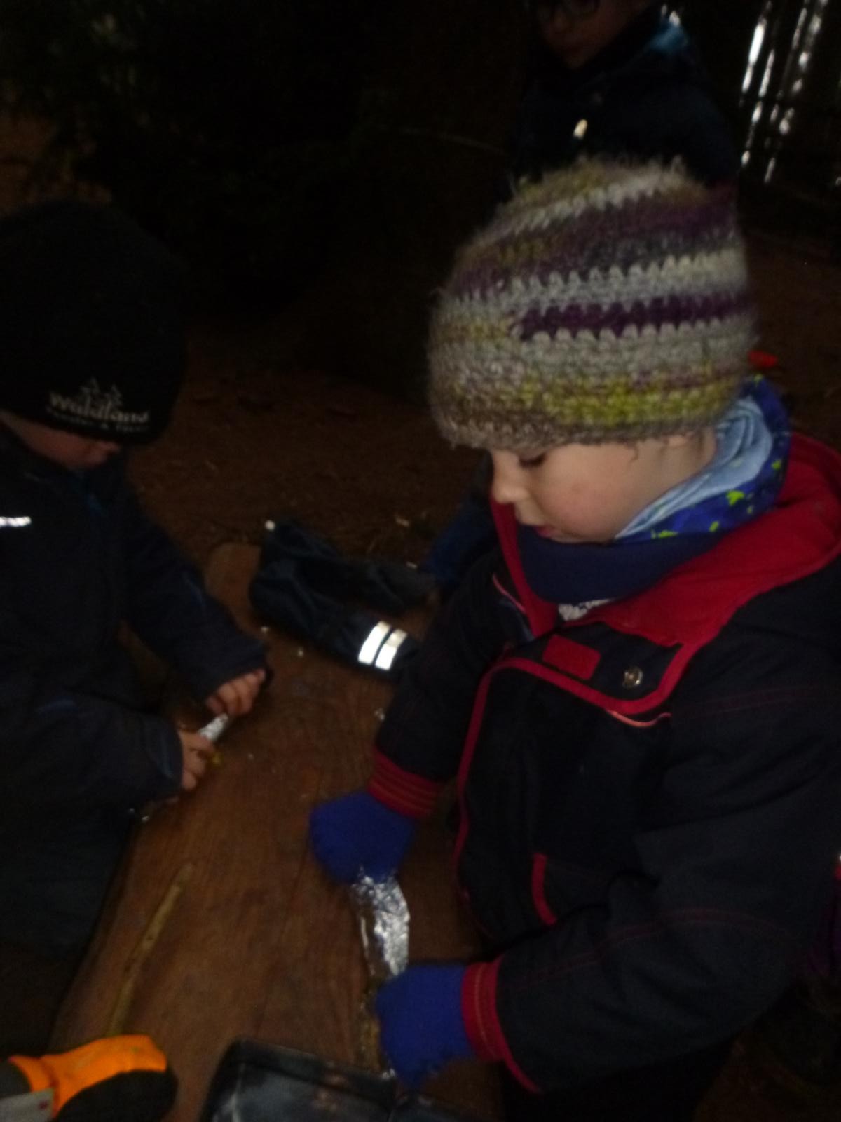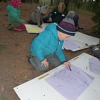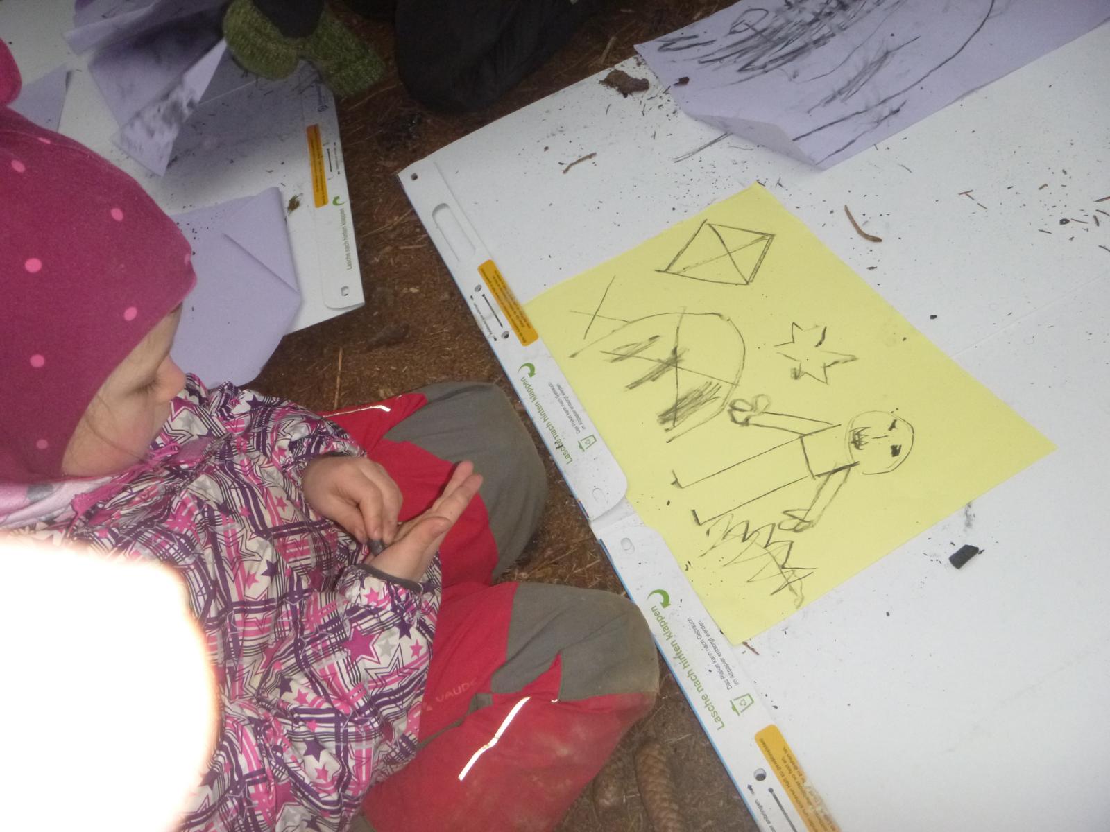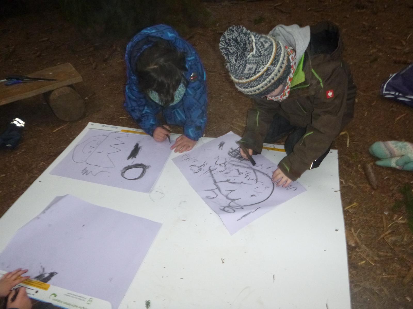 Ein besonderes Malerlebnis stellt das Zeichnen und Gestalten mit Kohlestiften dar. Umsomehr, wenn diese Malutensilien selbst gemacht werden. Da entstehen weiche Striche, durch Verwischen und Reiben wieder neue Effekte und das Gemalte glitzert bei entsprechendem Lichteinfall verheißungsvoll.