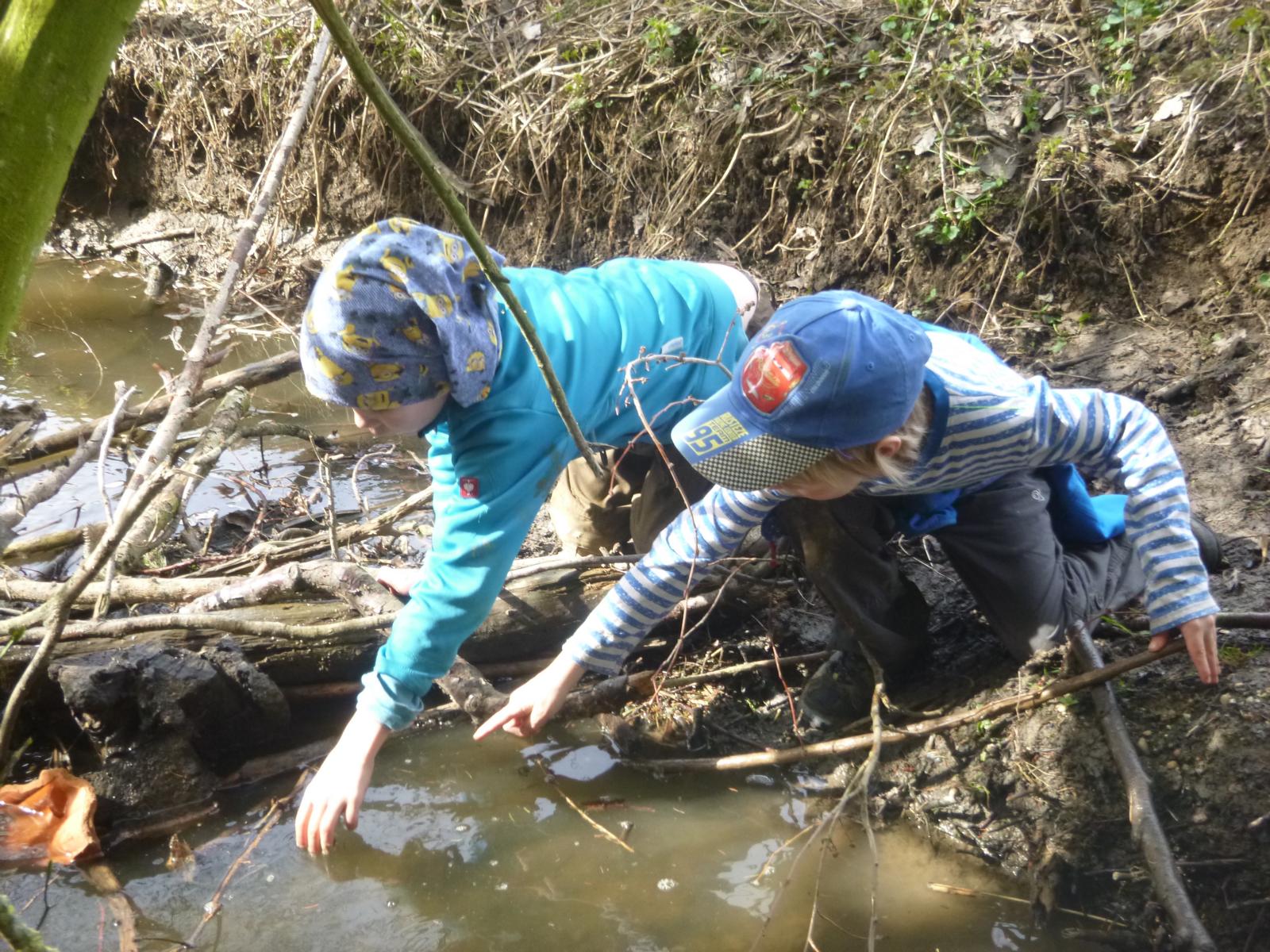 Es ist die Zeit, das Lausbacher Holz wieder neu zu erkunden und Neues zu entdecken: Kleine Flaumfederchen, Gewölle oder einen neu gegrabenen Dachsbau. Oft führen uns unsere Spaziergänge irgendwann zum Lausbach – hier kommen die Konstrukteure, Forscher und Abenteurer noch einmal auf ihre Kosten und das Heimgehen fällt uns schwer.