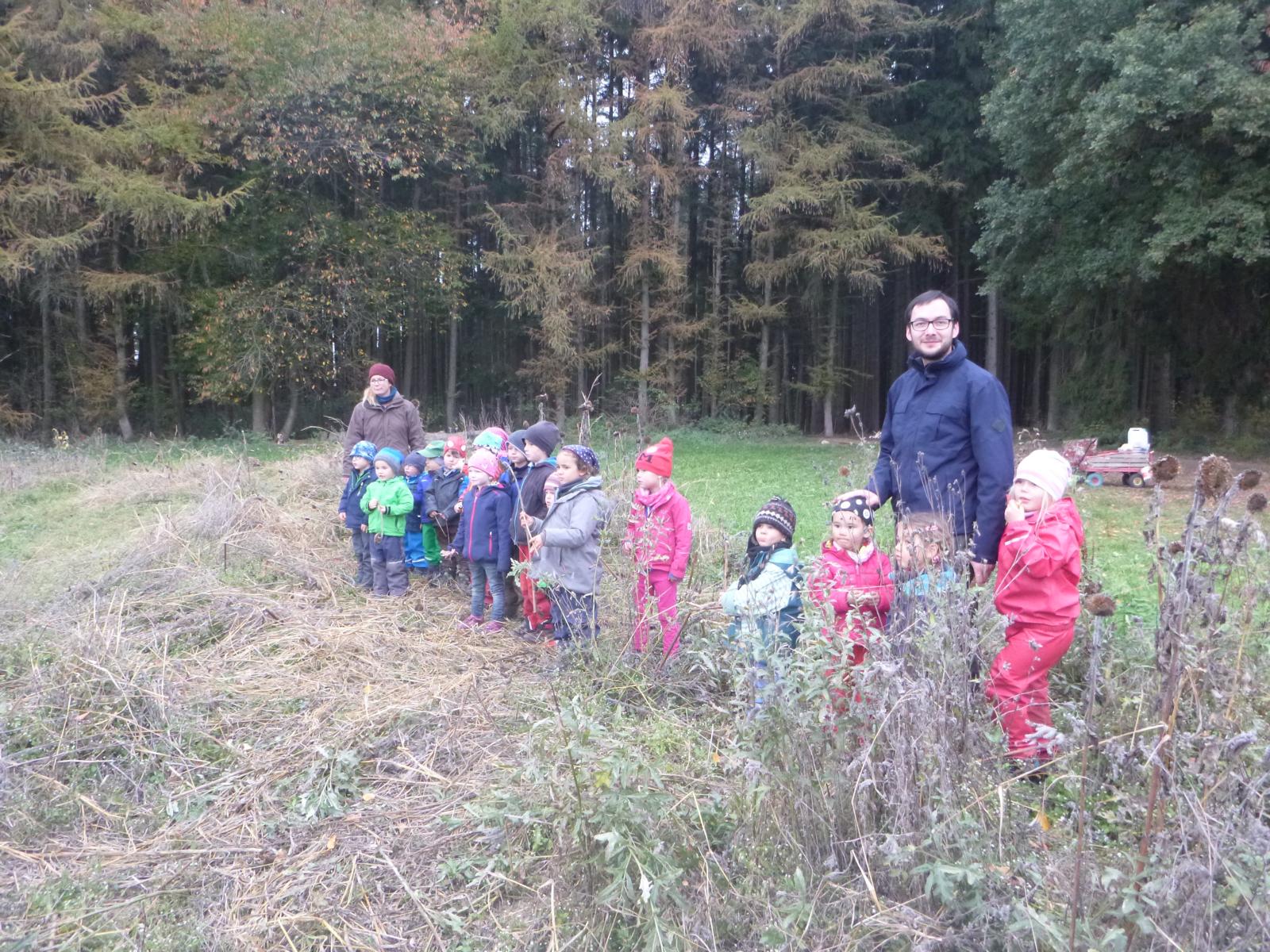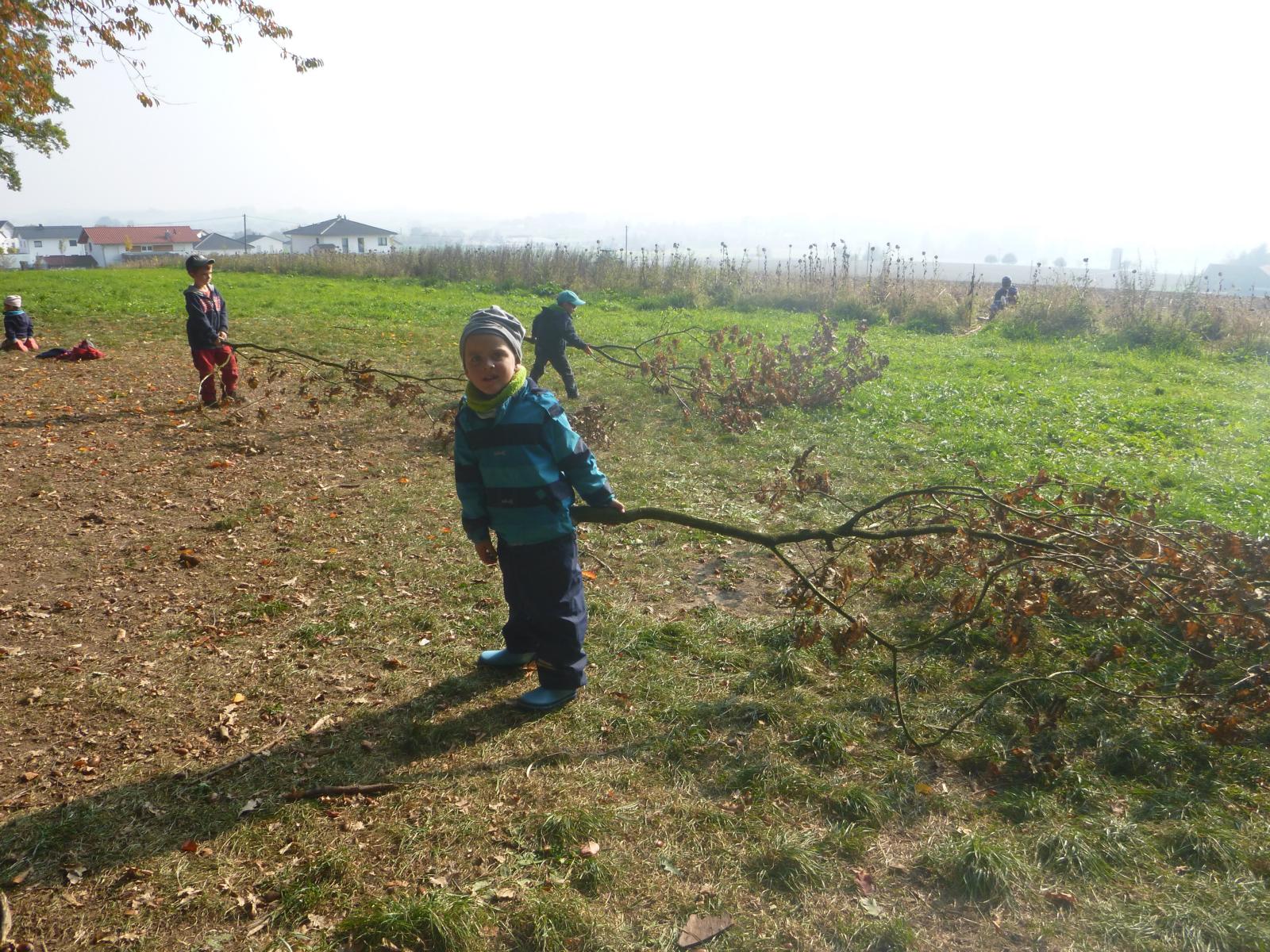Das Getreidefeld am Waldrand war schon lange abgeerntet und die Waldlauser besuchten es hin und wieder zum Spielen und Graben, zum Forschen und Entdecken. Da kommen imaginäre Maschinen zum Einsatz, es wird gebaggert und gebohrt.