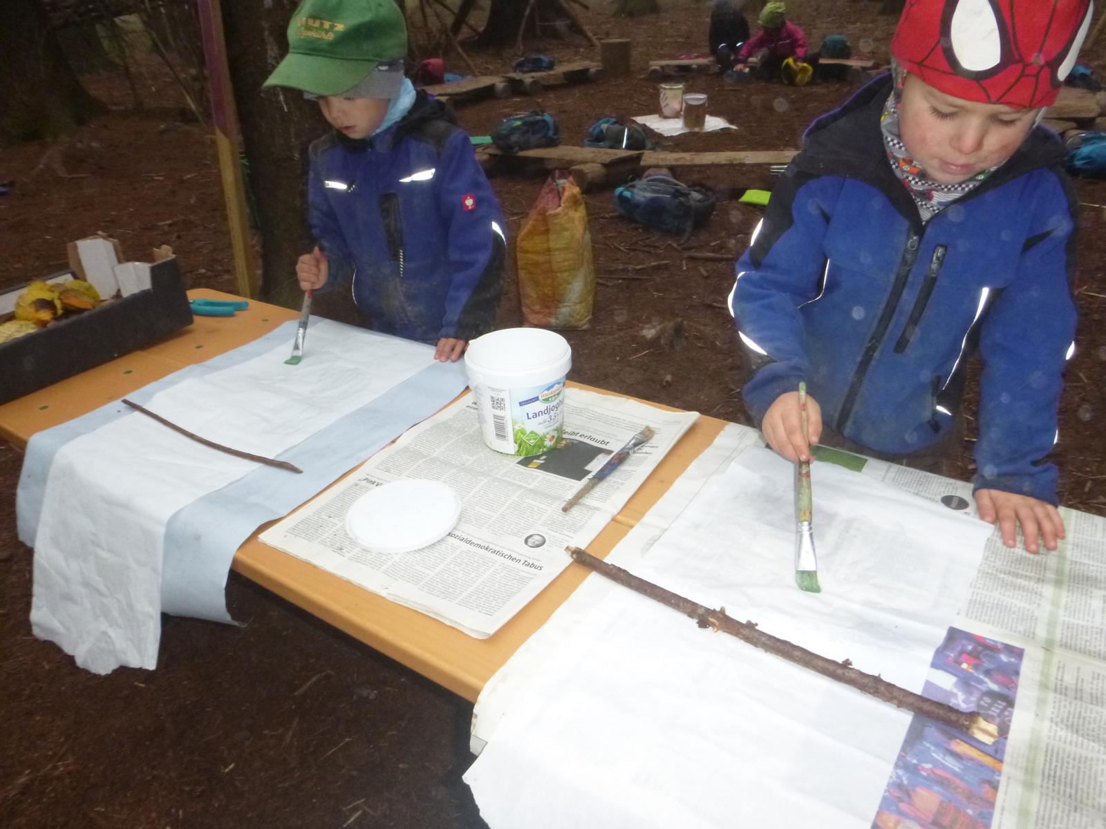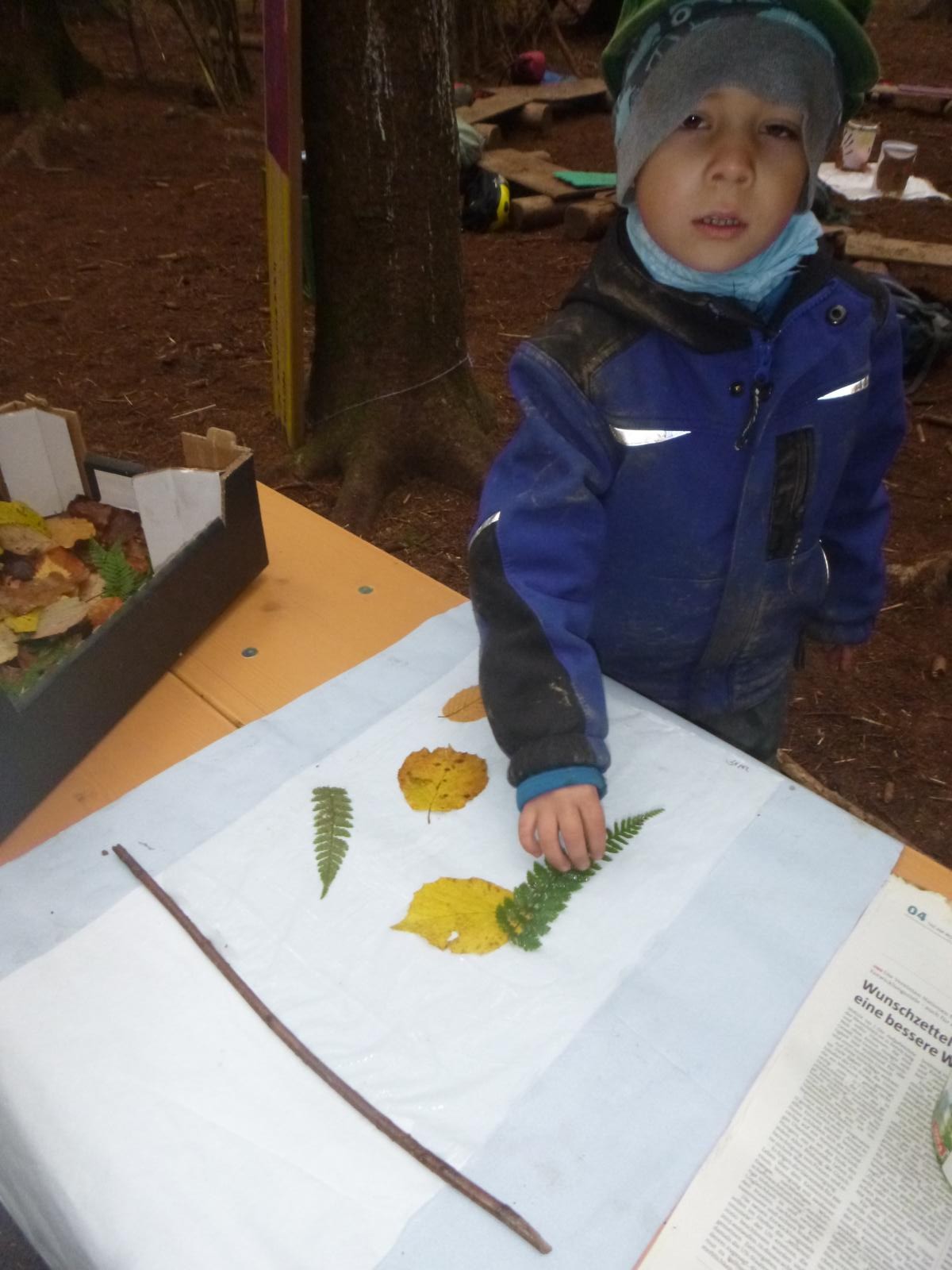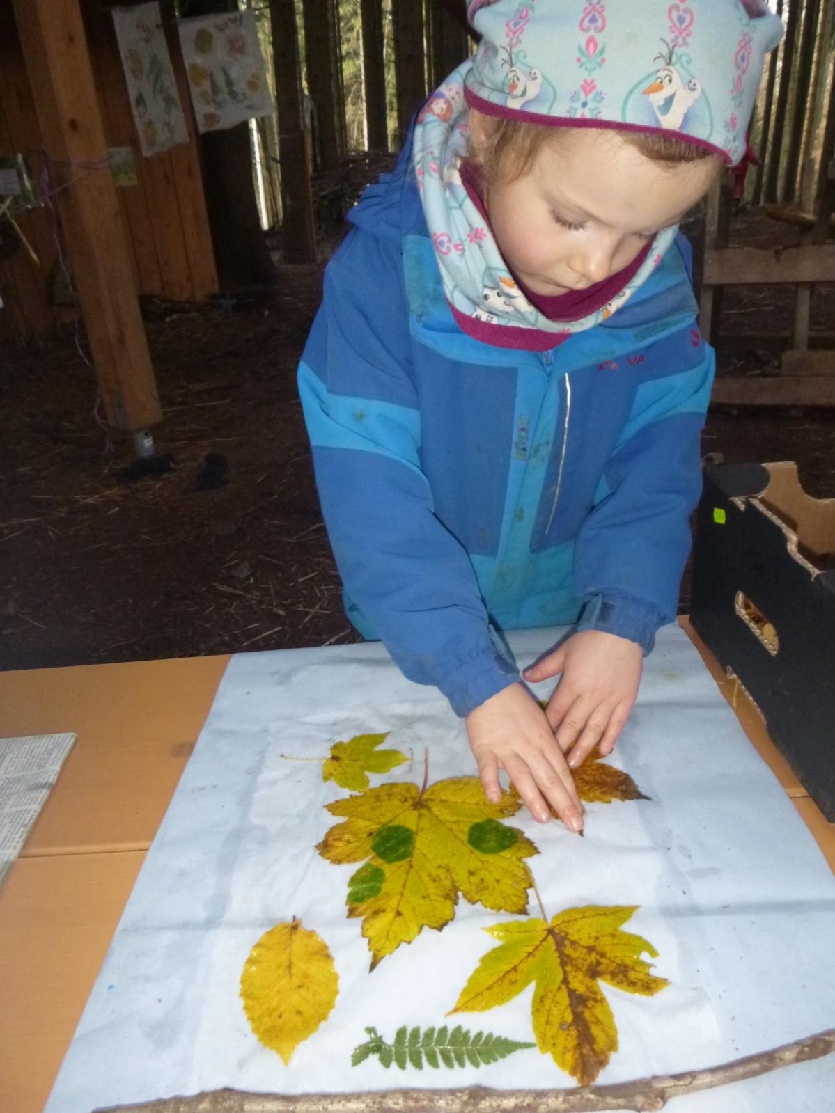 Um ein wenig von der bunten Farbenpracht des Oktobers einzufangen und in die grauen Novembertage hinüber zu retten, bastelten die Kinder bunte Blätterbilder. Zwischen zwei Papierlagen aufgeklebt, leuchten die Blätter daheim am Fenster und erzählen noch lange vom farbenfrohen Herbst.