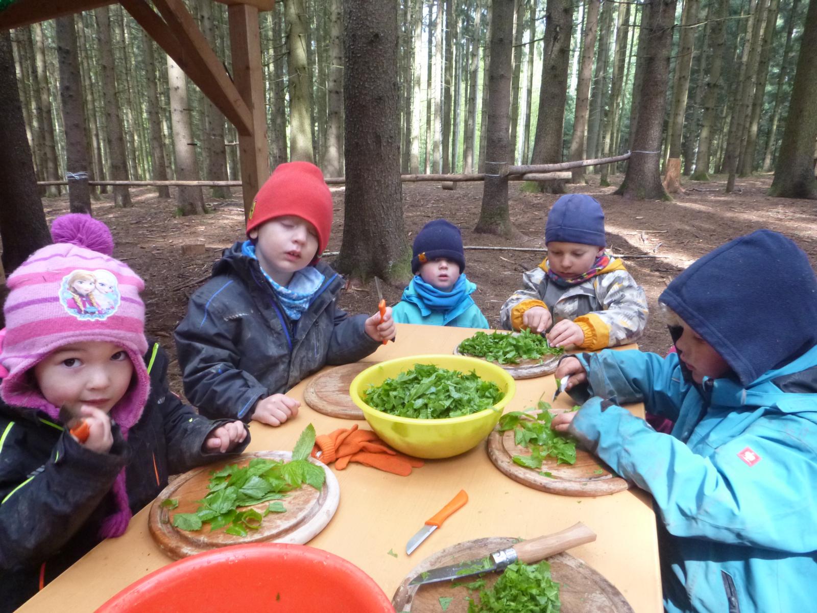 Das leckere Waldbuffet, das die Eltern noch mit Kuchen und Kaffee bestückt hatten, entschädigte dann für die Aufregungen und das Fest fand ein fröhliches Ende!