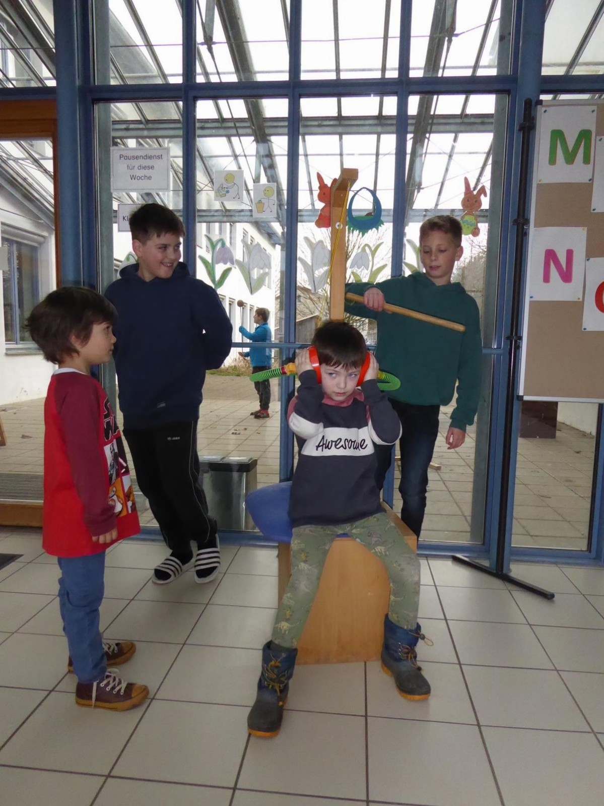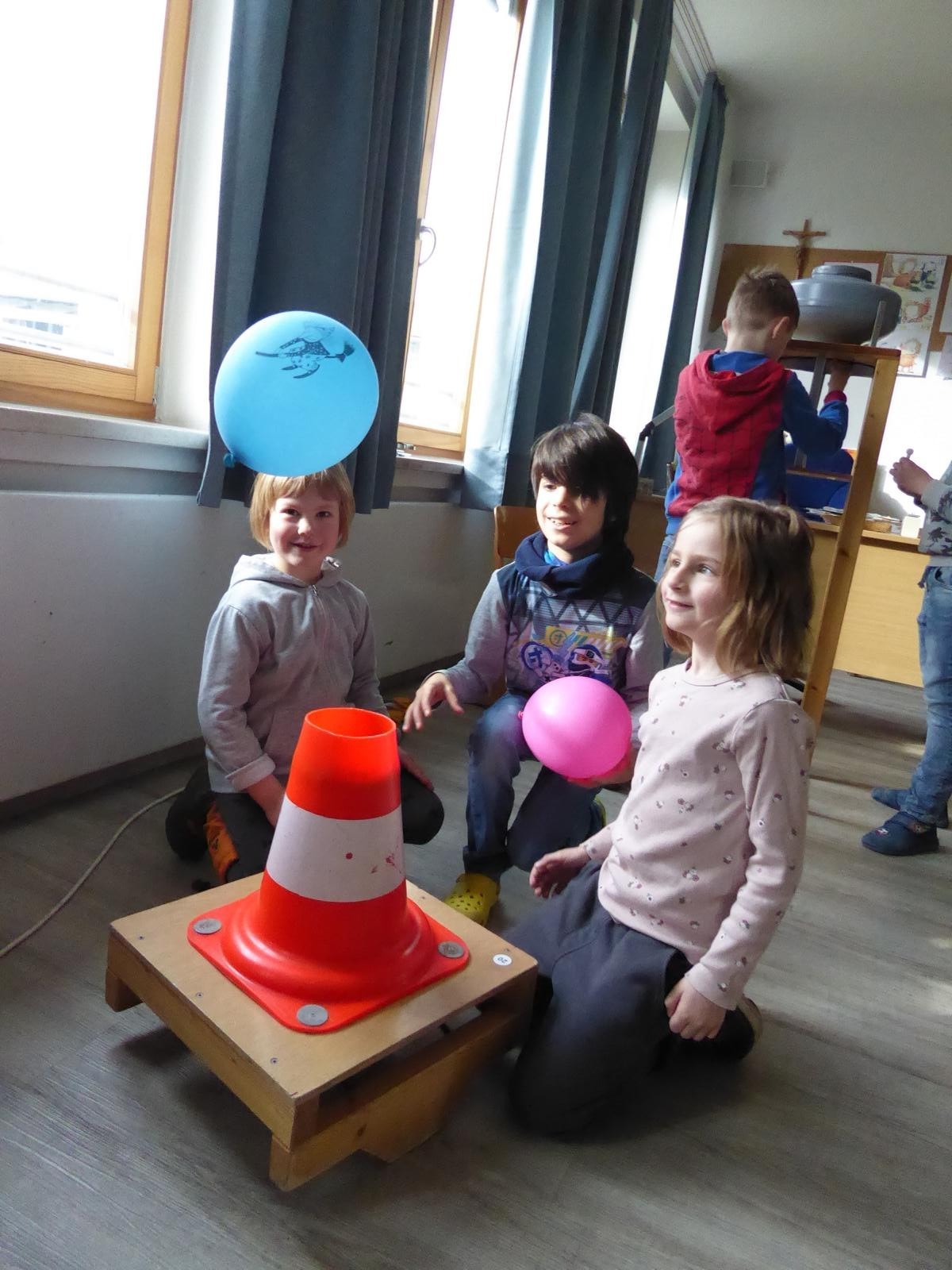 Die Vorschulkinder besuchen die "Miniphänomenta" in der Grundschule Altfraunhofen