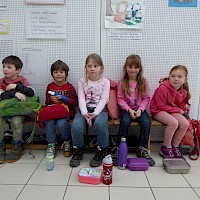 Um 8 Uhr trafen sich alle Vorschulkinder in der Grundschule und dann ging es auch gleich schon los: In Kleingruppen mit 4.Klässlern, experimentierten sich alle langsam durch die vielen Stationen-