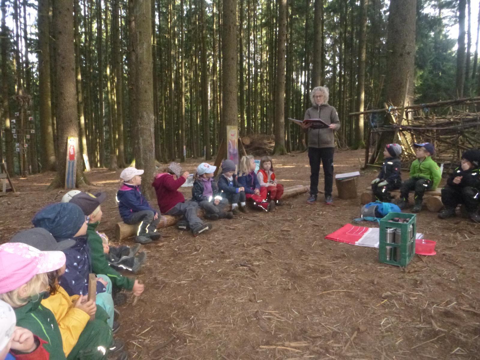 Ein gern gesehener Gast bei den Kindern im Lausbacher Holz ist Christine Tietze von der Altfraunhofener Bücherei. Erwartungsvoll holen die Kinder sie mitsamt ihren gut gefüllten Bücherkisten am Waldrand ab.
