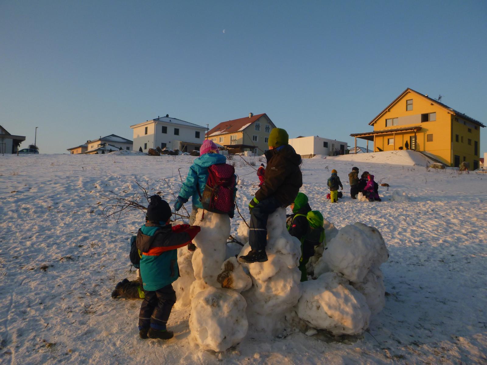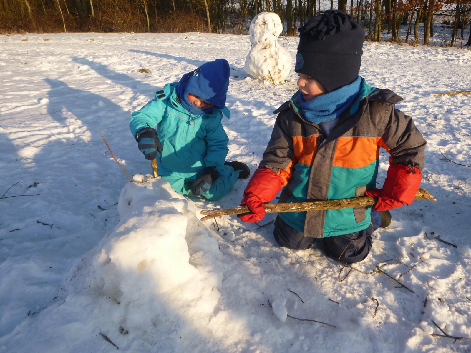 Dick eingemummelt trotzen wir den teils zweistelligen Minusgraden und genießen den Winter in vollen Zügen. Je nach Schneebeschaffenheit wird gebaut, geformt und gegraben. Eiskunstwerke entstehen und in Experimenten befassen wir uns mit den verschiedenen Aggregatzuständen des Wassers. Zum Frieren und Frösteln haben wir gar keine Zeit - hinter der nächsten Schneewehe gibt es schon wieder etwas Neues zu entdecken.