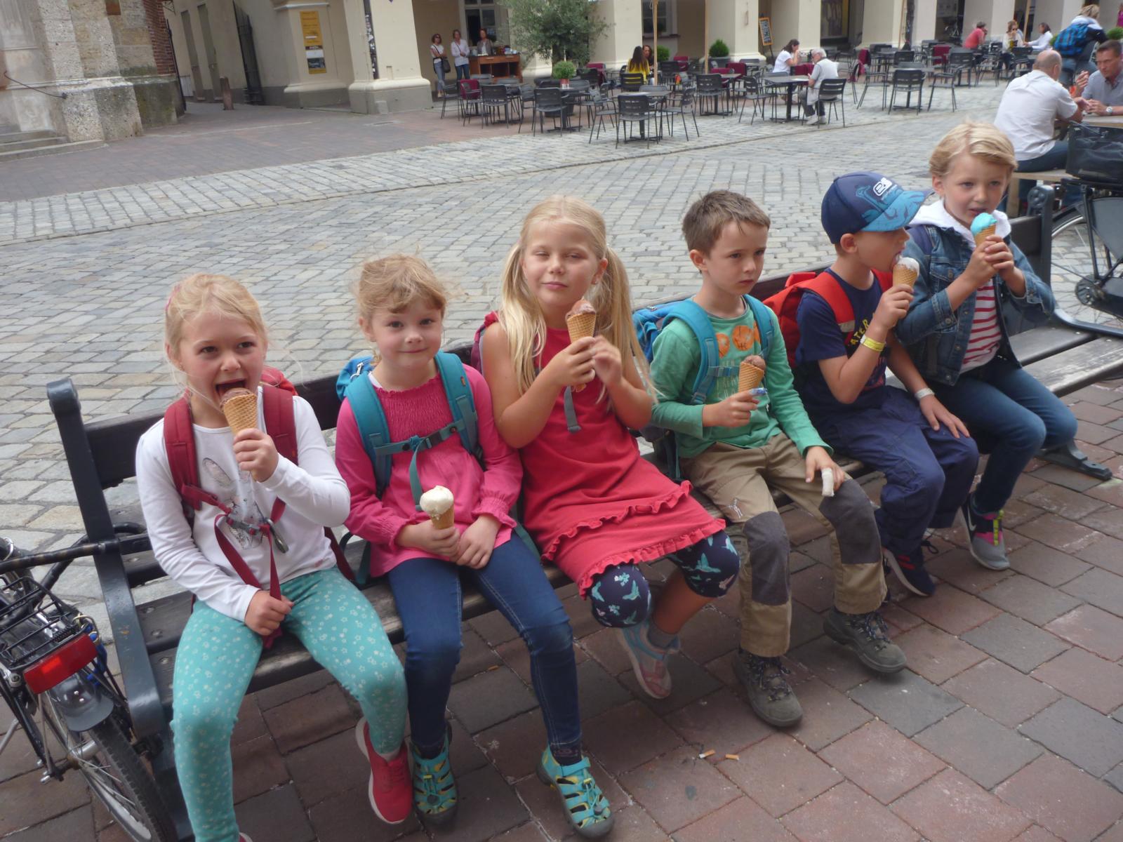Schultütenbasteln, Übernachten am Häusl, Selbstbildnisse malen uvm. - bei den künftigen Schulkindern kommt in den letzten Sommerwochen keine Langeweile auf. Natürlich darf auch der traditionelle Ausflug nach Landshut und zur Burg Trausnitz nicht fehlen. Mit dem Bahnbus ging’s nach Landshut, die Martinskirche wurde besucht und vor dem Aufstieg über’s Ochsenklavier stärkten sich alle noch mit einem leckeren Eis.