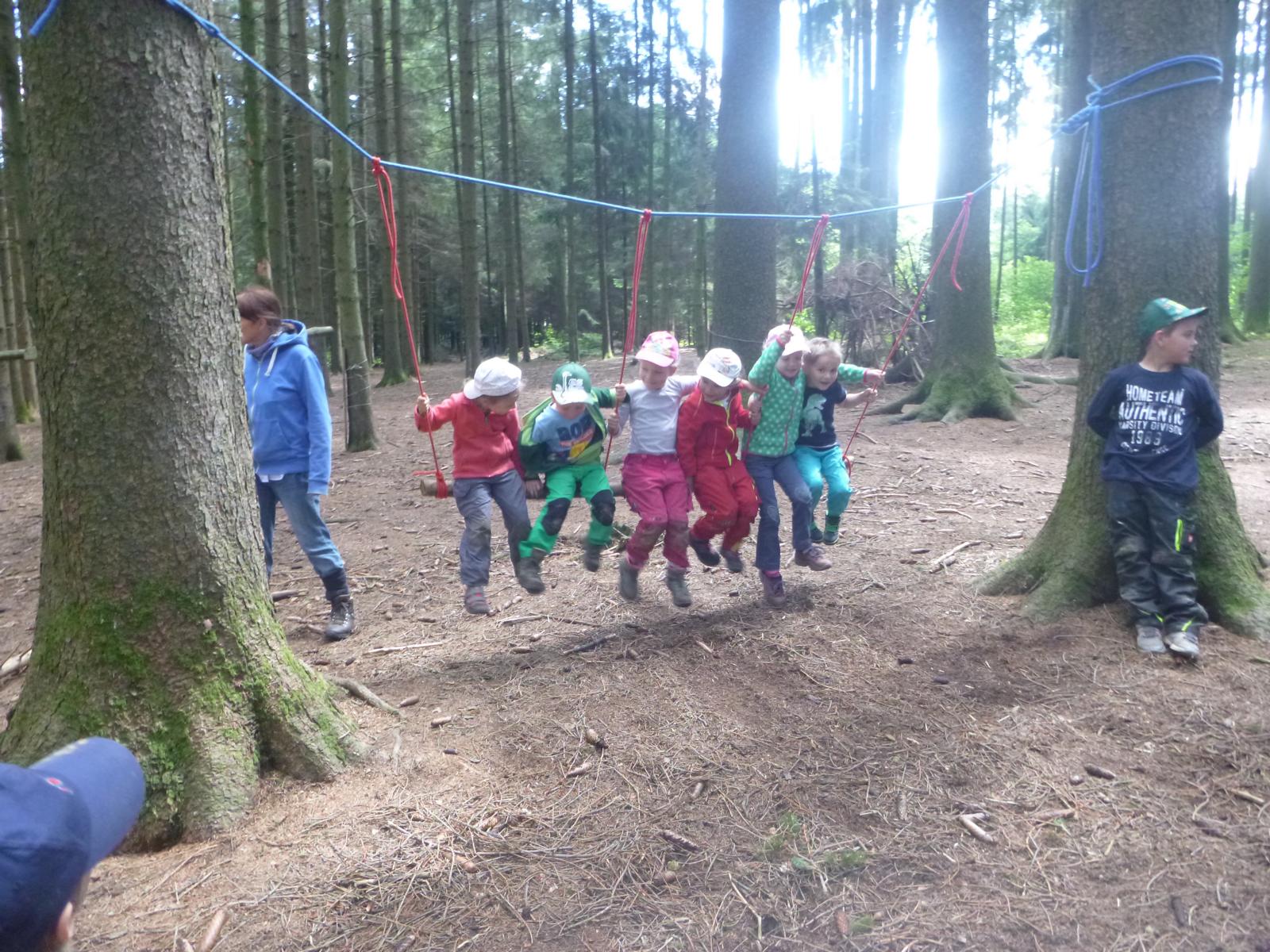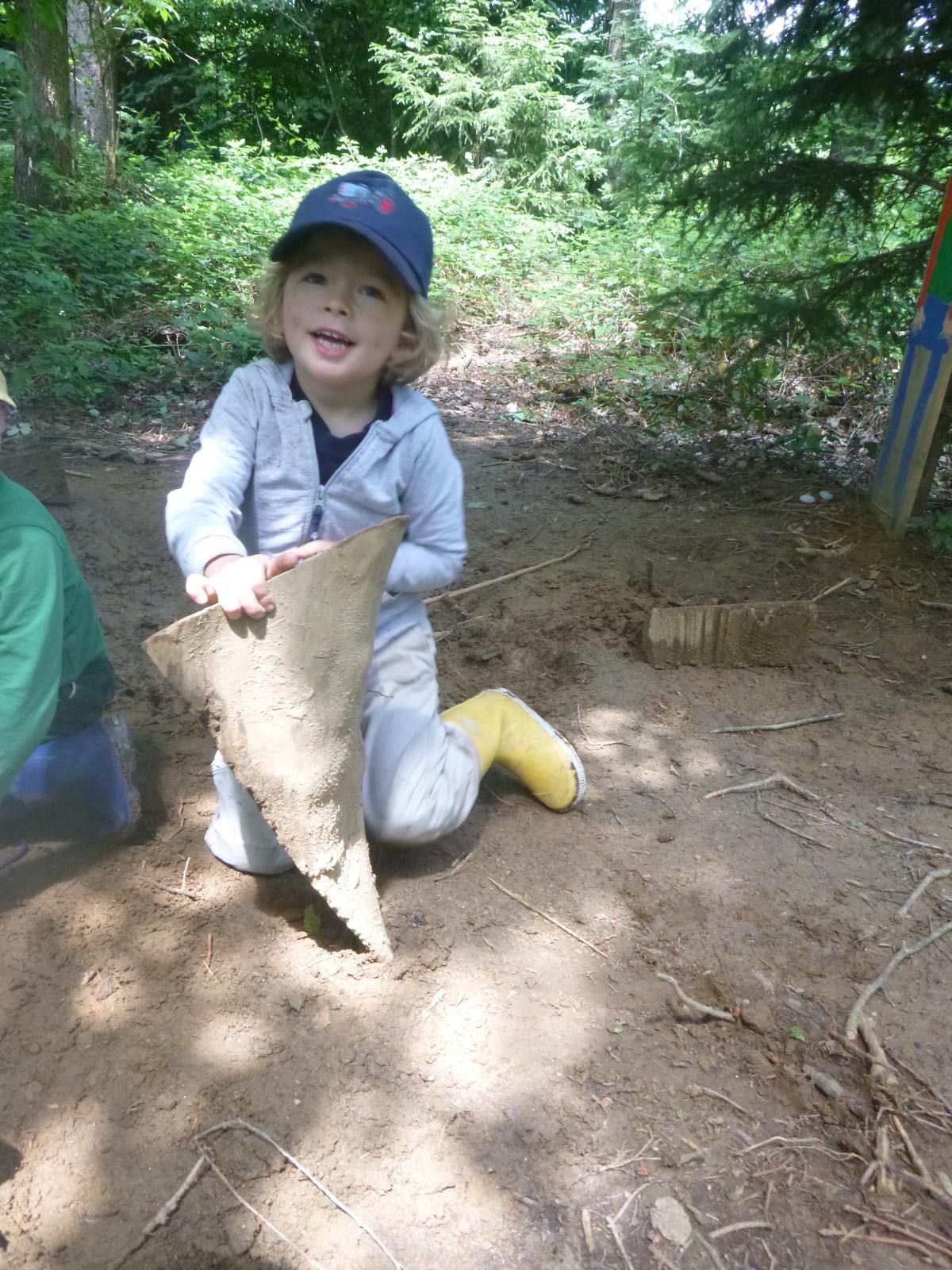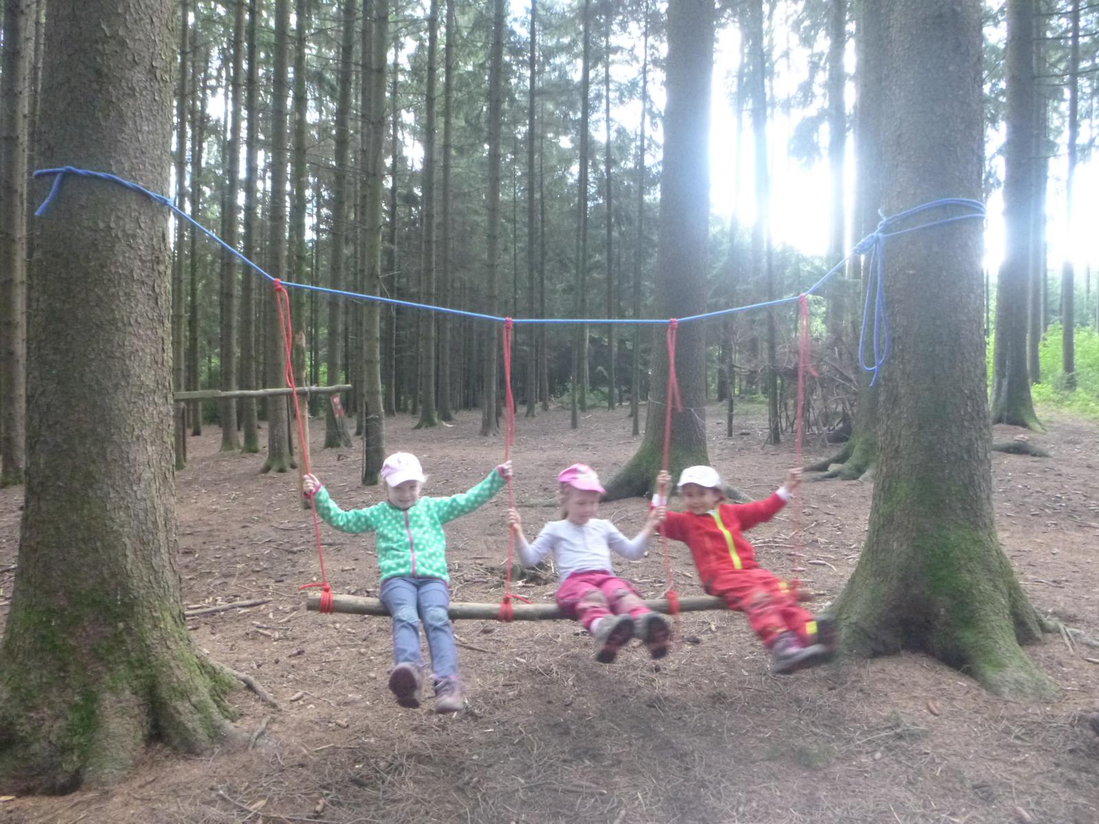Die letzten Tage des Kindergartenjahres sind von Leichtigkeit und Ferienvorfreude geprägt. Jetzt ist noch mal Zeit für ausgiebiges Spielen, es wird viel gemalt und gegraben, die temporären Schaukeln zwischen den Bäumen laden ein und ein Besuch am und im Bach gehört auch noch dazu. Während draußen die große Sommerhitze brütet, ist es im Wald angenehm temperiert. So kann man es gut aushalten.