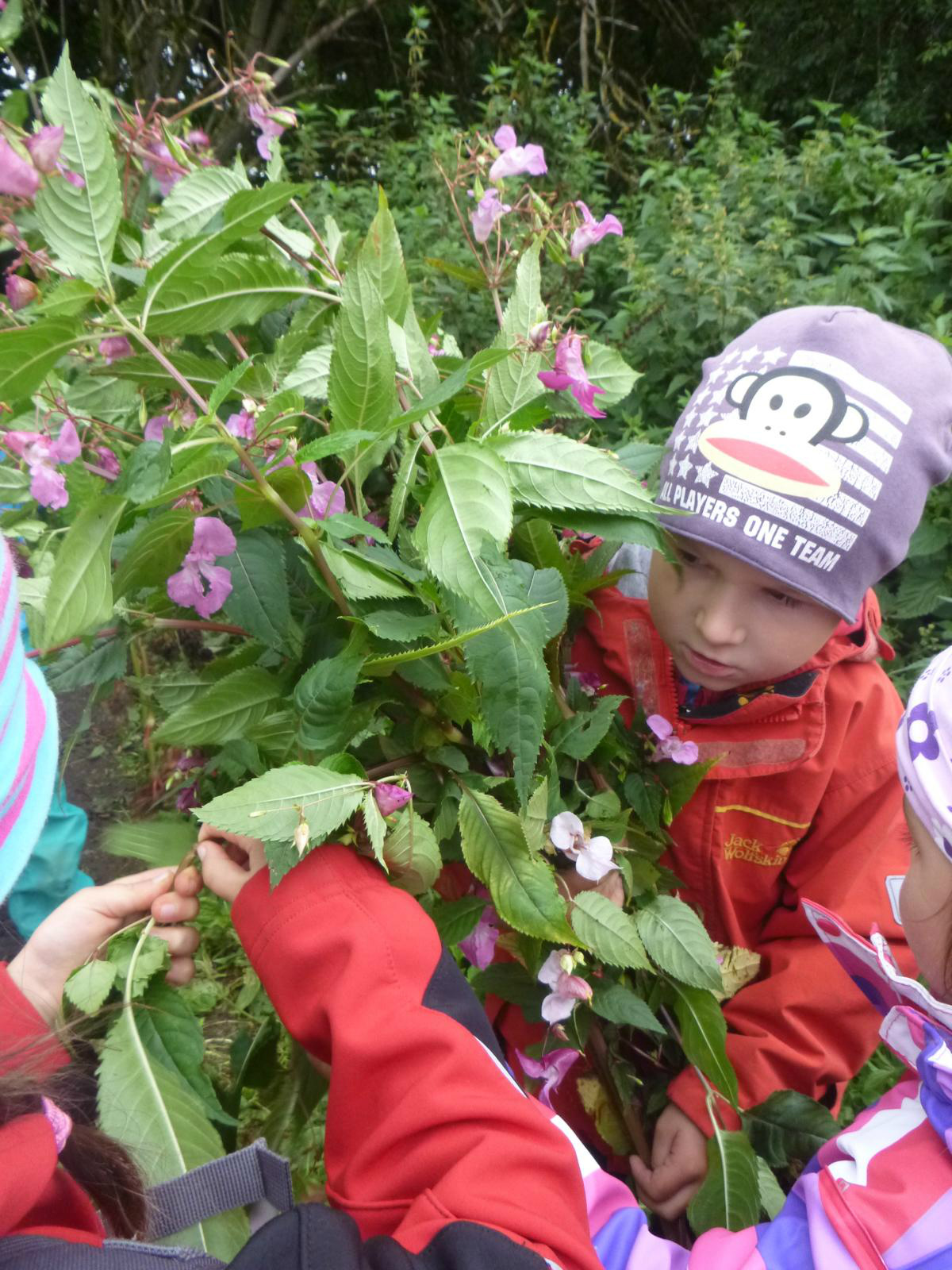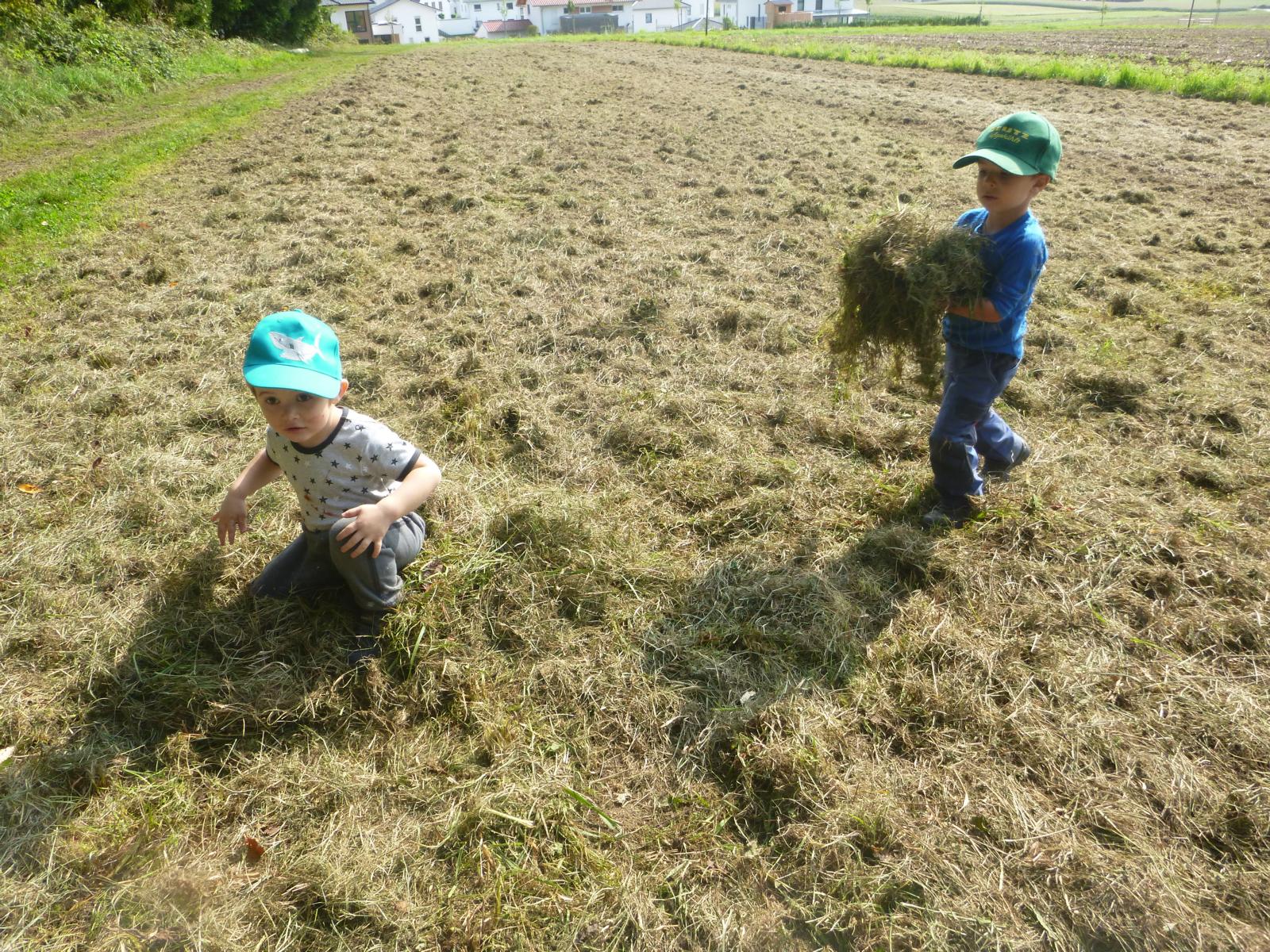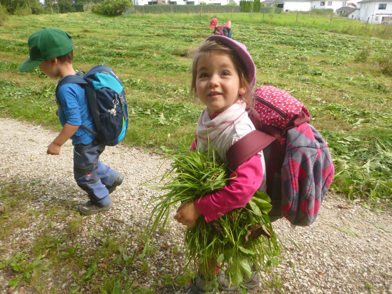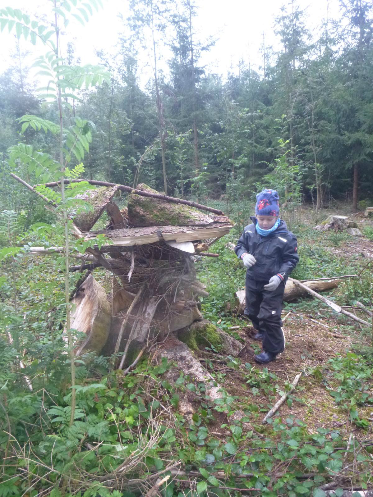 Die vielfältigen Naturmaterialien laden jeden Tag wieder auf’s Neue zum Spielen und Bauen ein. Stöcke haben vielfältige Funktionen – werden als Baumaterial für große und kleine Bauwerke benötigt, zum Graben im sandigen Boden, dienen als Pferd oder Fernrohr. Besonders gerne wird gekocht und gebacken und Gäste werden im Waldrestaurant mit Springkrautpizza, Zapfenwürsteln vom Grill, Geburtstagssandtorte oder Waldsuppe bedient.