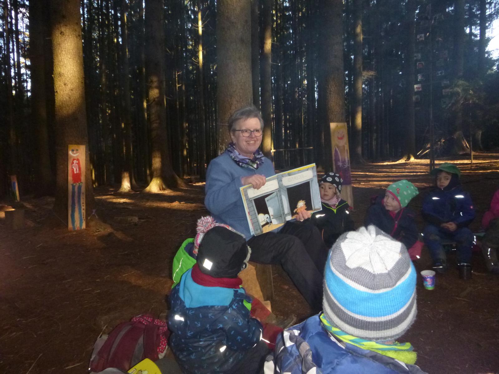 Und so freuten sich die Waldlauser besonders, an diesem Tag noch ein paar Geschichten extra erzählt zu bekommen. Im Rahmen des bundesweiten Vorlesetages hatte sich der Waldkindergarten die Bürgermeisterin als Vorlesepatin eingeladen, die gerne einmal ihre Amtsstube mit dem Wald vertauschte. Im Gepäck hatte sie das Bilderbuch „Irgendwie Anders“ und als Dreingabe noch das Märchen der Gebrüder Grimm von den Sterntalern.