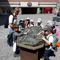 Ein kurzer Besuch der bronzenen "Stadtkarte" zeigte uns den Weg zur Martinskirche. "Mmmh...irgendwo muss doch noch eine Kanonenkugel in der Kirche stecken, aber wo?" Nach einer Weile haben wir sie dann endlich gefunden. Ganz leise und flüsternd gingen wir einmal durch die Martinskirche und waren überrascht, wie hoch sie ist.