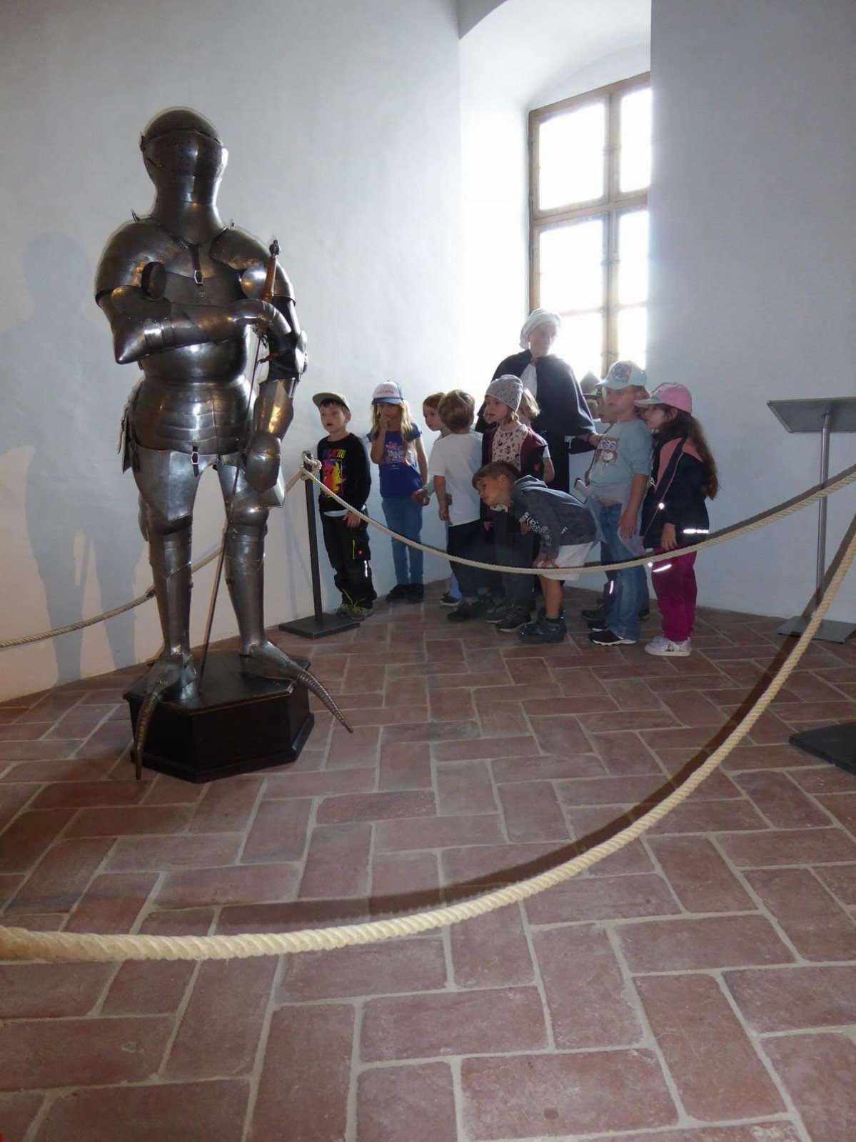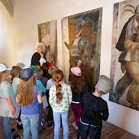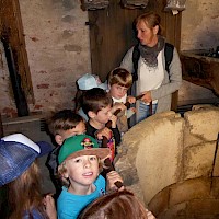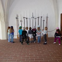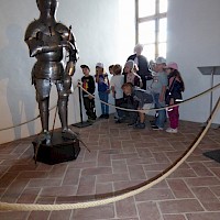 Frisch gestärkt startete um 16:30 Uhr die Führung. Wir hörten viele Sagen, zum Beispiel über Florian von Lorch, dem Schutzpatron der Feuerwehr und von Georg dem Heiligen. Wir schauten uns die "Folterkammer" an und hörten was man früher so mit den "Streithammeln" und Lügnern gemacht hatte. "Gut, dass wir uns nie streiten oder lügen!!!"
