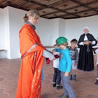 Zum Schluss lernten wir die "echte" Herzogin Dana kennen, die uns ein ganz leckeres Traubenzucker schenkte, aber erst nachdem der Vorkoster Nadine dem zugestimmt hatte.