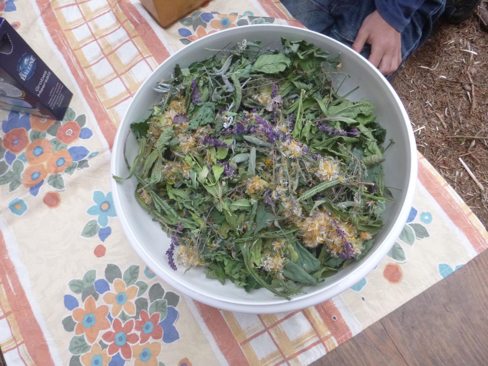 Im Frühling wanderten die würzigen Kräuter aus Wald und Wiese als Frühlingskräutersuppe in den Suppentopf und waren schnell verspeist. Nun wollten die Waldlauser etwas länger davon haben, und beschlossen, den Eltern selbstgemachtes Kräutersalz zum Geschenk zu machen. Elf verschiedene Kräuter wurden gesammelt und zum Trocknen im Häusl ausgebreitet. Die raschelnden, getrockneten Blätter verströmten bald ihr würziges Aroma und wurden schließlich mit grobem Meersalz in der Kaffeemühle per Hand vermahlen. In Gläser gefüllt und mit einem Brief auf selbstgeschöpften Papier versehen, konnten die Waldlauser schließlich ihr kleines Geschenk den Eltern beim Familienpicknick überreichen.