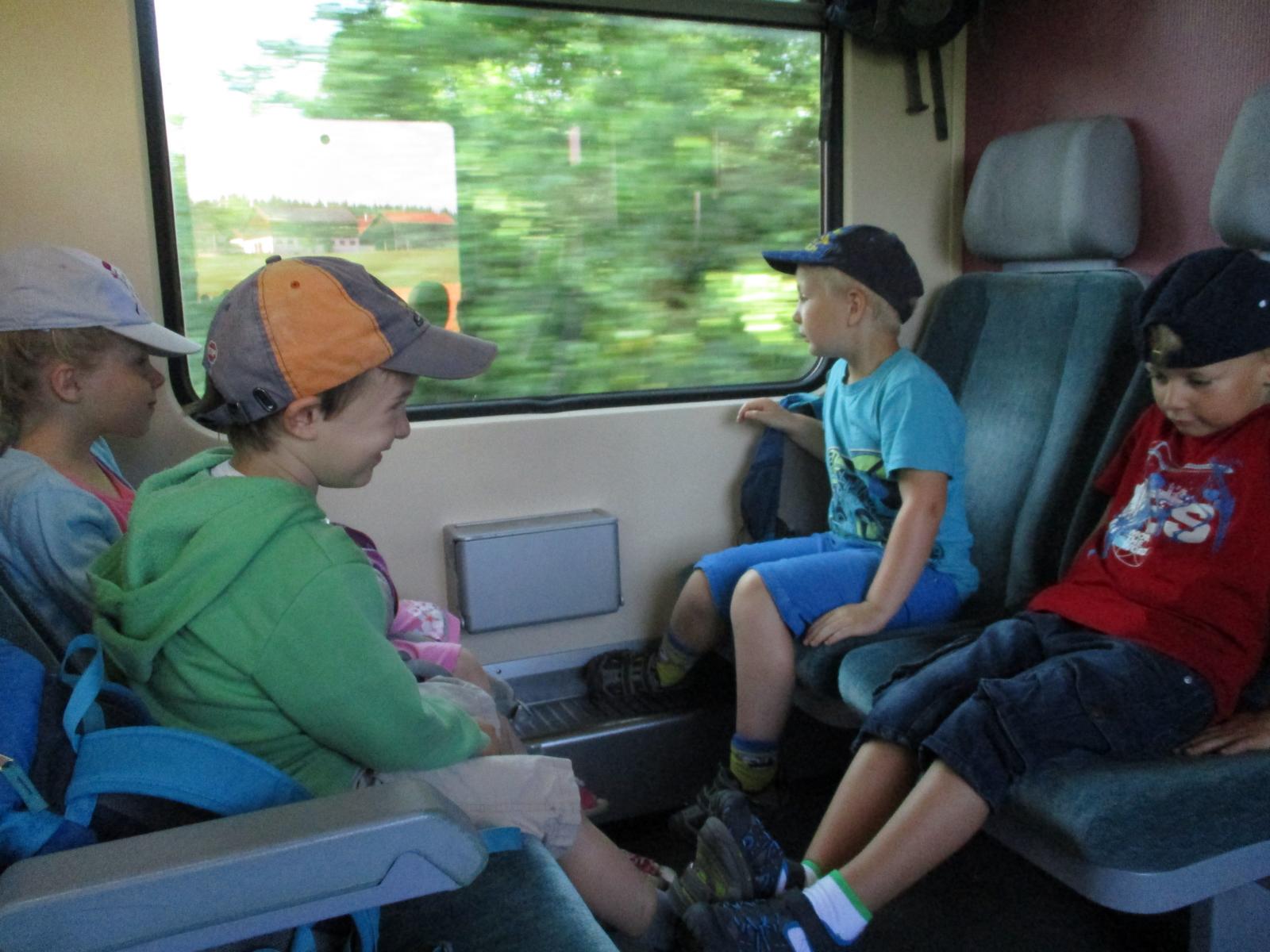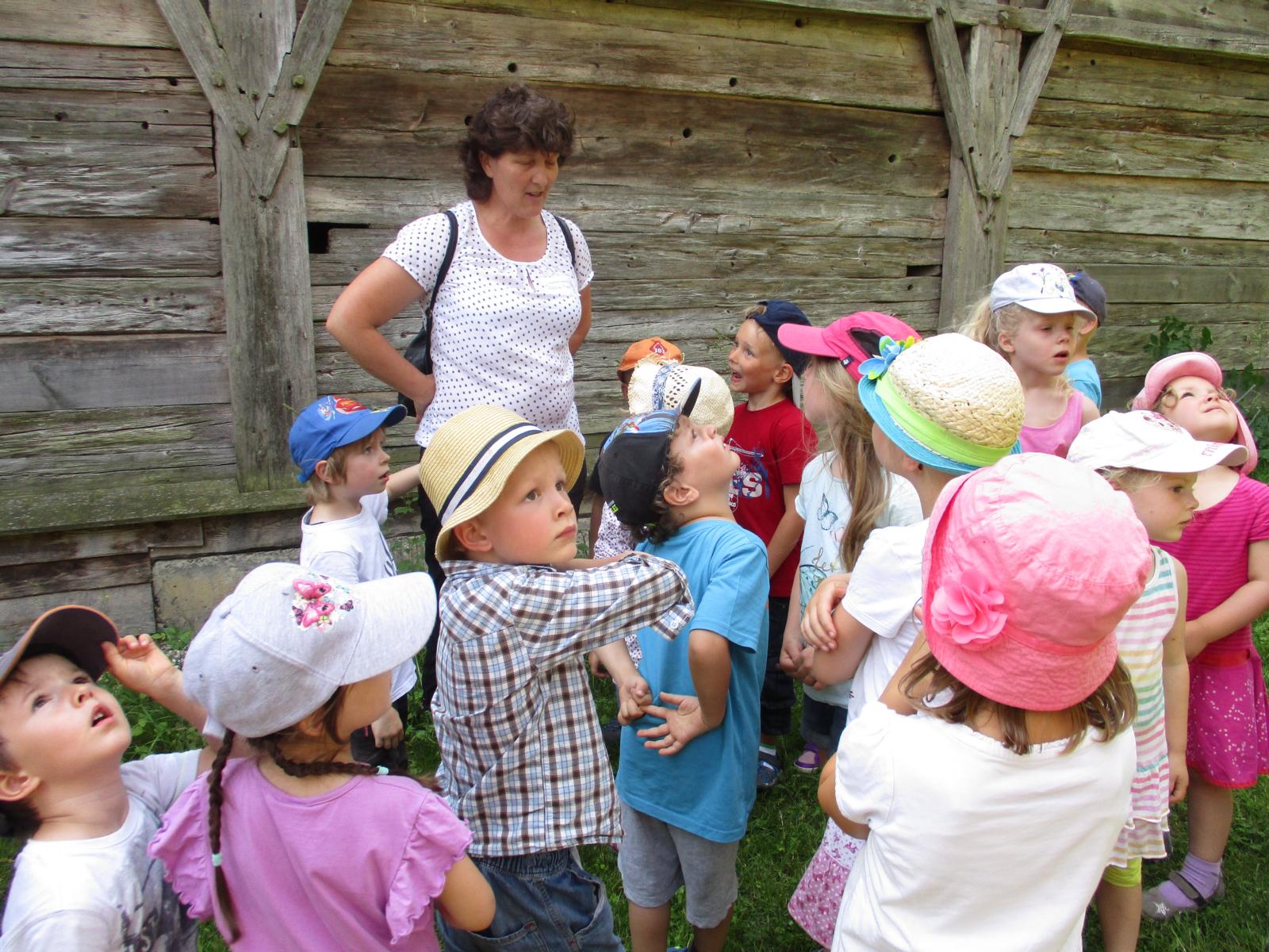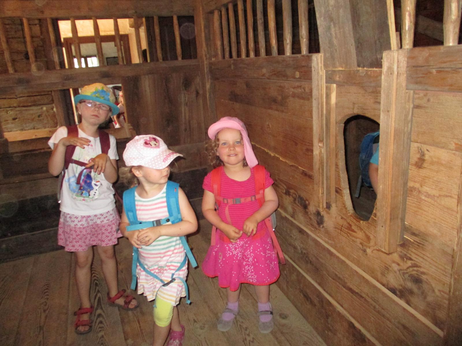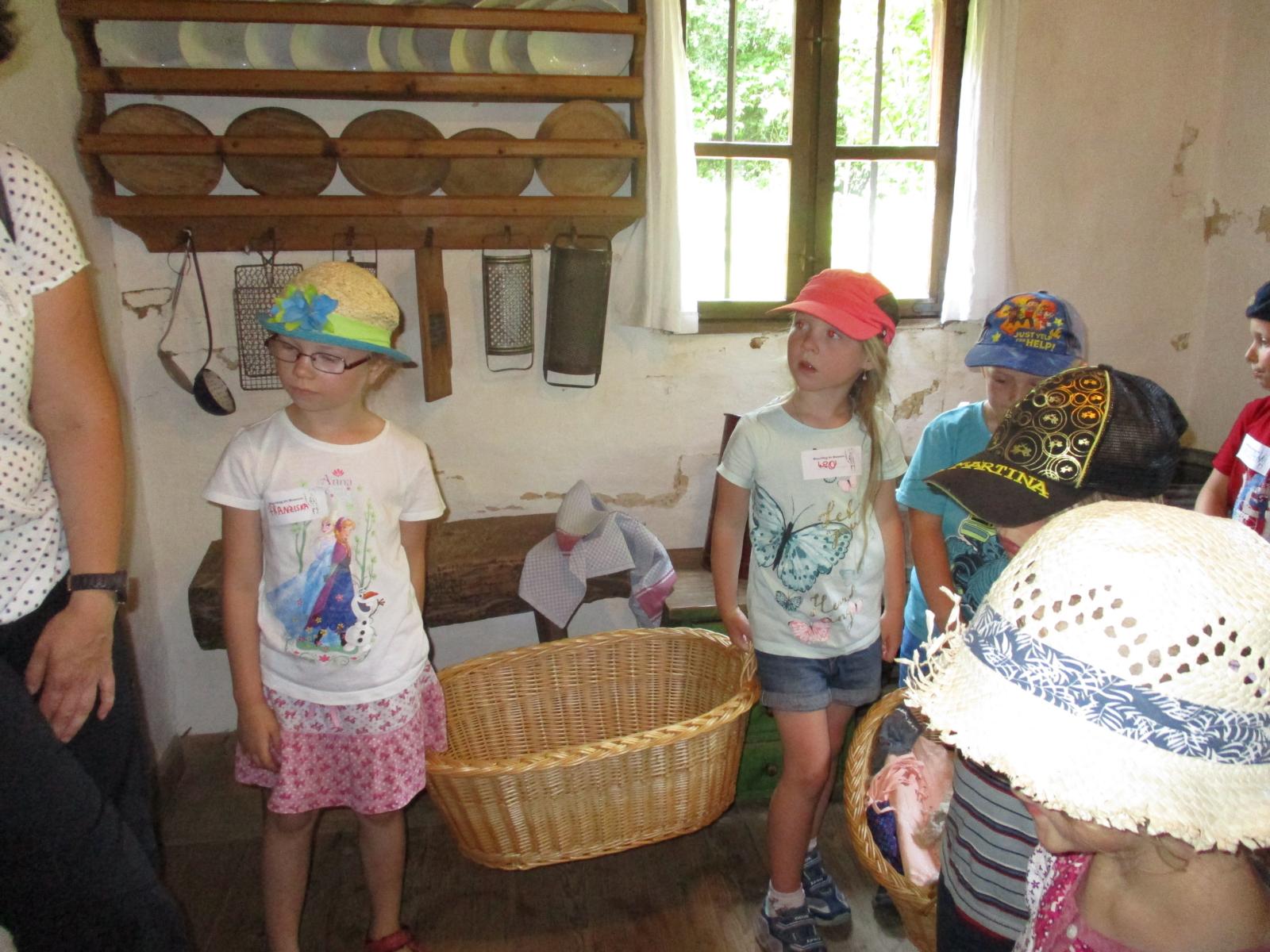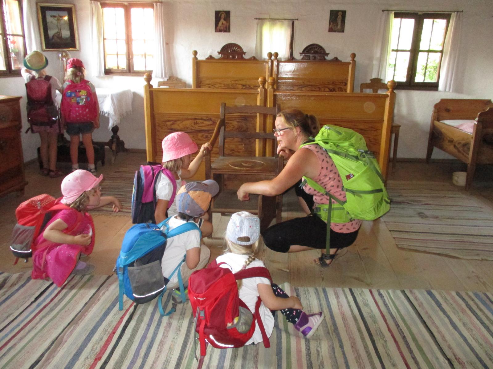 Gleich nach den Pfingstferien trafen sich die Waldkinder nicht am Häusl, sondern ganz aufgeregt am Geisenhausener Bahnhof. Ein Ausflug ins Bauernhofmuseum nach Massing stand auf dem Programm. Die Kinder wollten einmal erproben, wie das Wäschewaschen vor hundert Jahren von statten ging. Doch erst einmal ging es mit dem Zug nach Neumarkt und von dort, nach einem Aufenthalt, weiter nach Massing. Die Zugfahrt, der Brotzeitstop am Neumarkter Bahnhof sowie die kurze Weiterfahrt nach Massing haben wunderbar geklappt und hätten einigen Kindern als Programm eigentlich schon gelangt. Ein kurzer Fußweg führte uns zum Bauernhofmuseum. Die Kinder waren ganz angetan vom alten Mobiliar, dem Geschirr und den verschiedenen Tieren, denen wir auf unserem Weg über’s Gelände begegnet sind. Am Spielplatz sind wir natürlich nicht vorbeigekommen. Dort konnten wir im Schatten auch noch ein zweites Mal Brotzeit machen. Um kurz nach 12 Uhr hat uns dann schon die Museumspädagogin Roswitha Klingshirn in Empfang genommen und erläuterte den Kindern anhand von vielen Wäsche- und Kleidungsstücken und anderen Gebrauchsgegenständen den Tagesablauf auf einem Hof um ca. 1910.